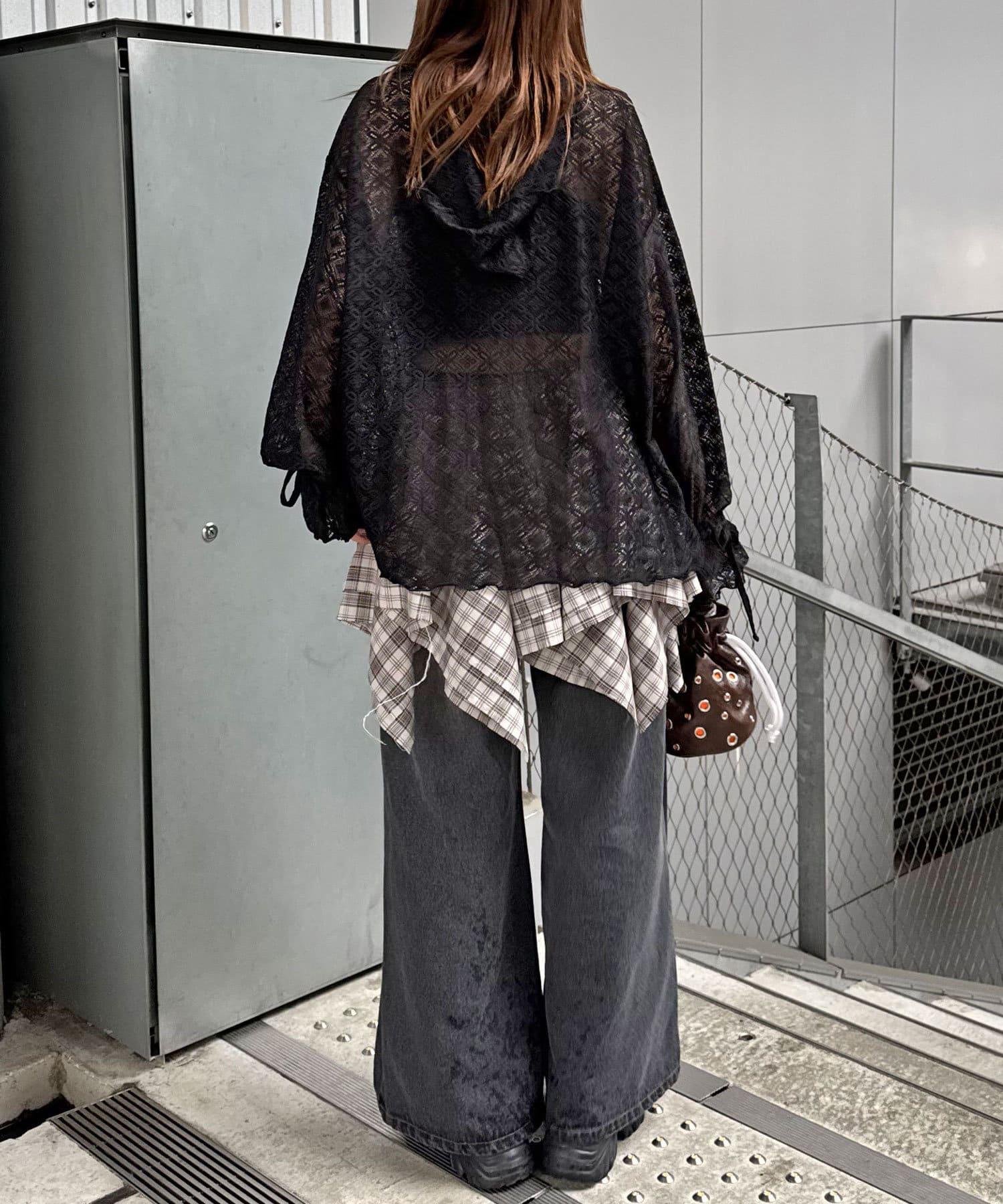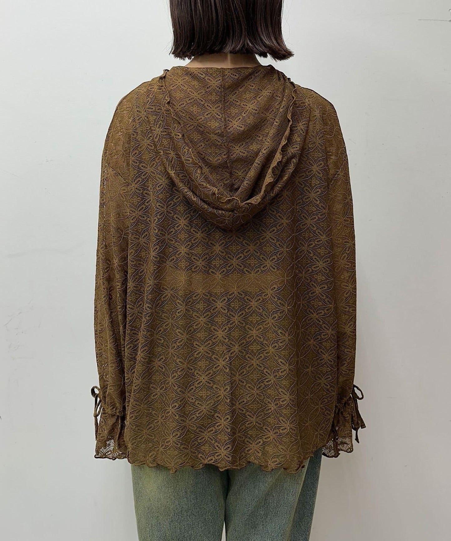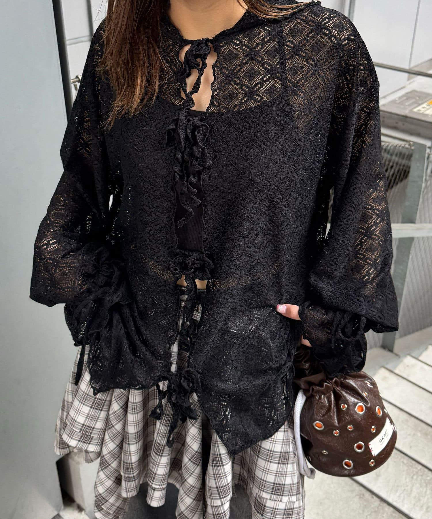 連帽衫採用彈力蕾絲和圓潤設計。