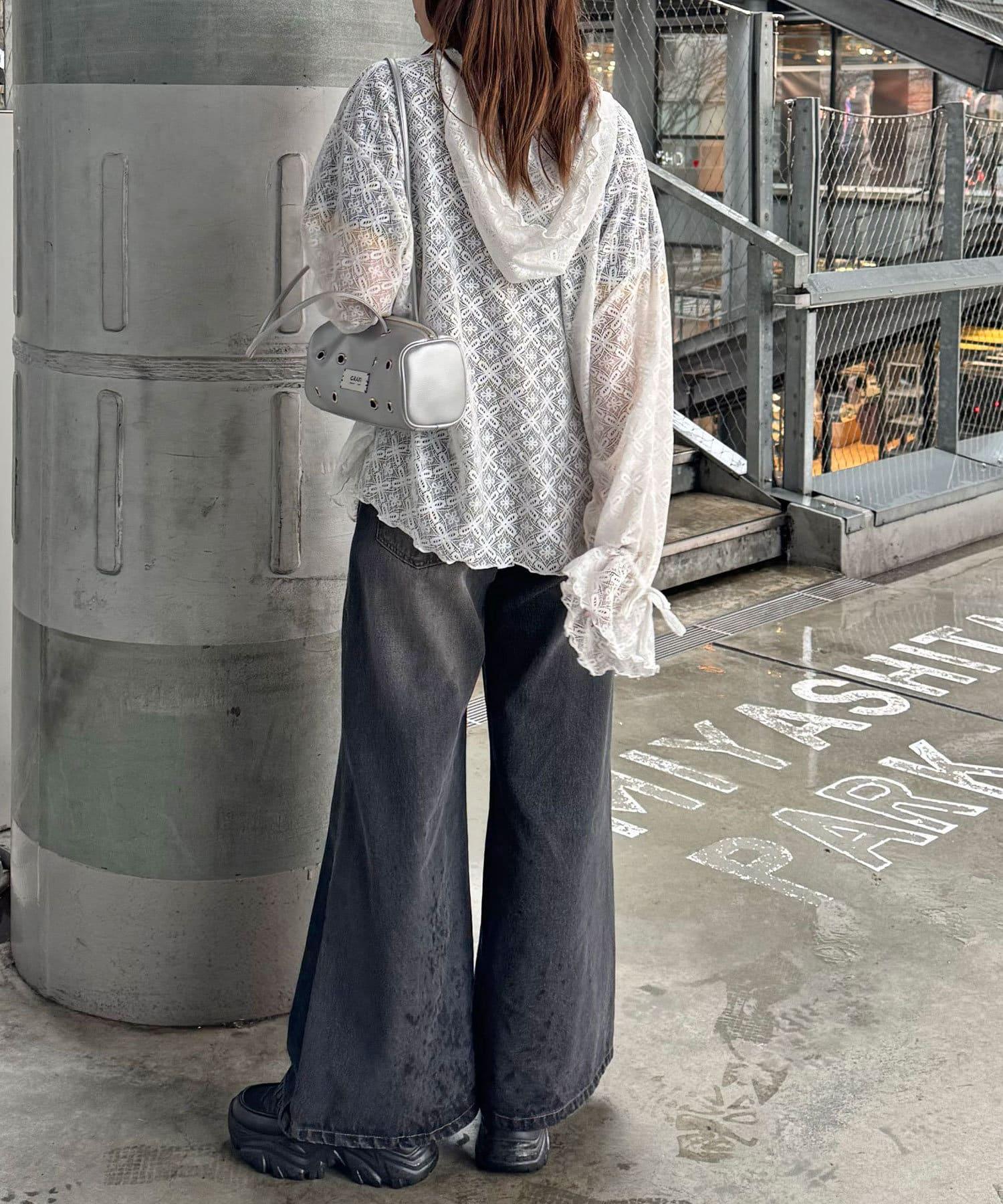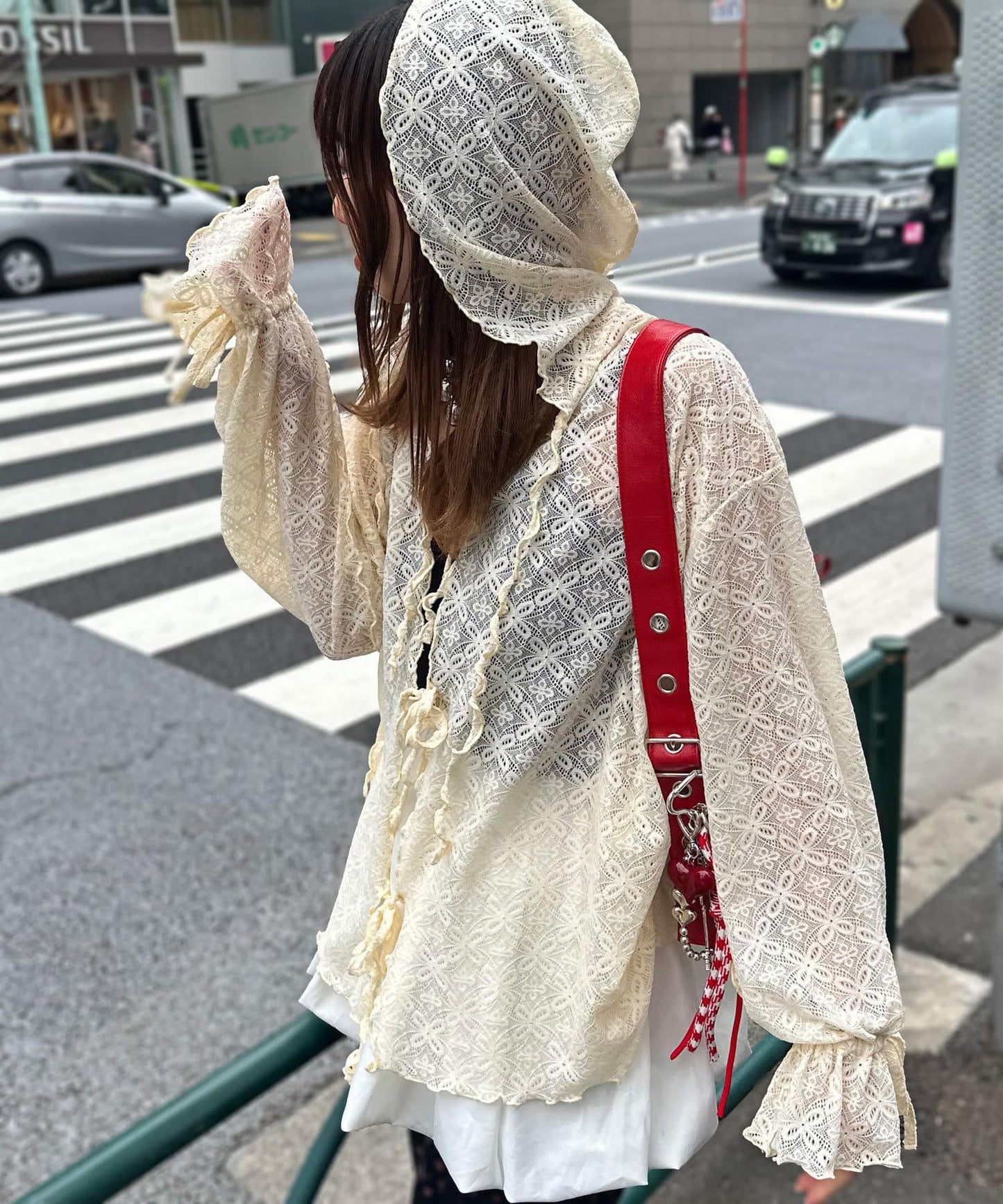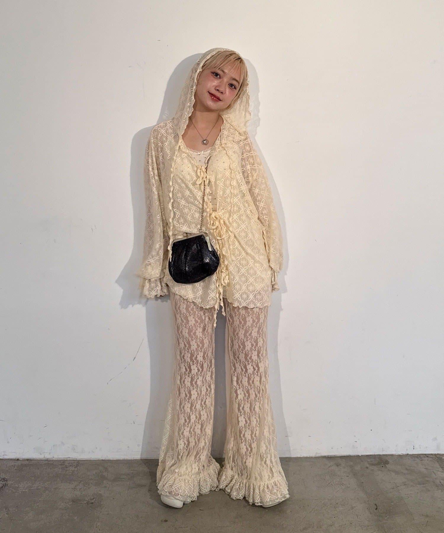 連帽衫採用彈力蕾絲和圓潤設計。