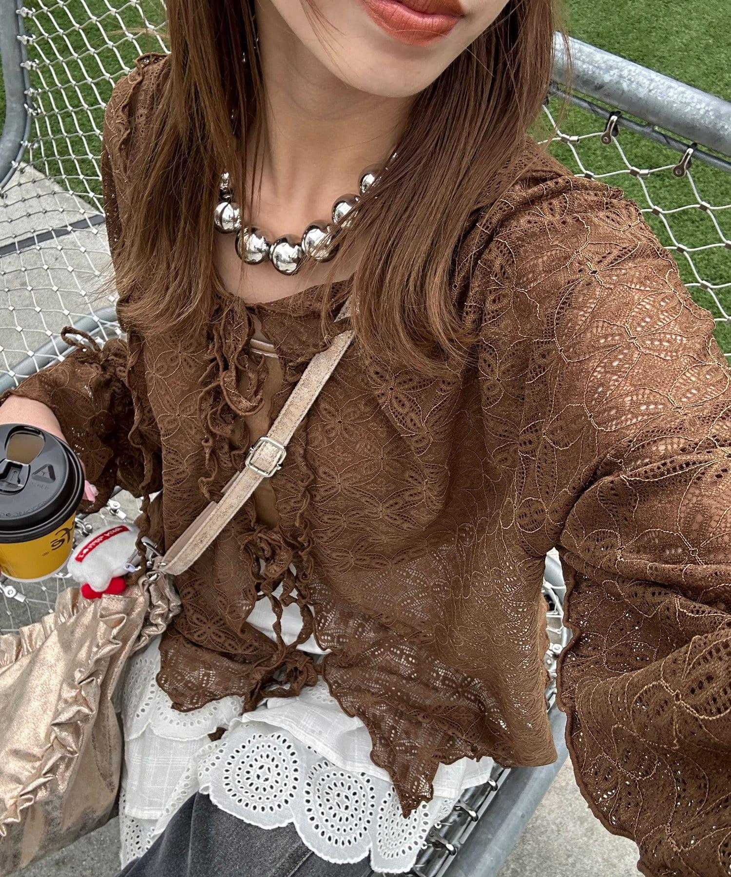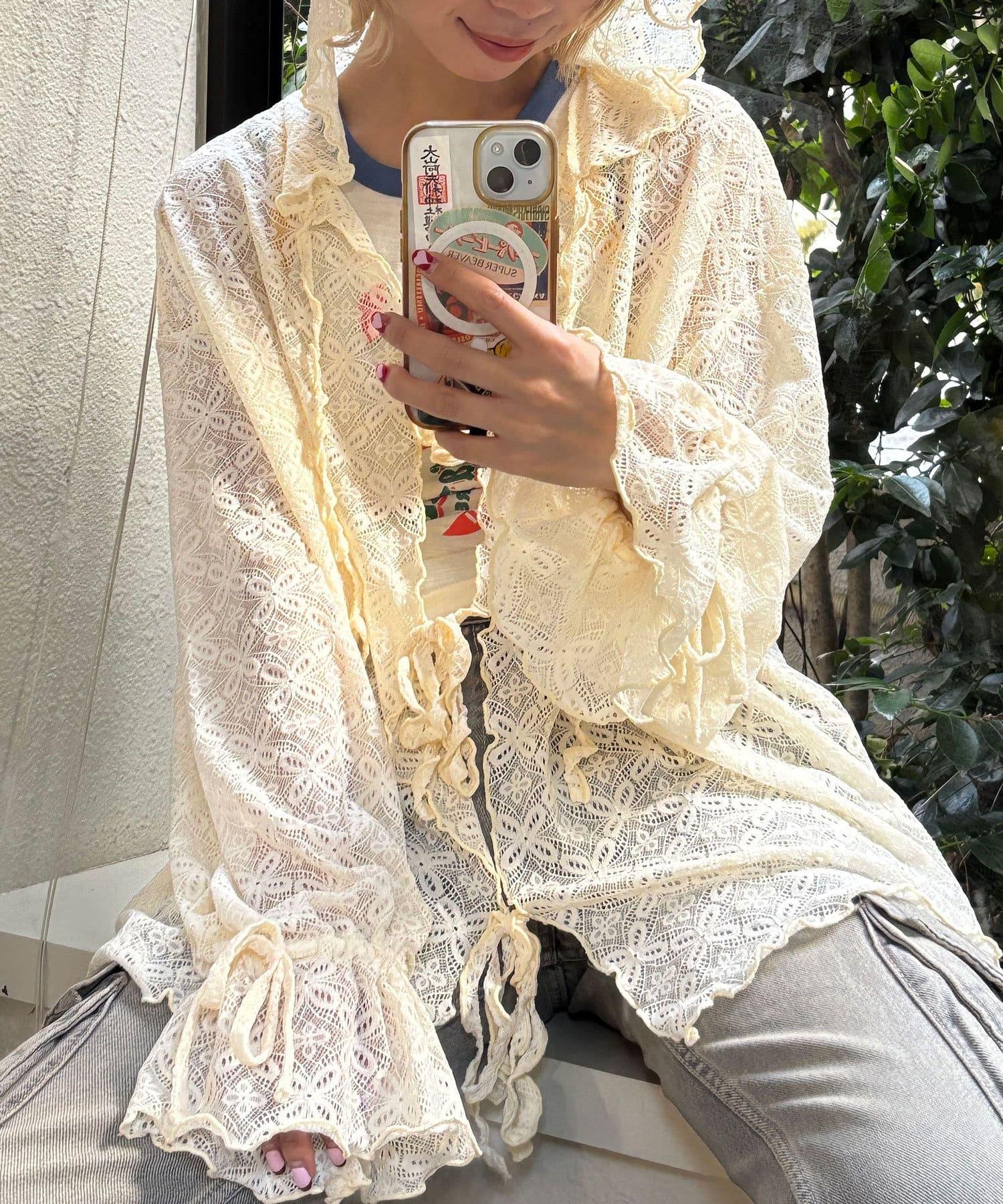 蕾絲醇厚開衫,自然寬鬆的造型
