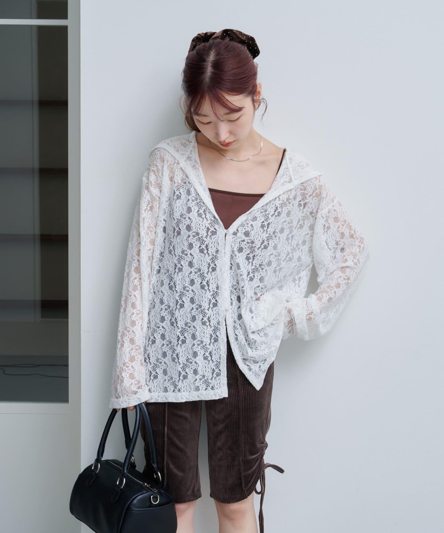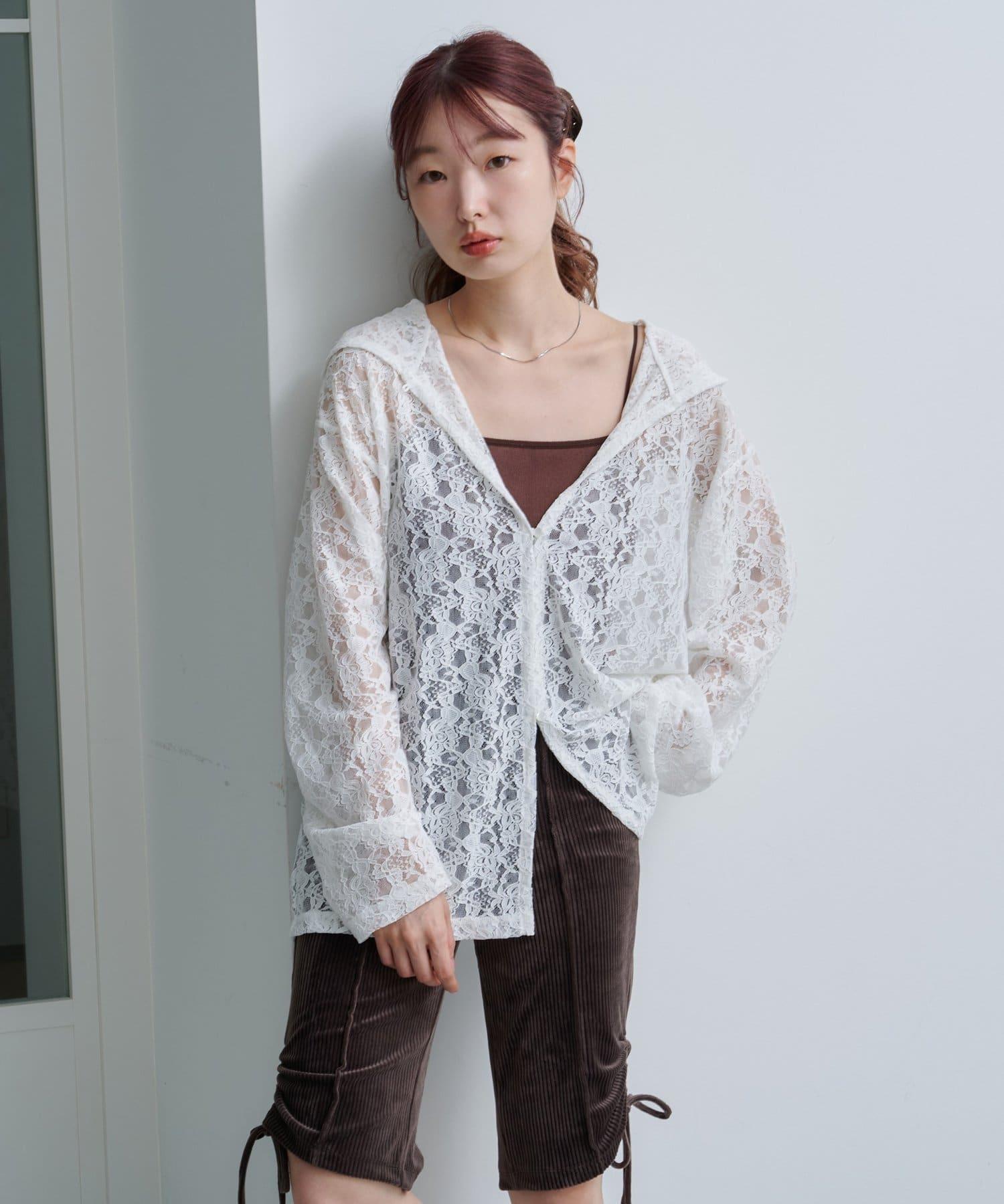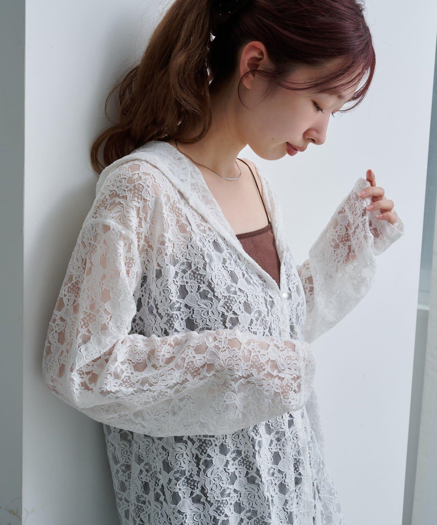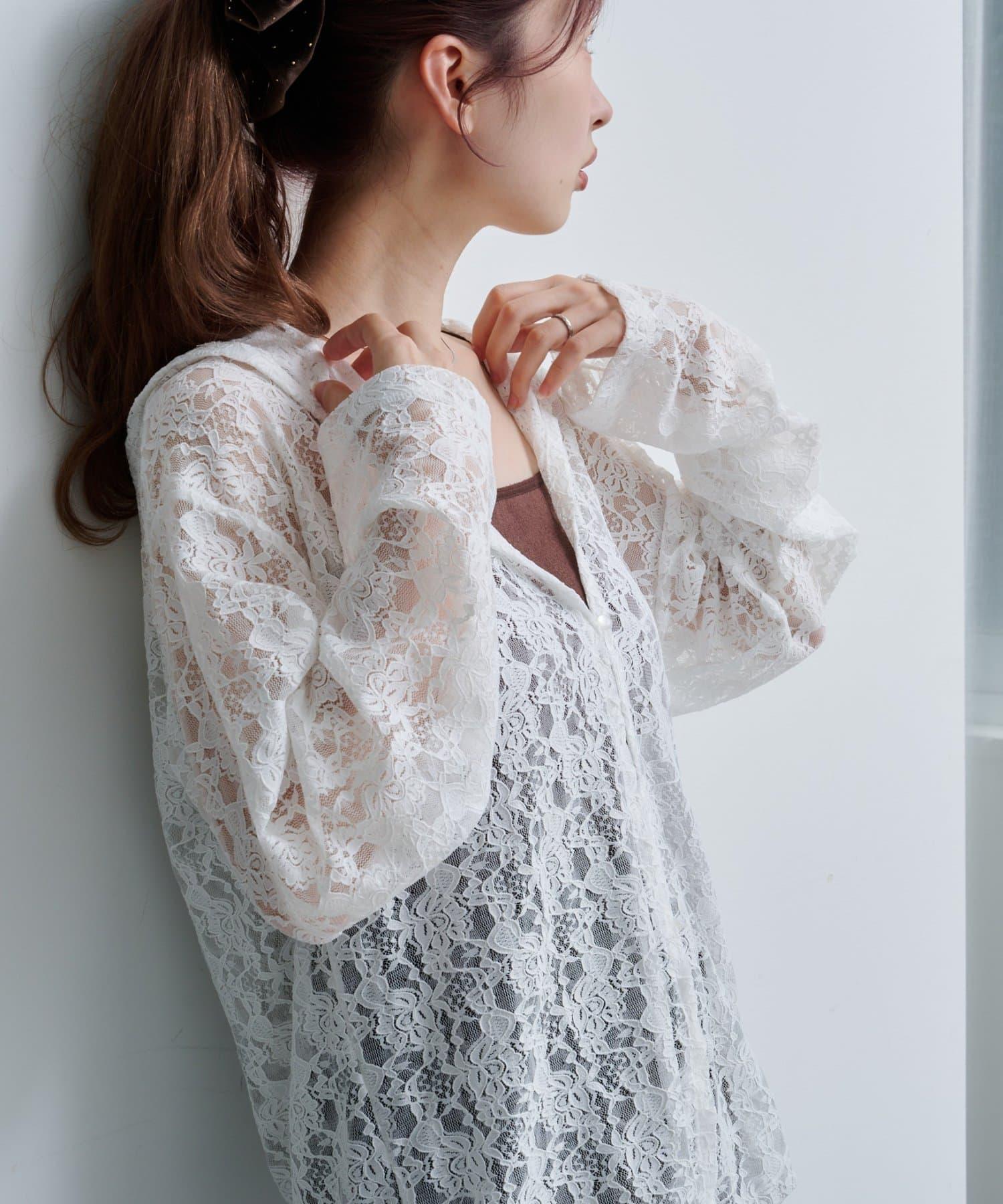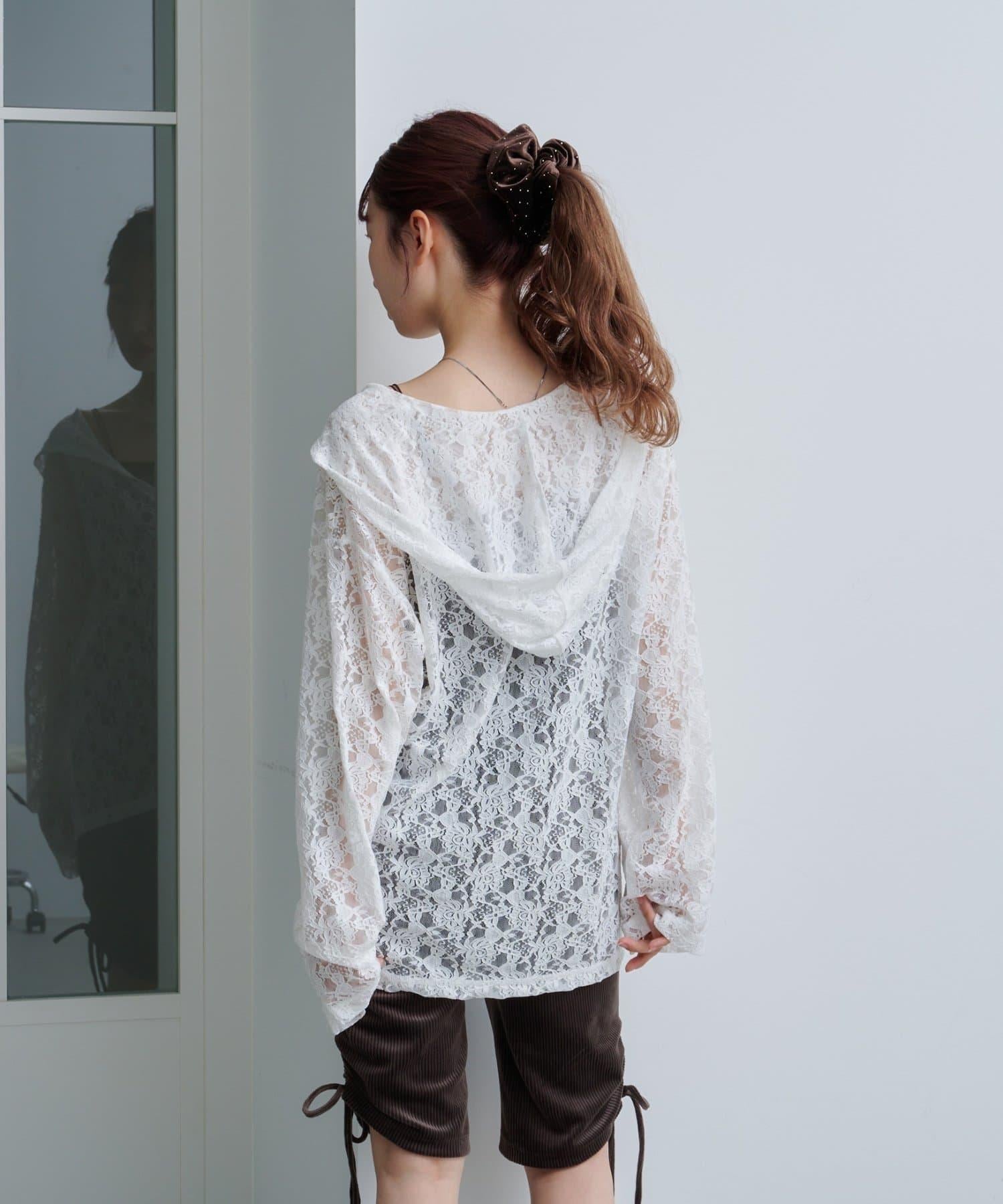 奢華的連帽衫設計,採用精緻的花朵蕾絲。
