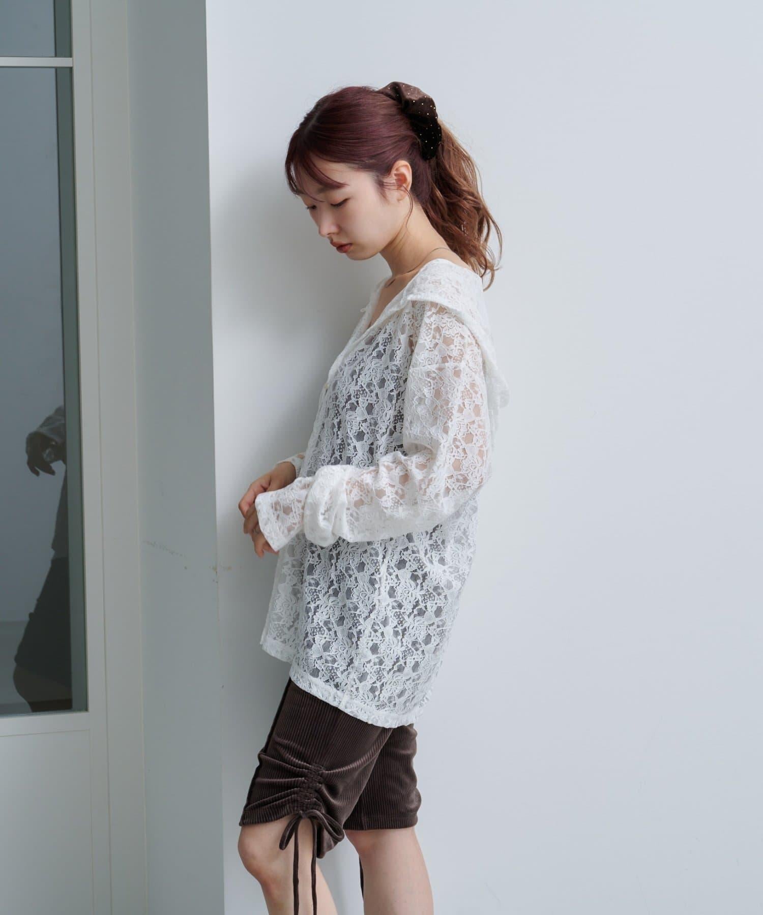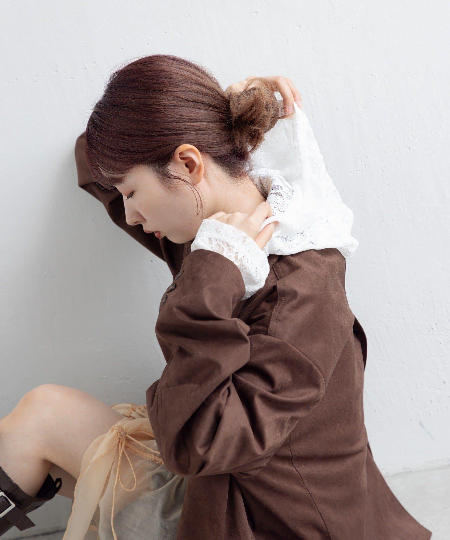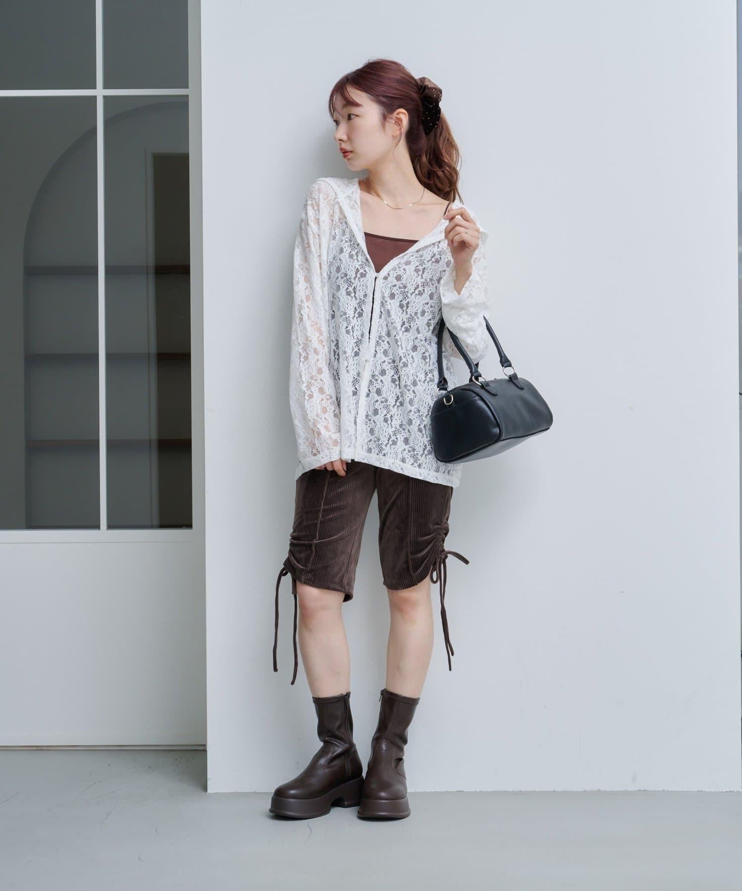 蕾絲材料很脆弱。如果在粗糙的表面上摩擦,或被包或皮帶等尖銳物品夾住,蕾絲很容易飄散,可能會被割斷。請小心處理。