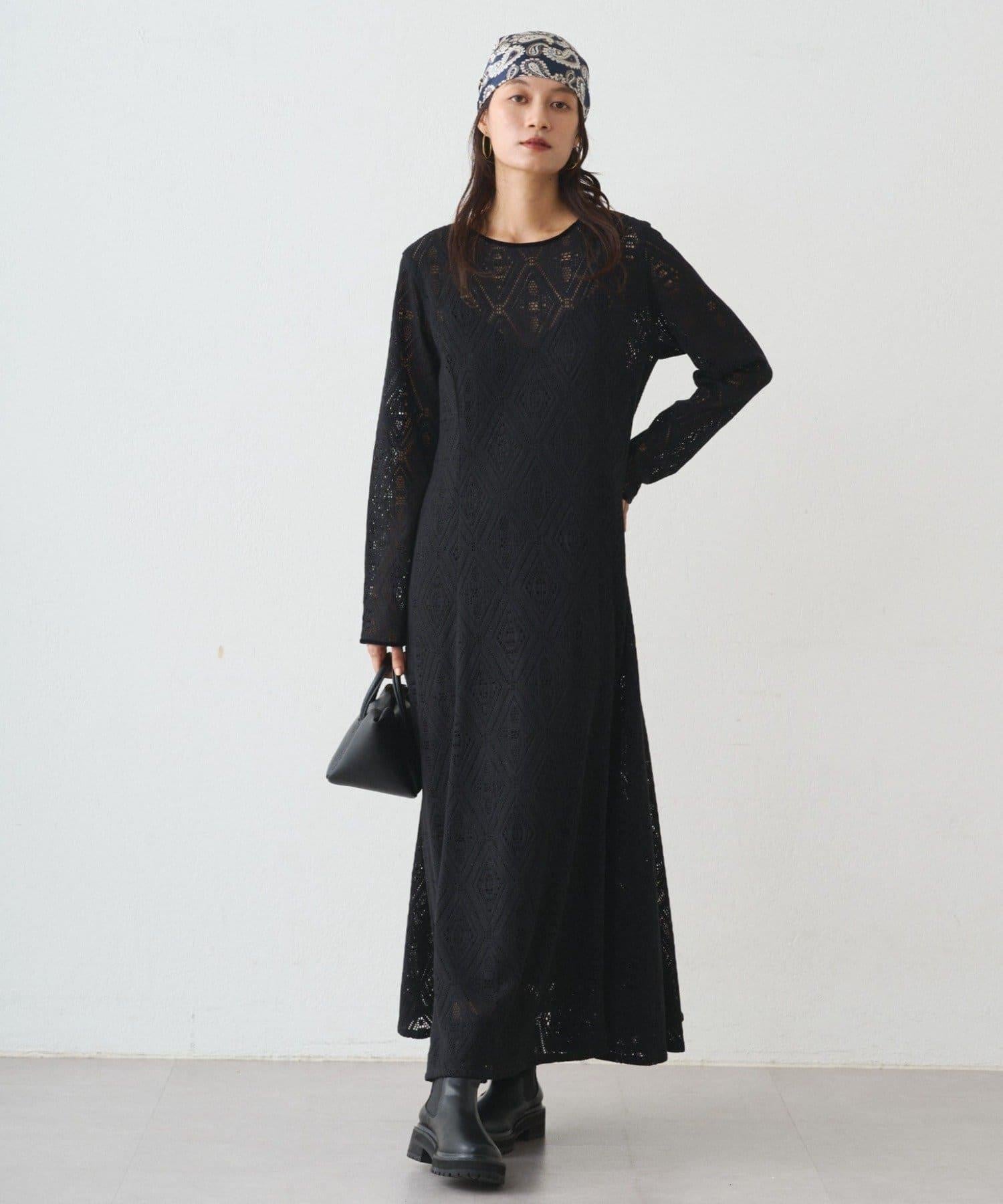 厚重垂墜的廓形和菱形圖案的蕾絲垂直修身,讓您看起來美觀而不顯臃腫。