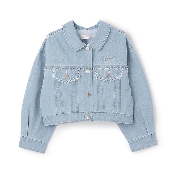蕾絲飾邊落肩牛仔夾克