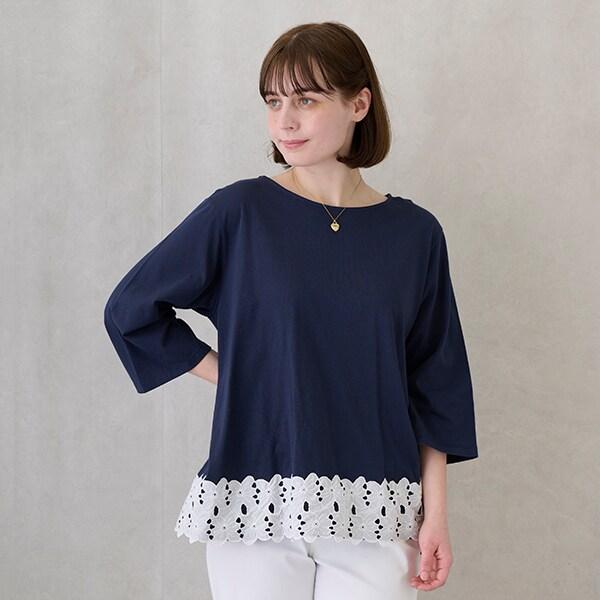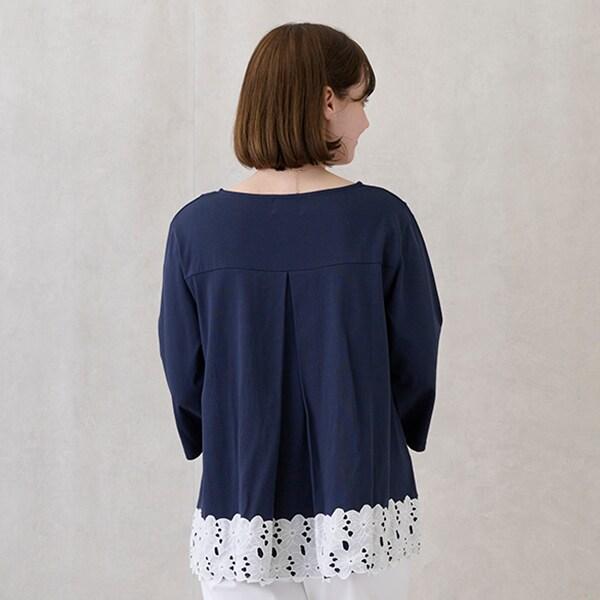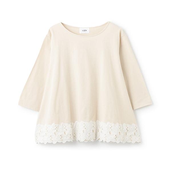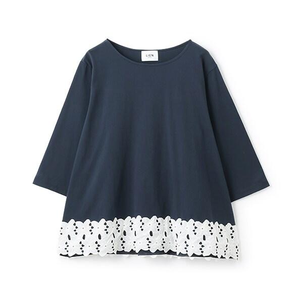 這款 T 恤的下襬飾有蕾絲花邊,更顯優雅。