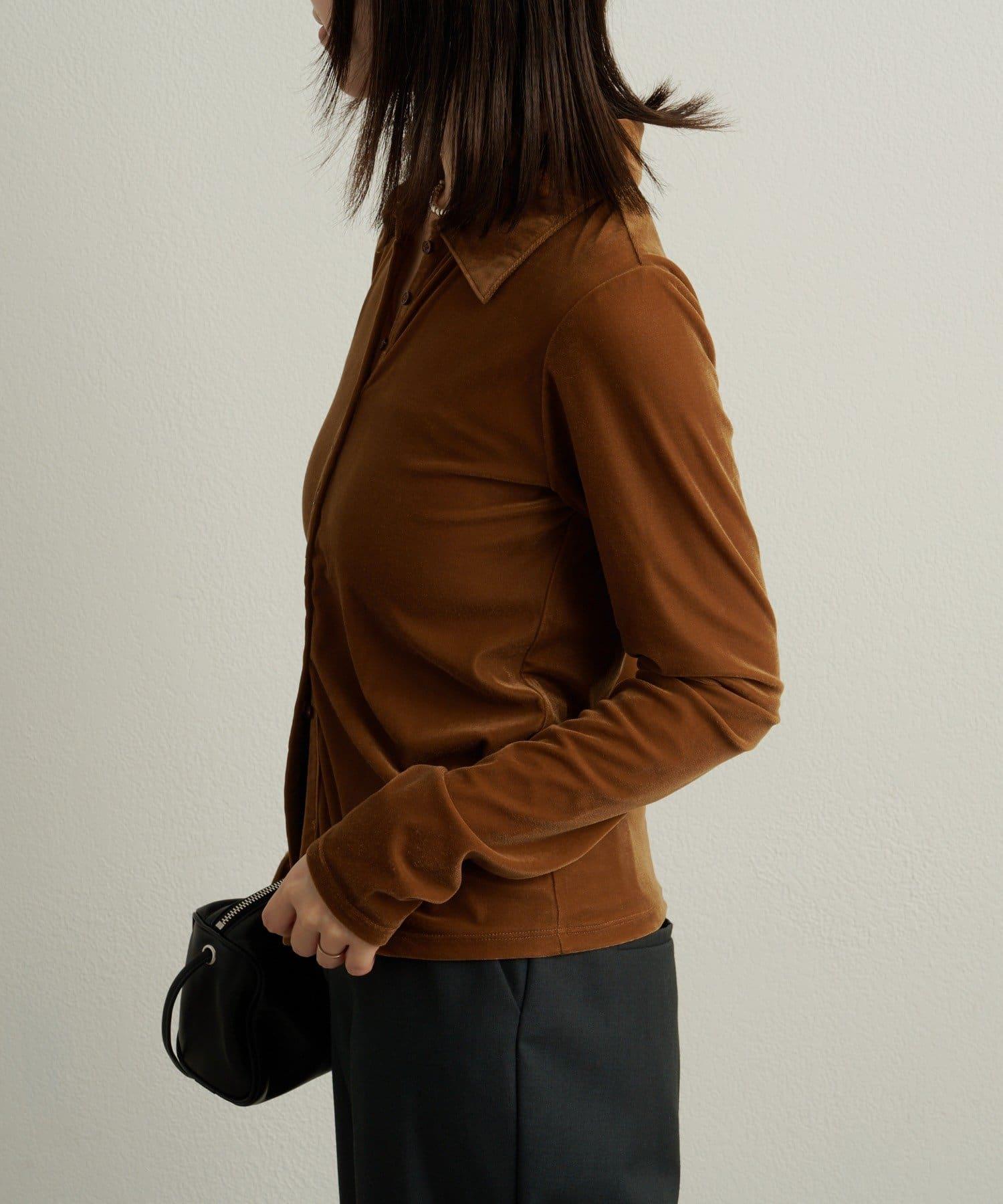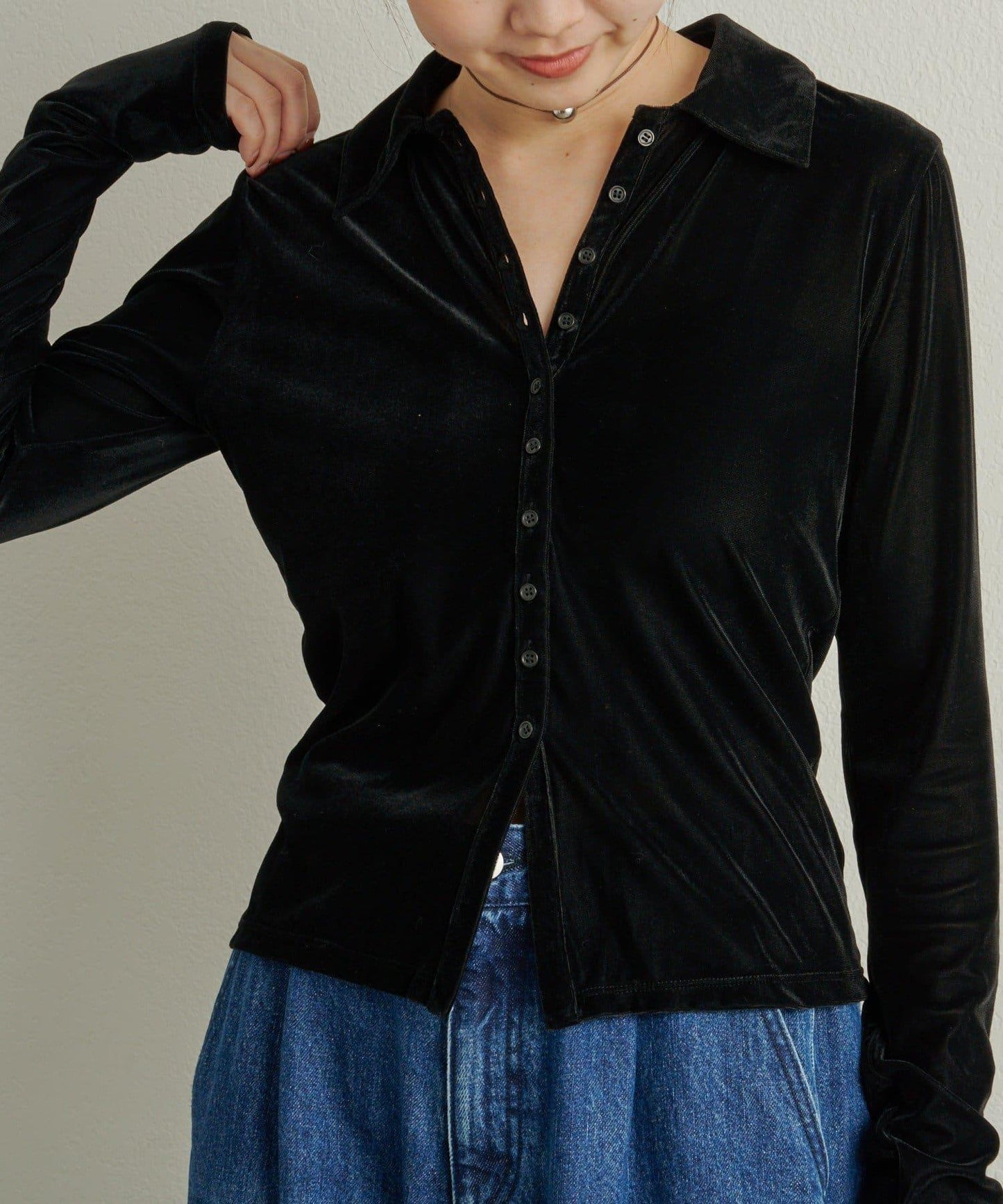 天鵝絨面料的優雅圓領開衫。