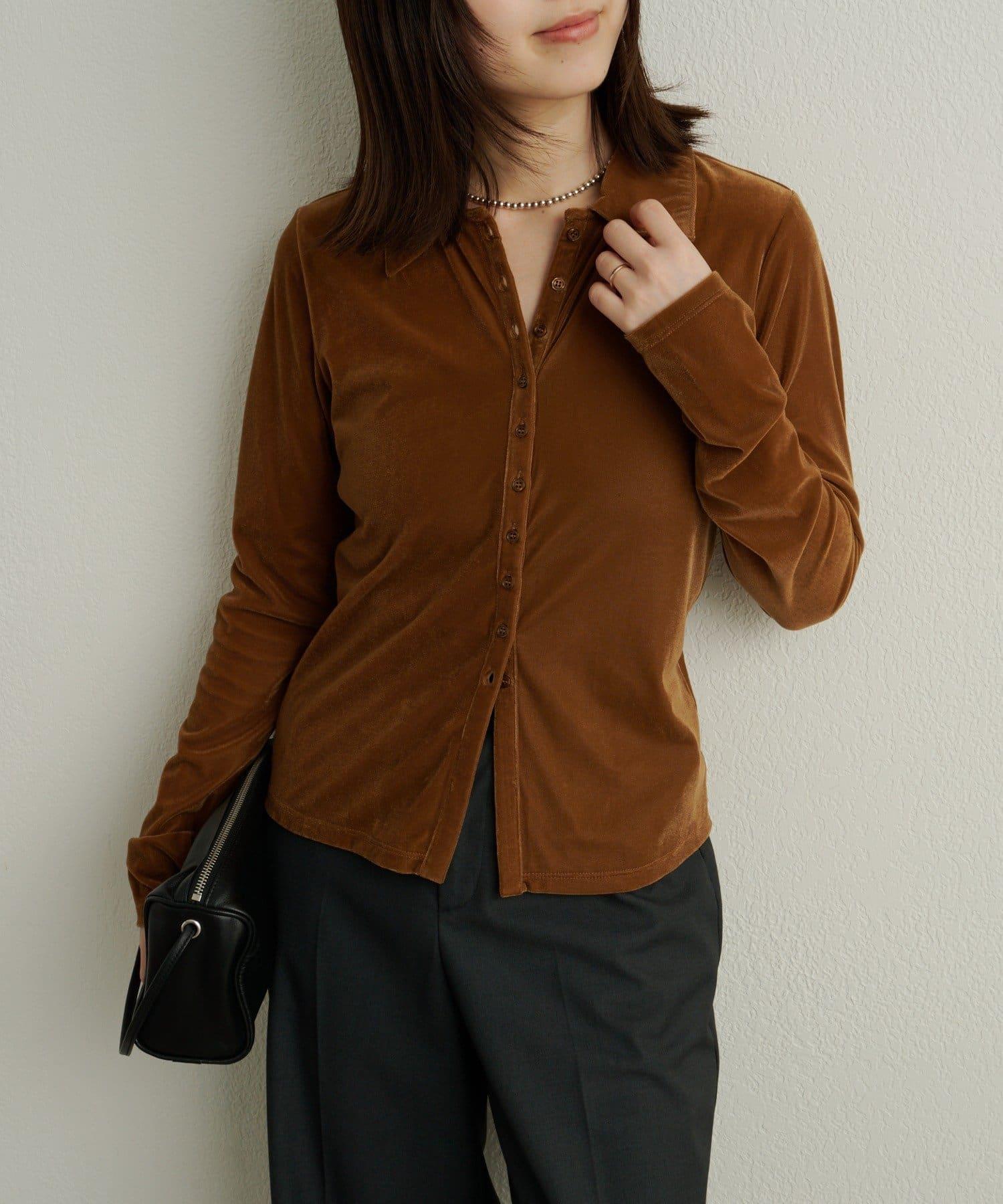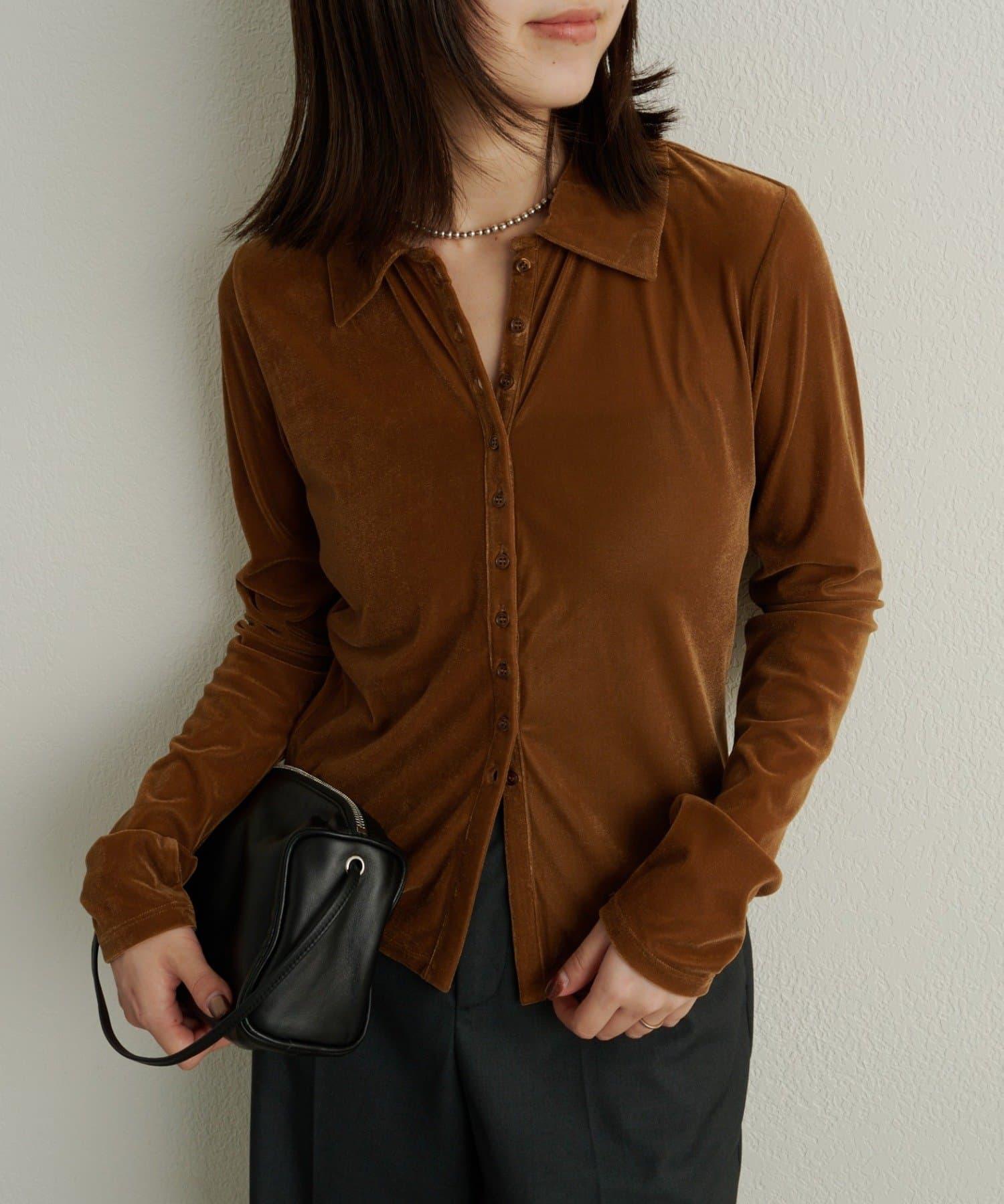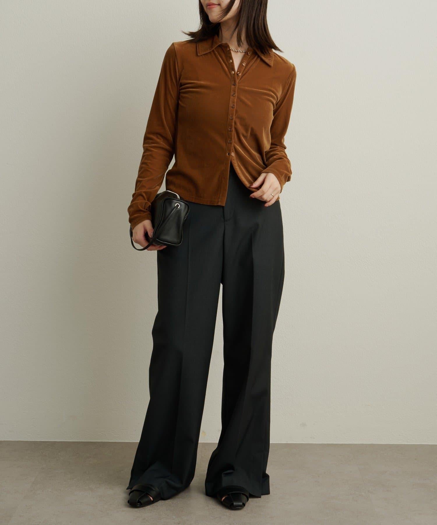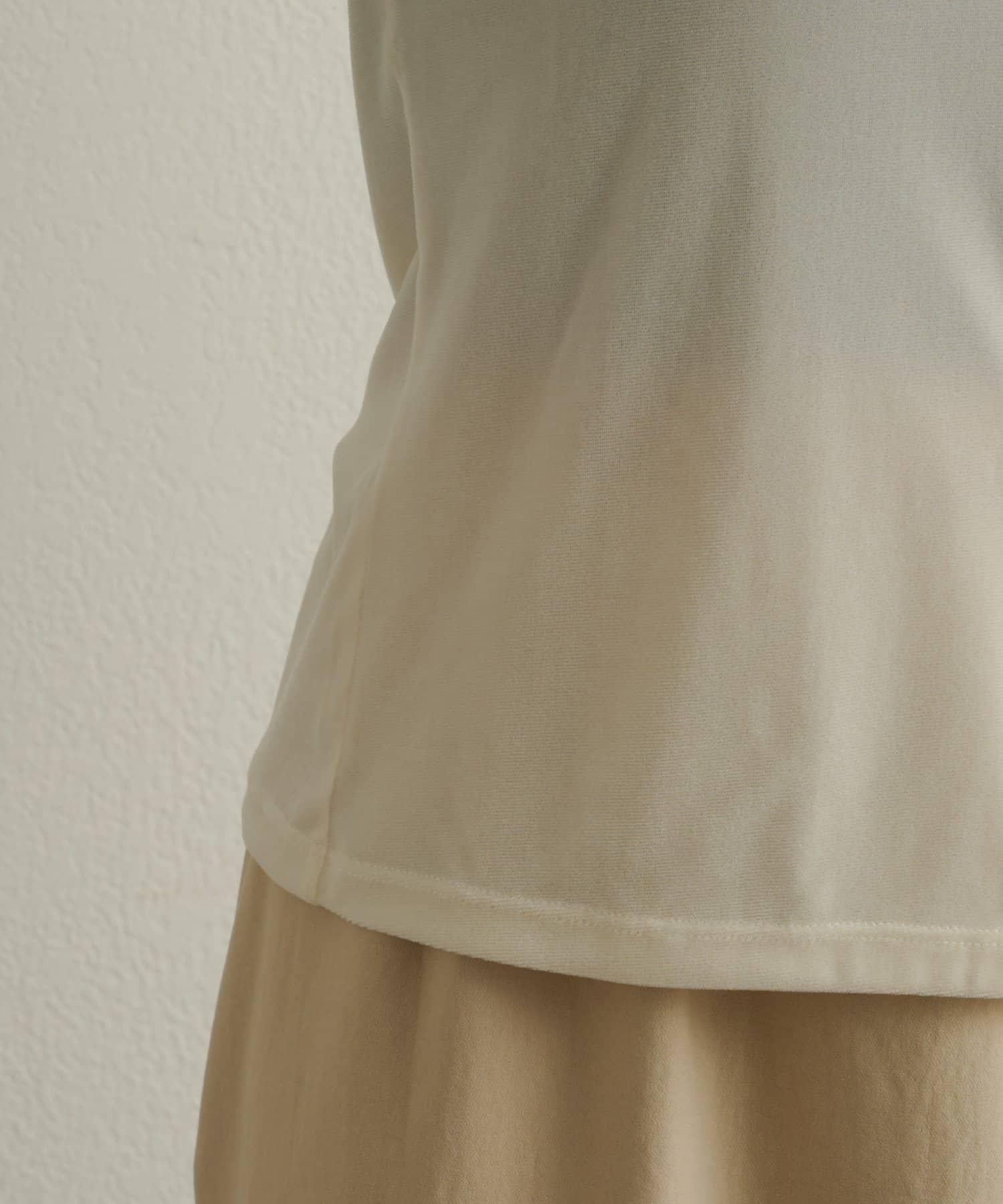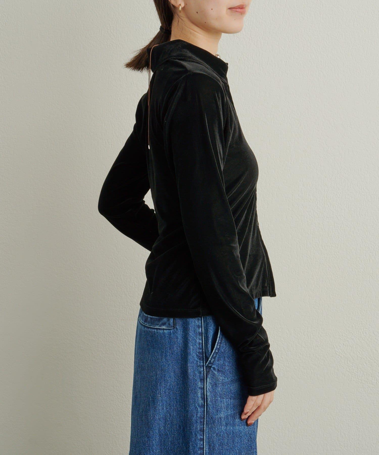 帶有柔和光澤的天鵝絨面料提升了這款單品的女性魅力。