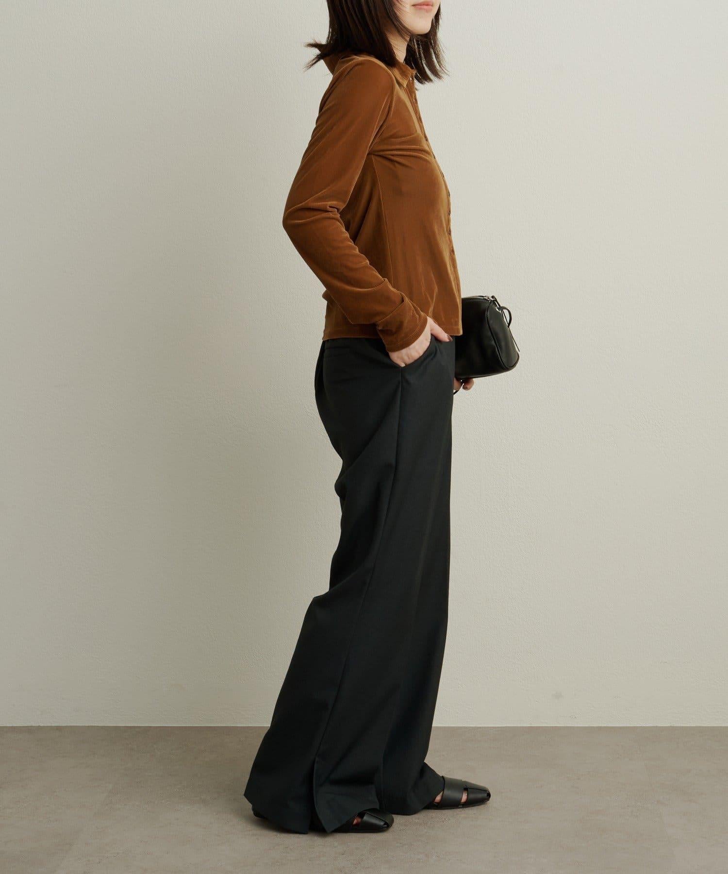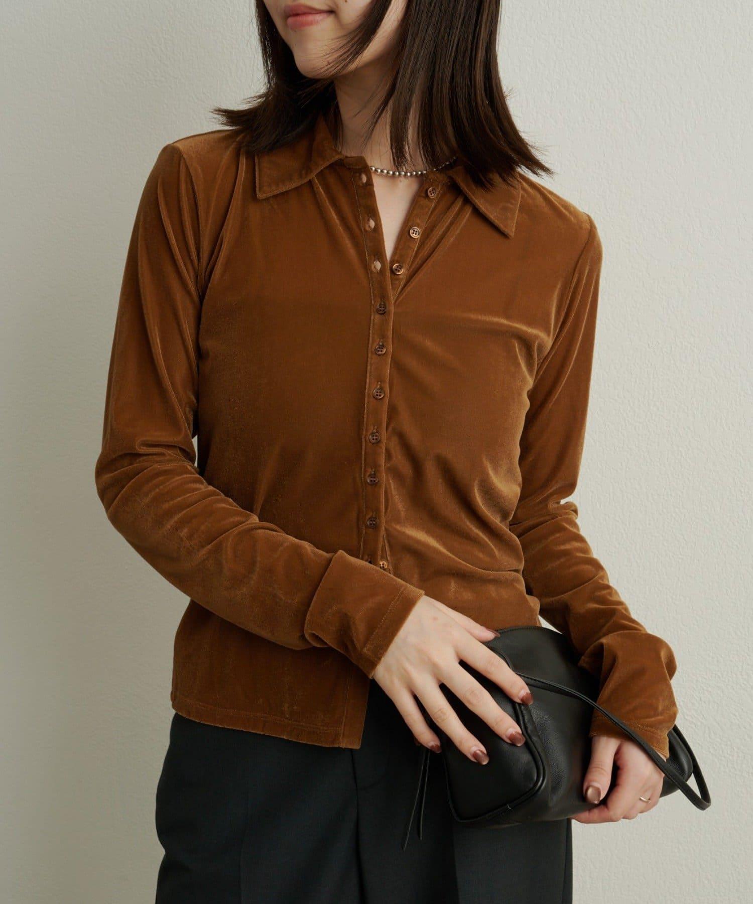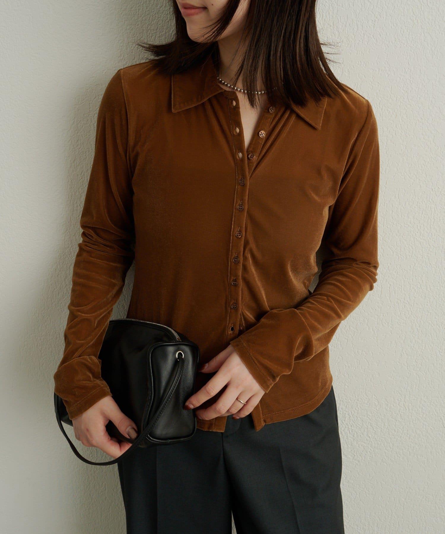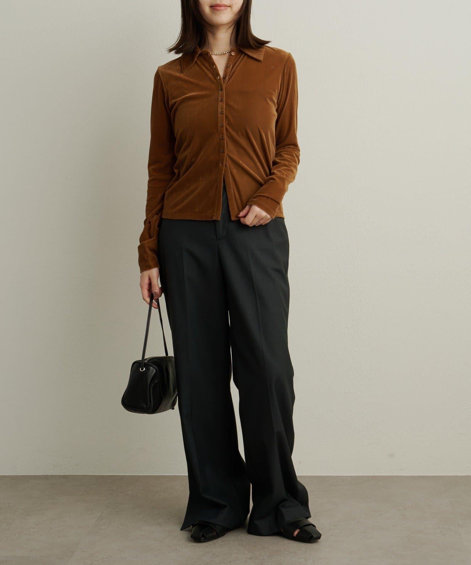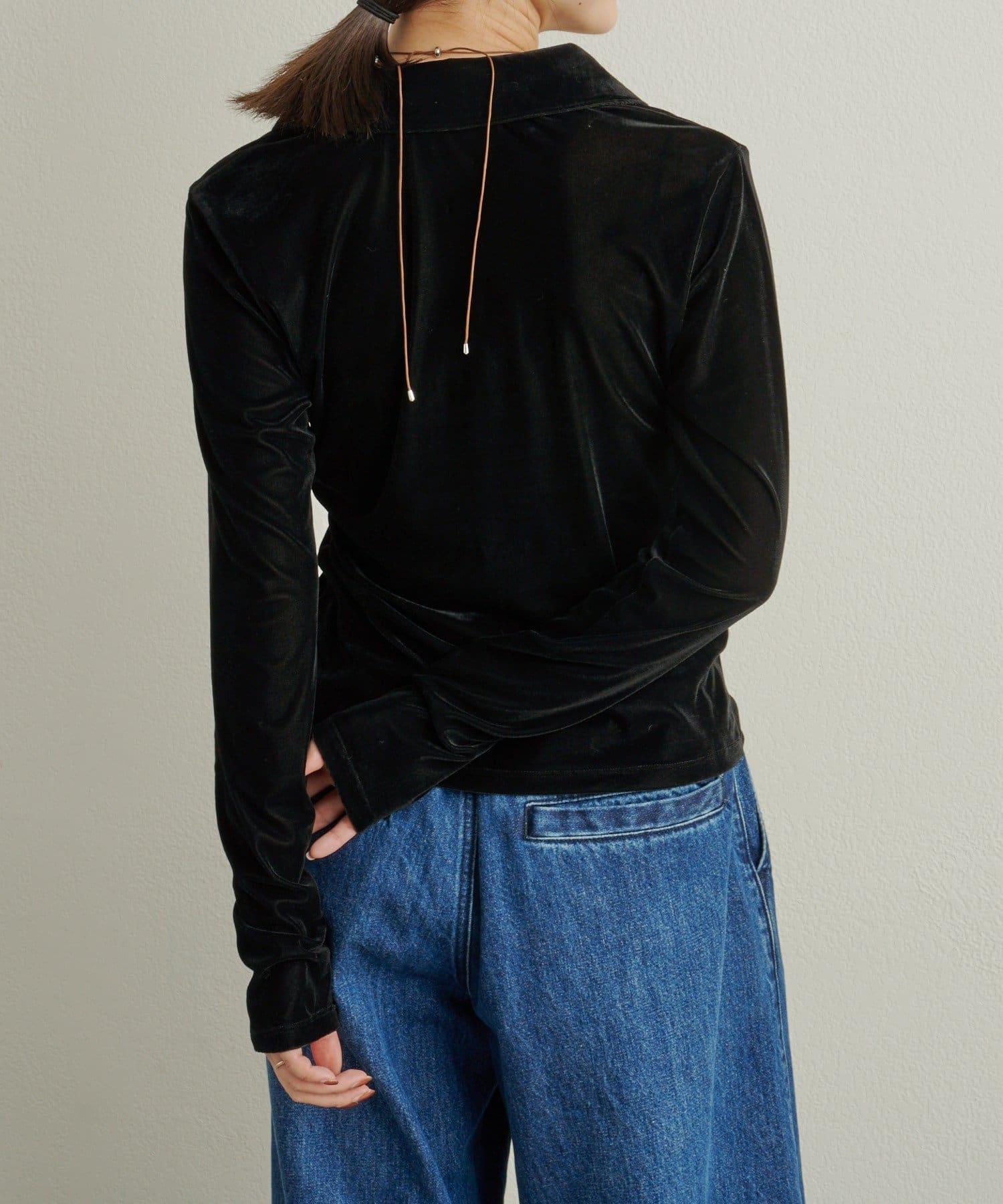 帶有柔和光澤的天鵝絨面料提升了這款單品的女性魅力。