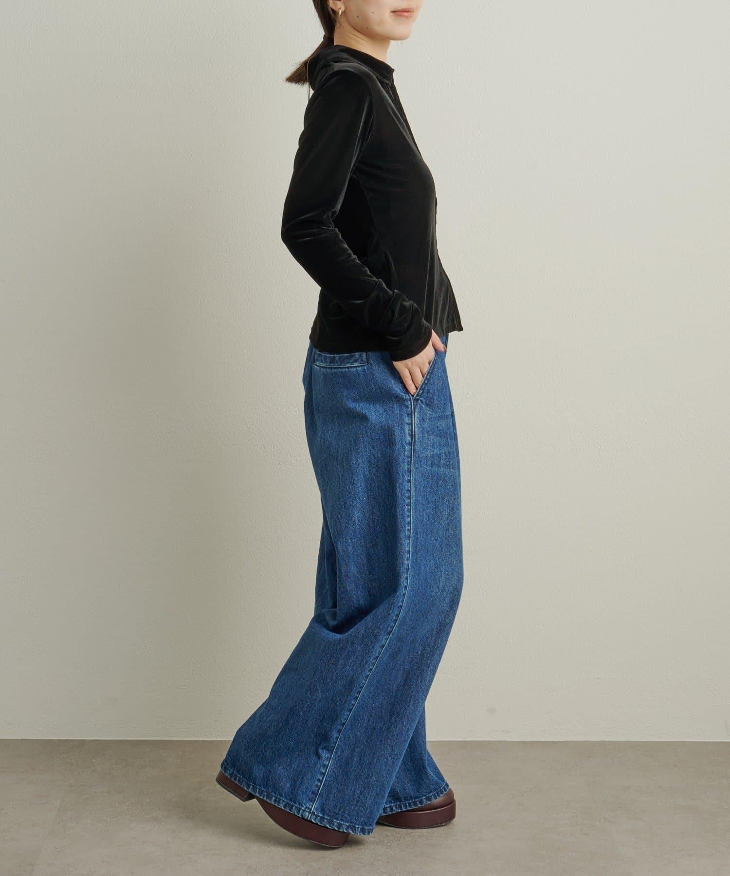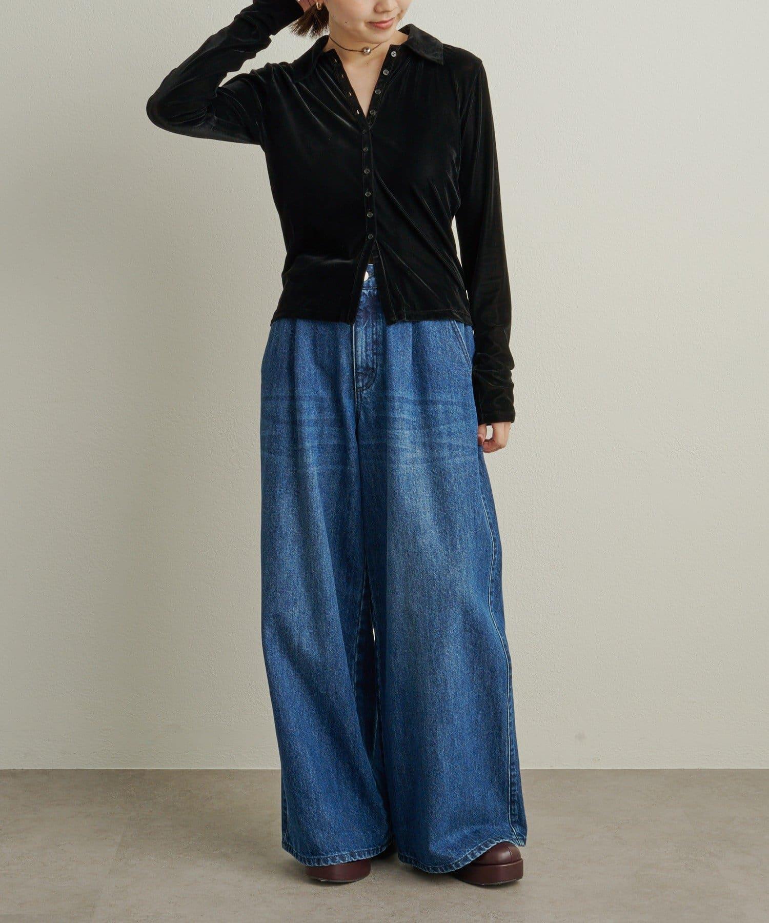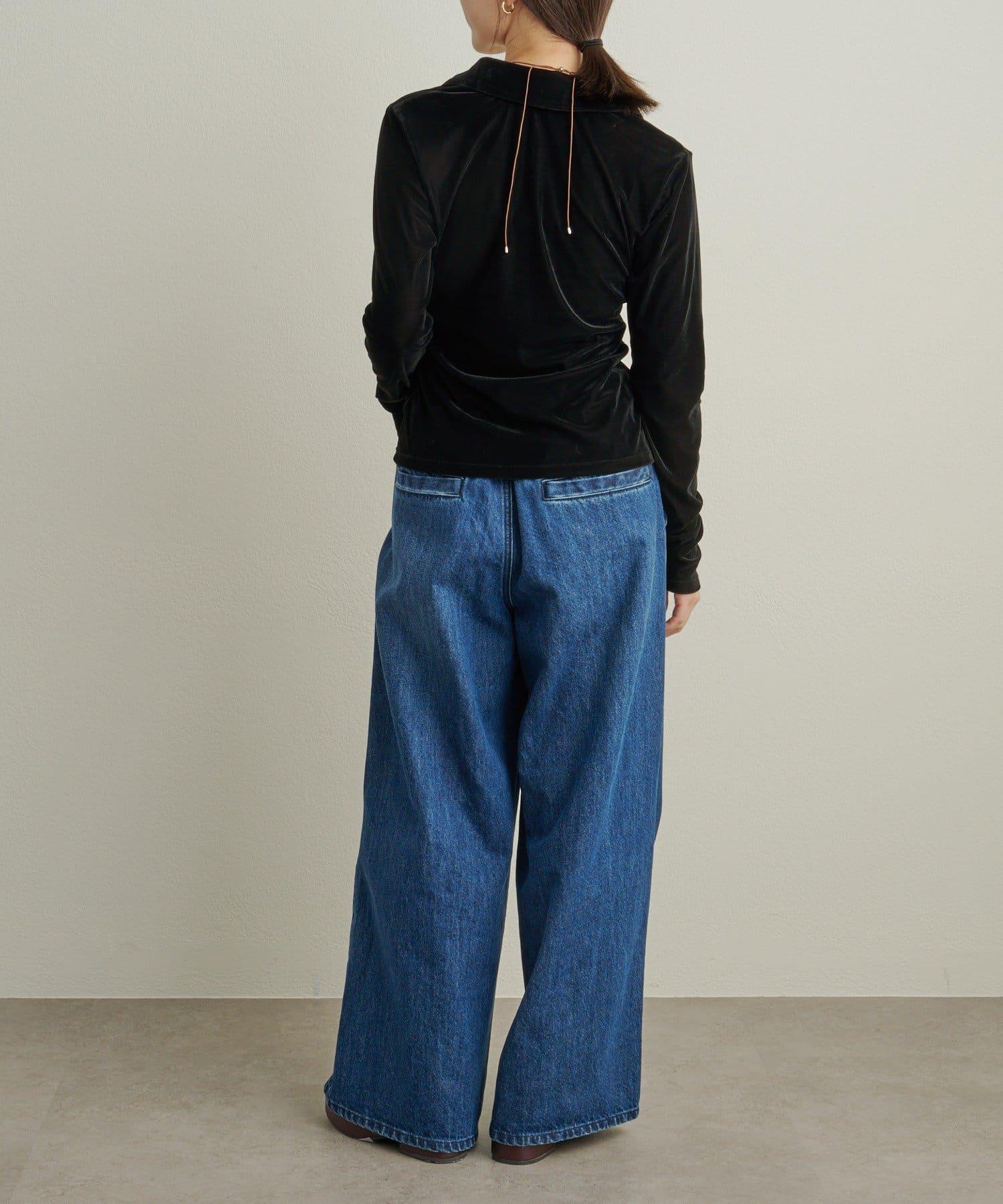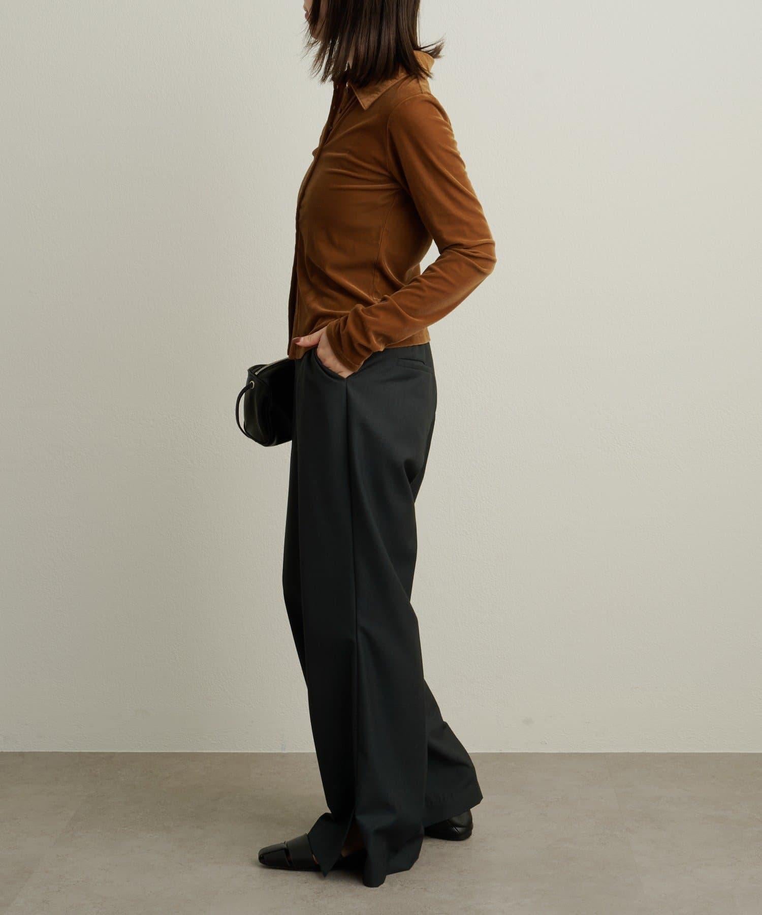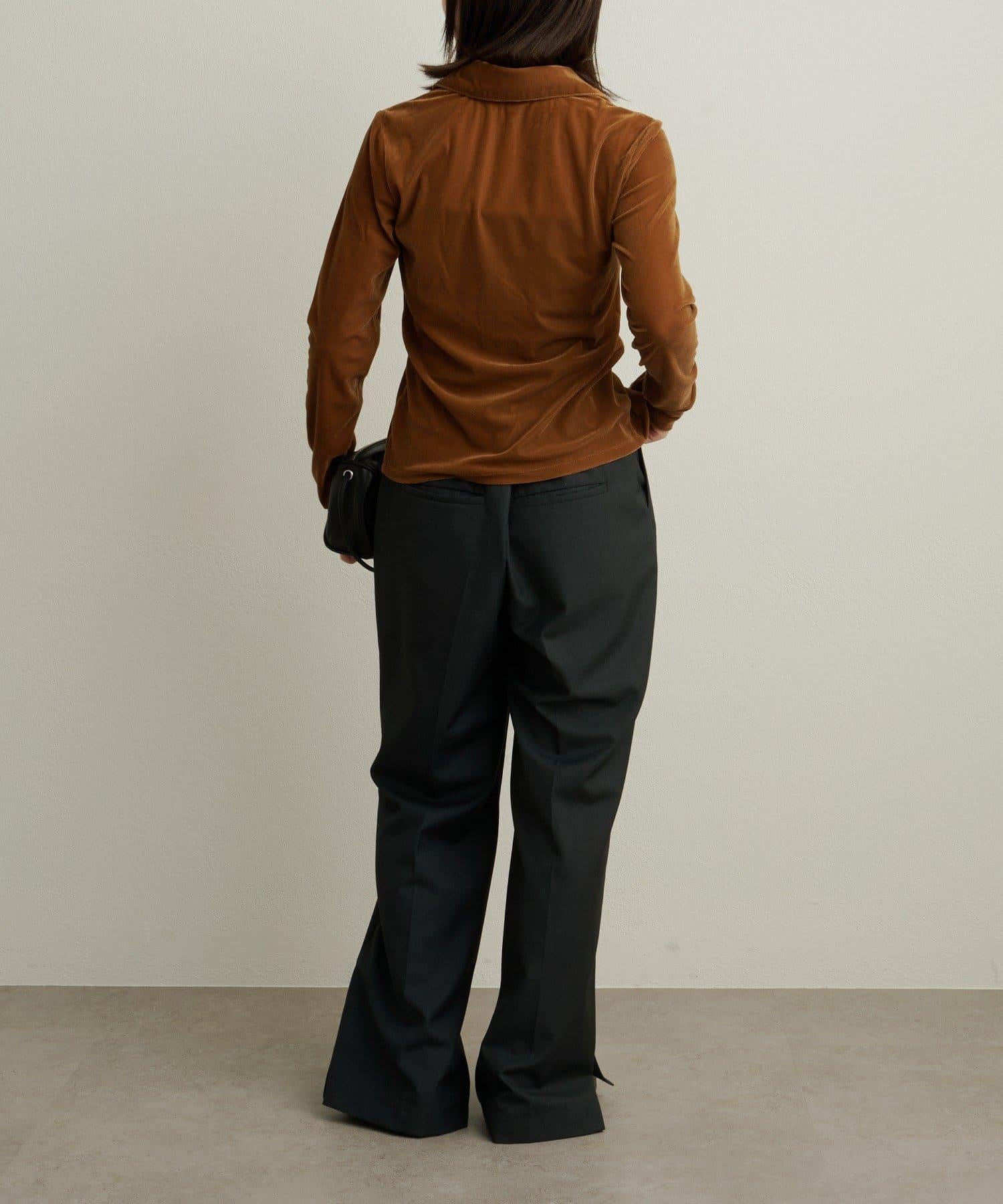 帶有柔和光澤的天鵝絨面料提升了這款單品的女性魅力。