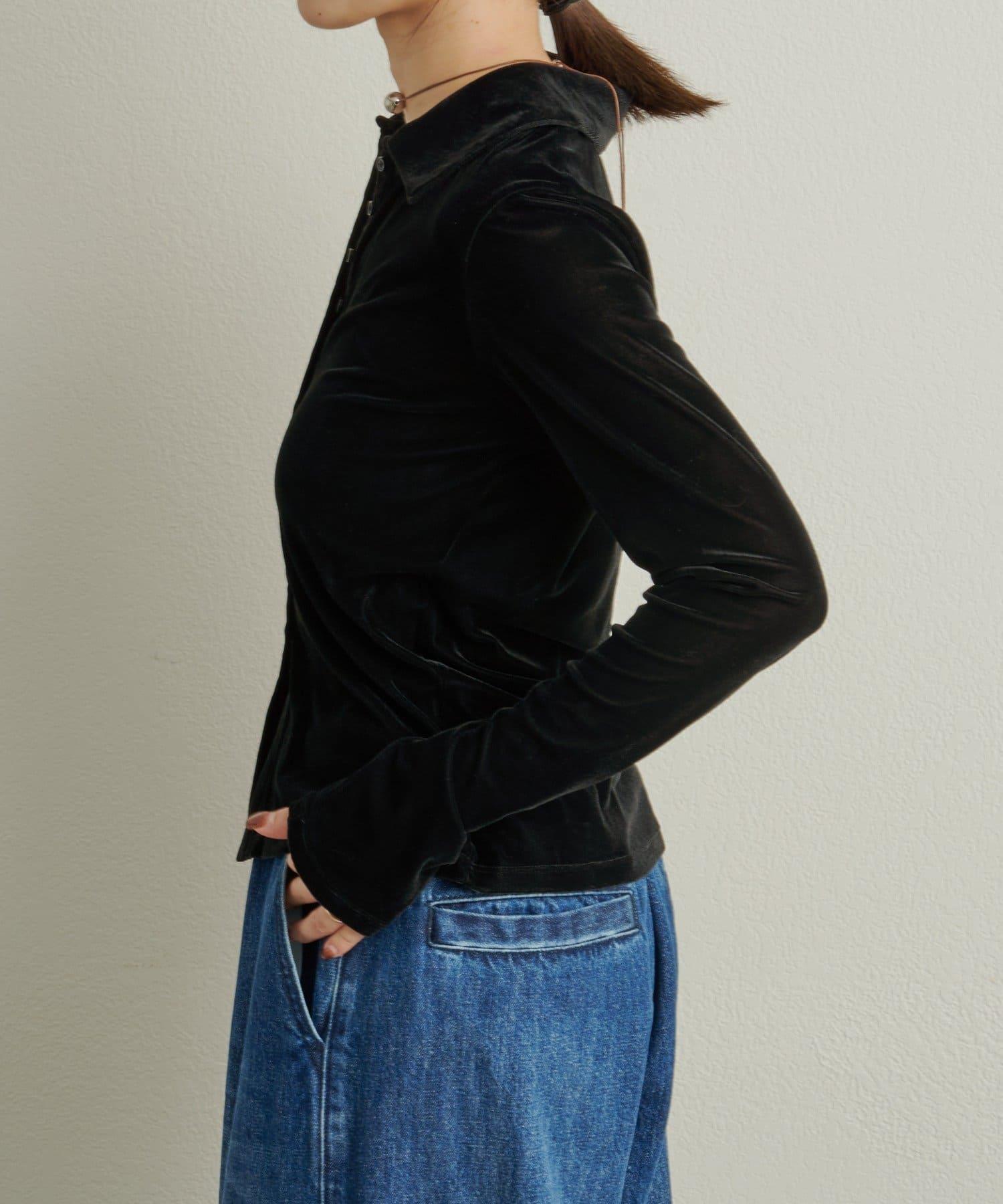 薄紗天鵝絨翻領開衫