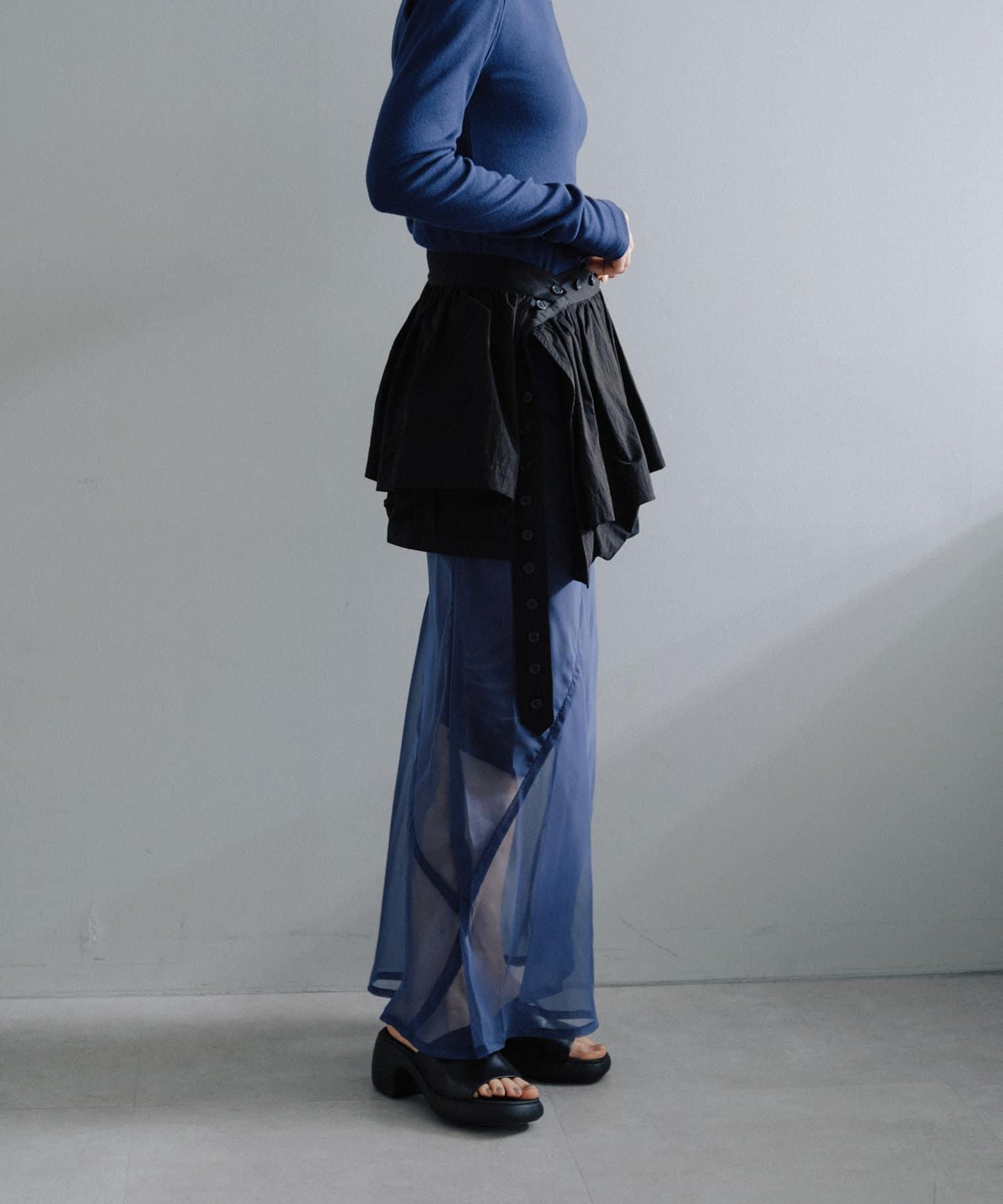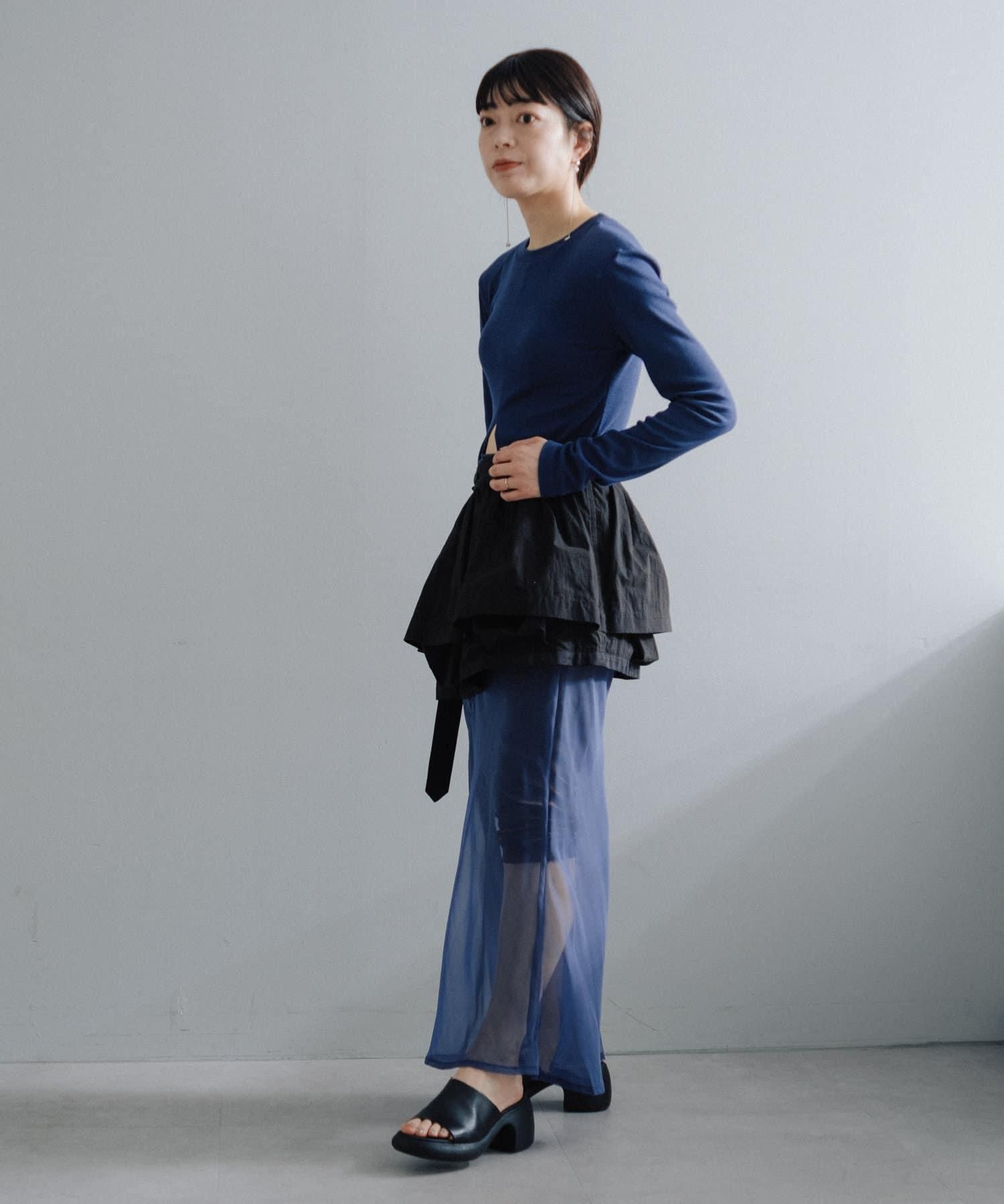 這是一款適合疊穿的透視長裙,可套在緊身褲或緊身衣等褲襪外面,盡享透明感。