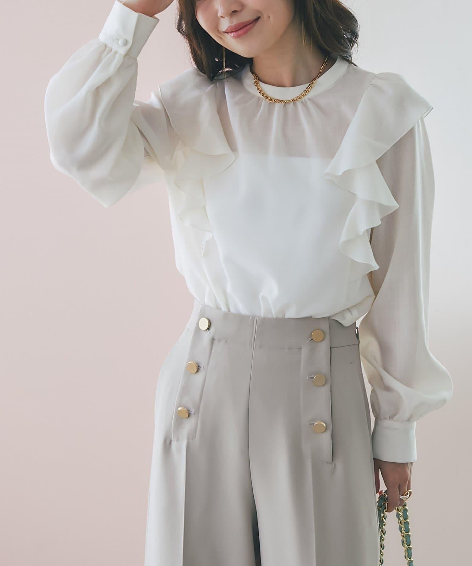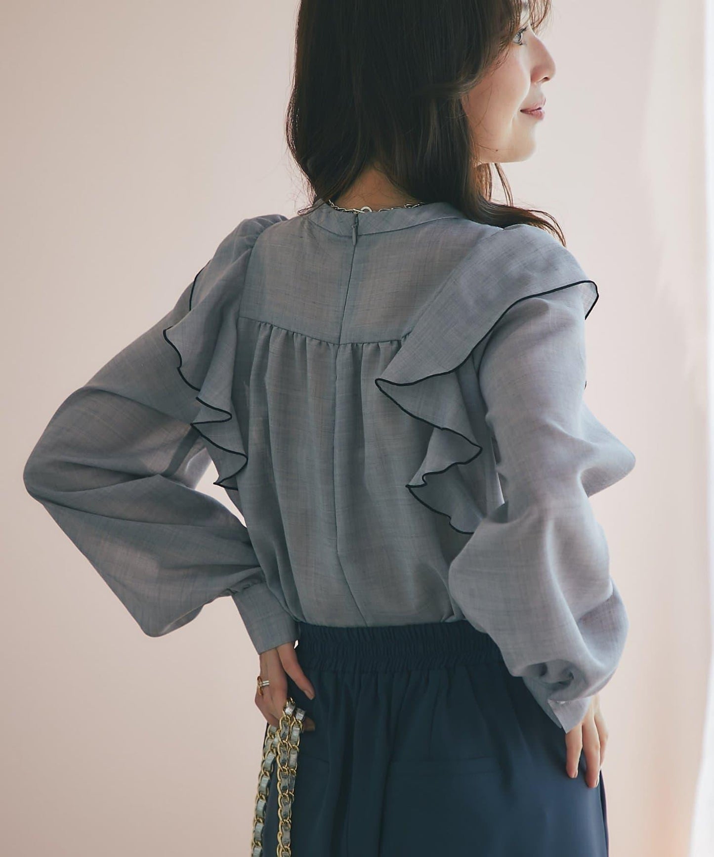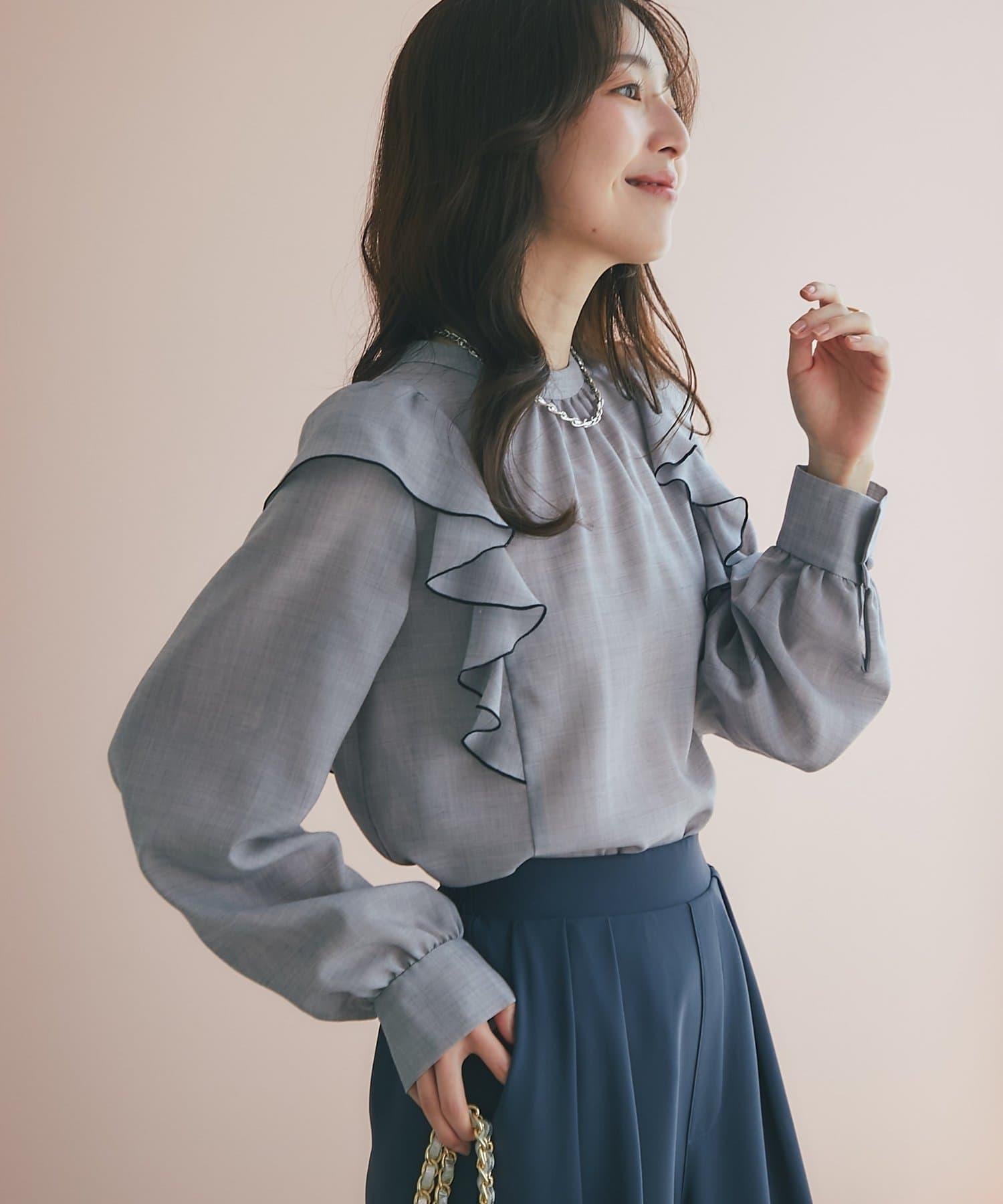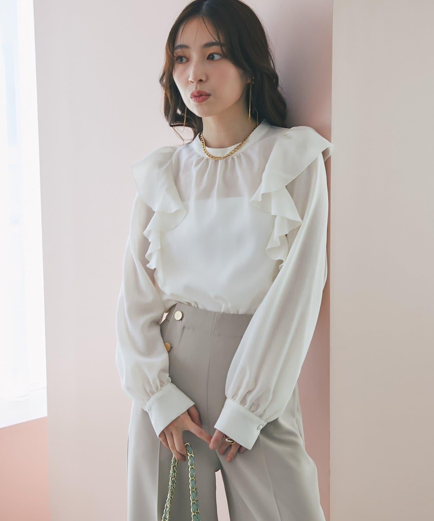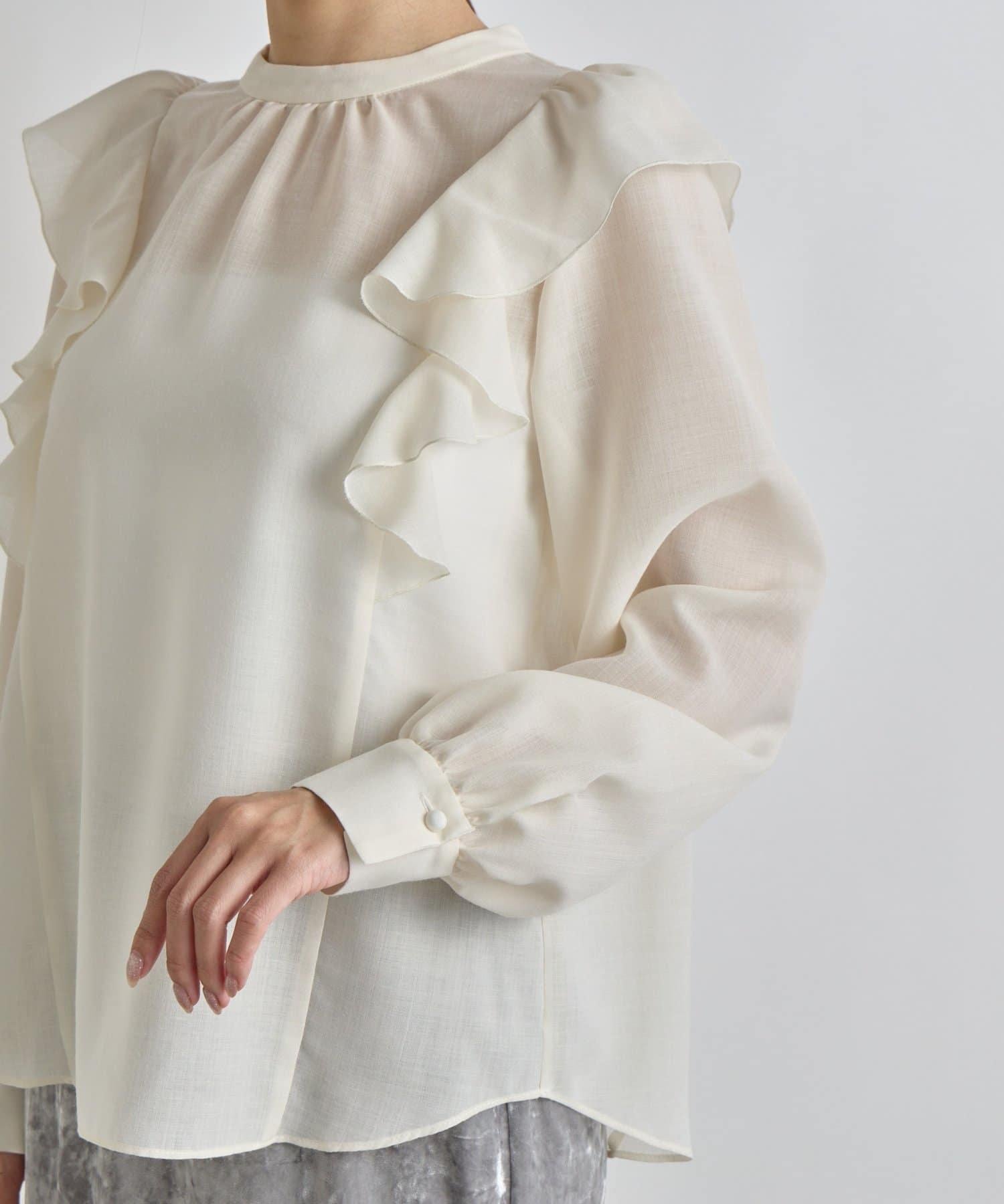 薄羊毛褶邊荷葉邊襯衫