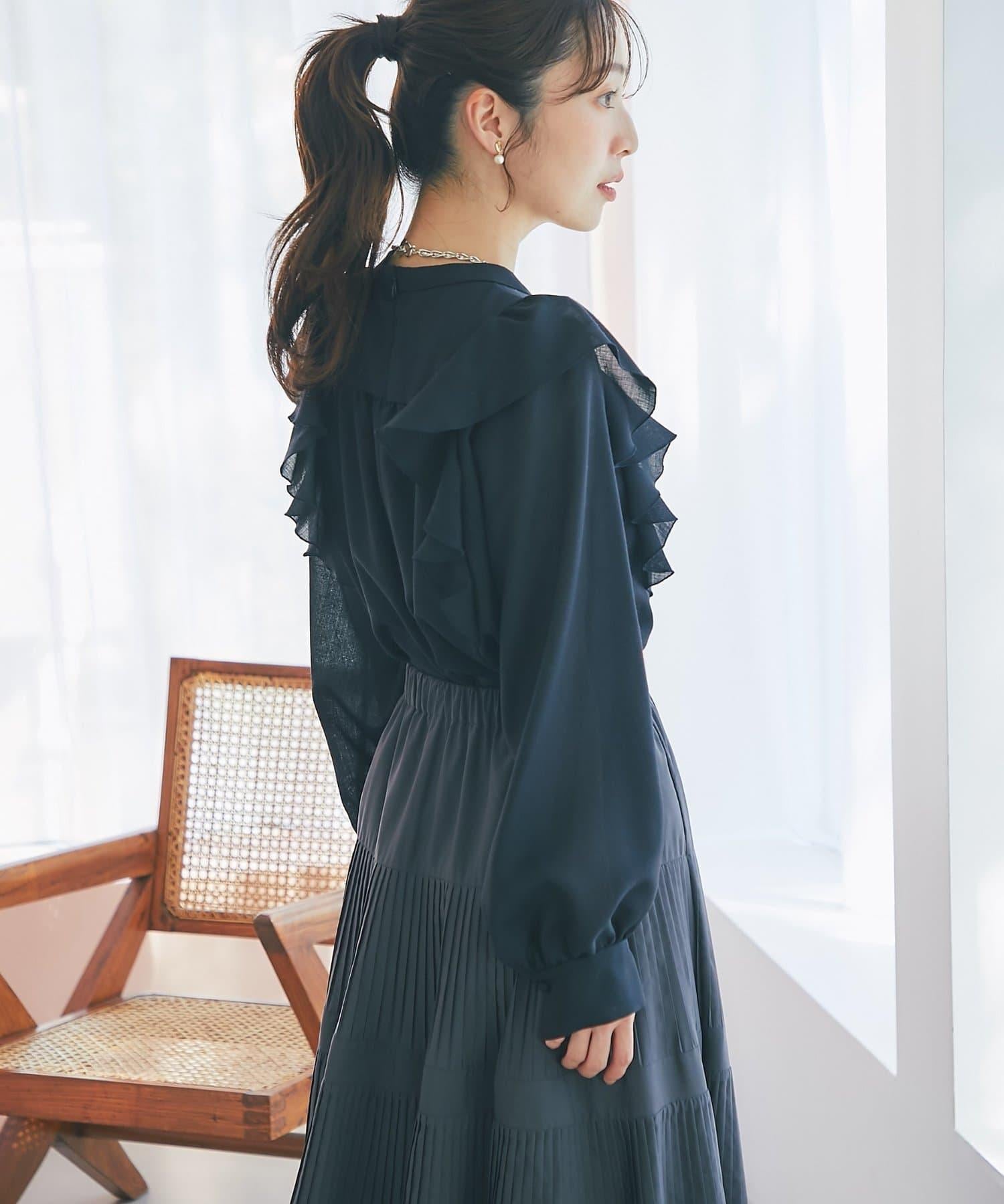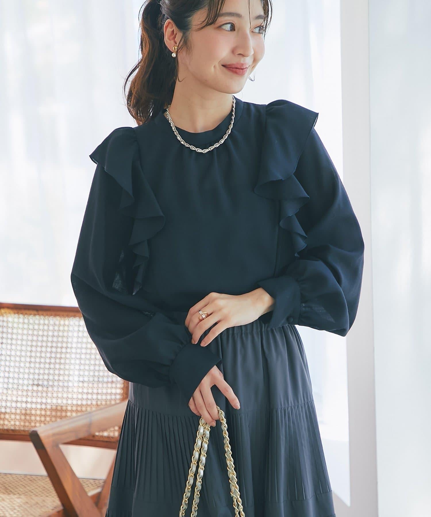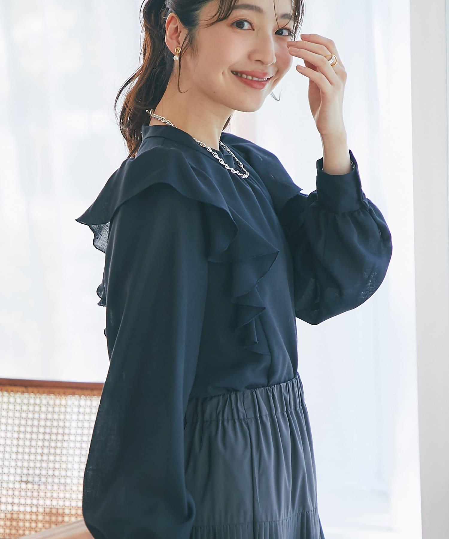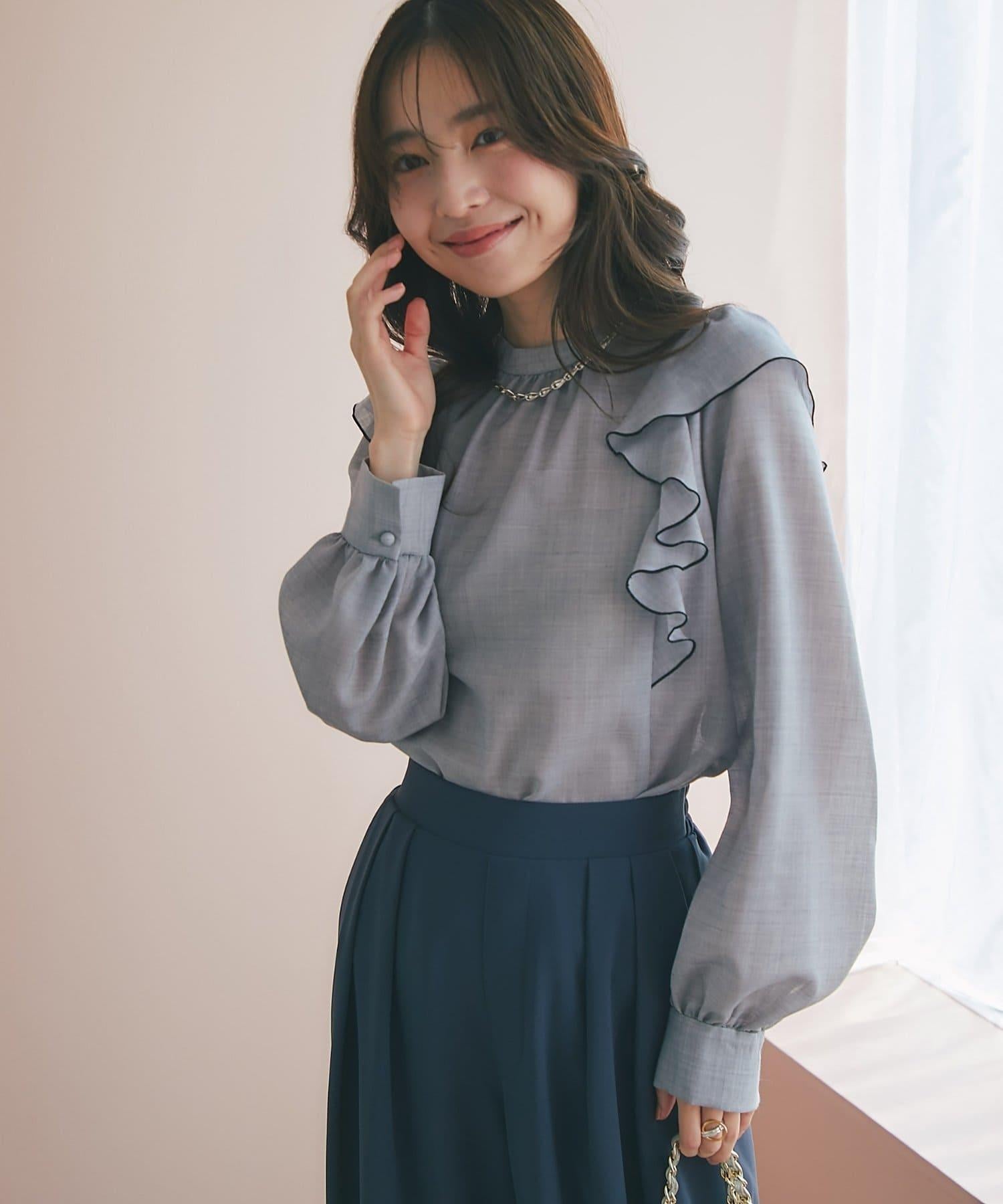 薄羊毛褶邊荷葉邊襯衫