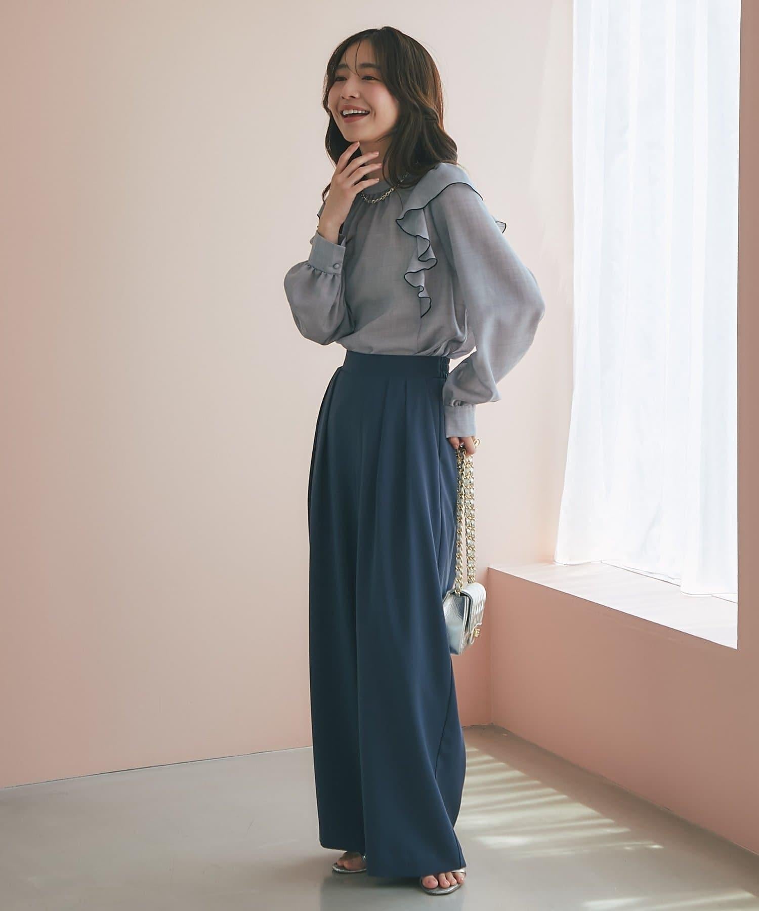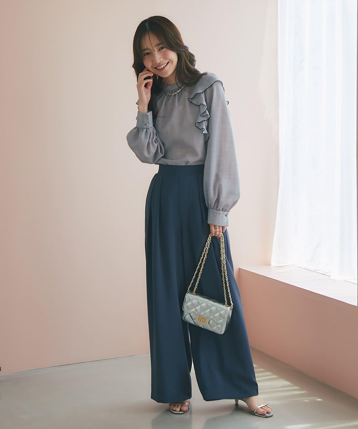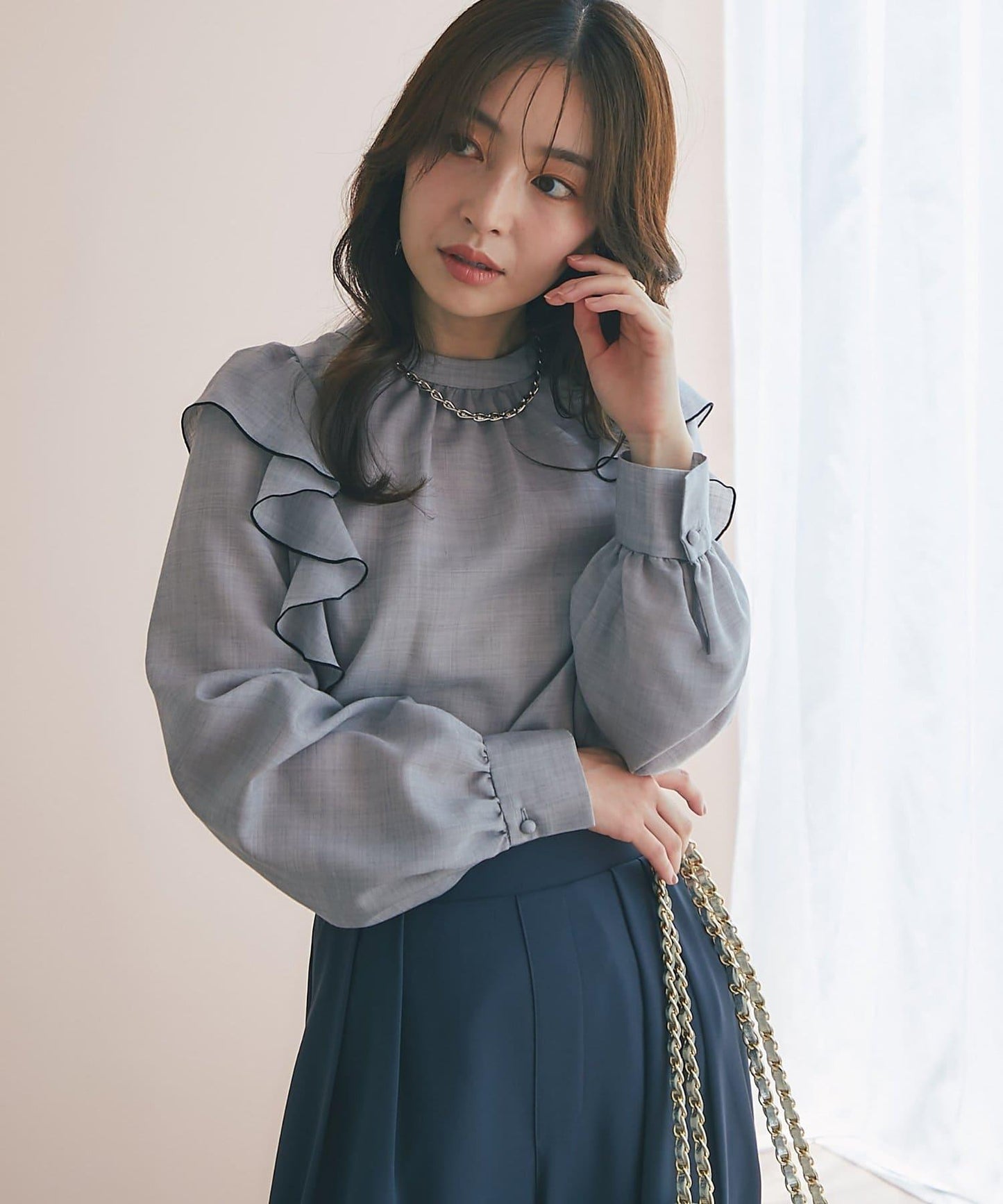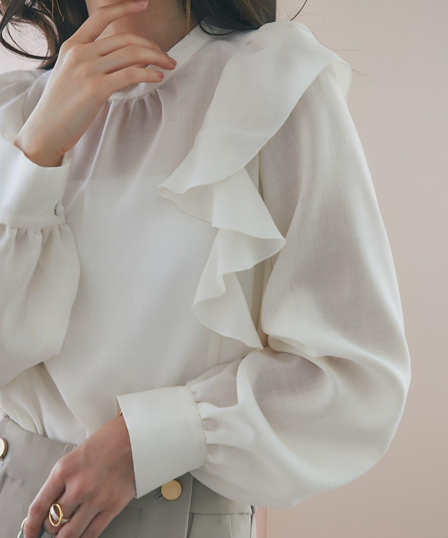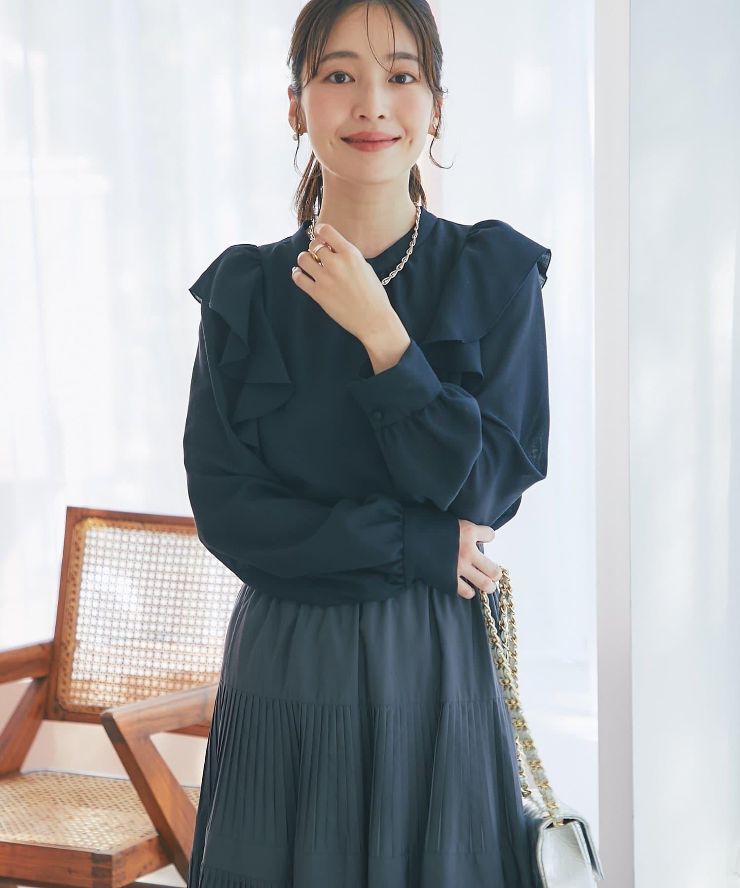 薄羊毛褶邊荷葉邊襯衫