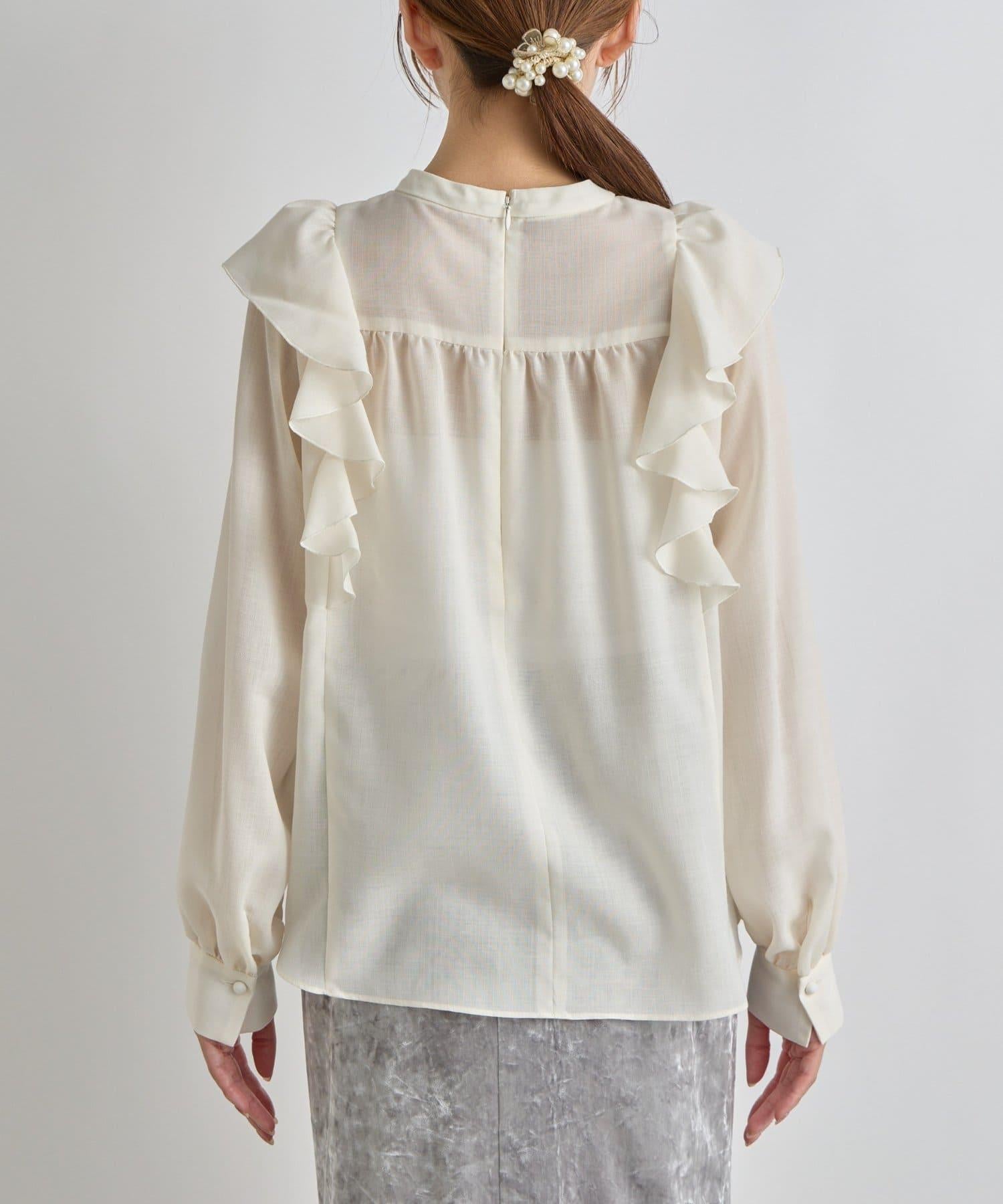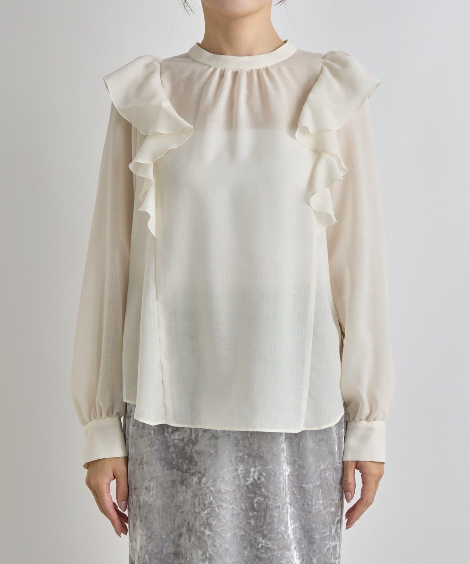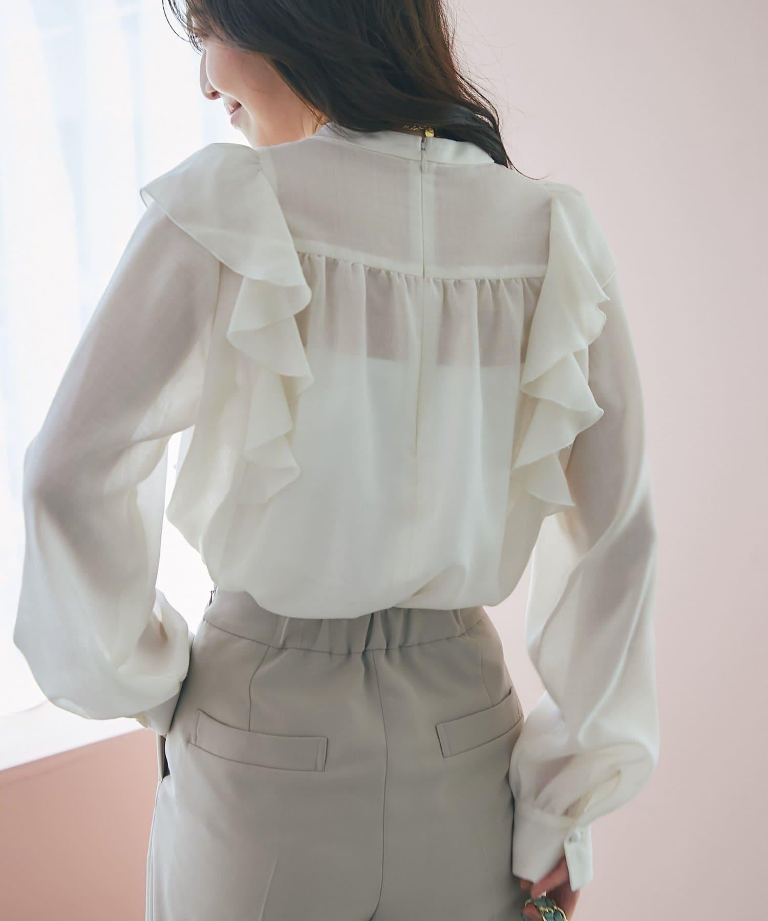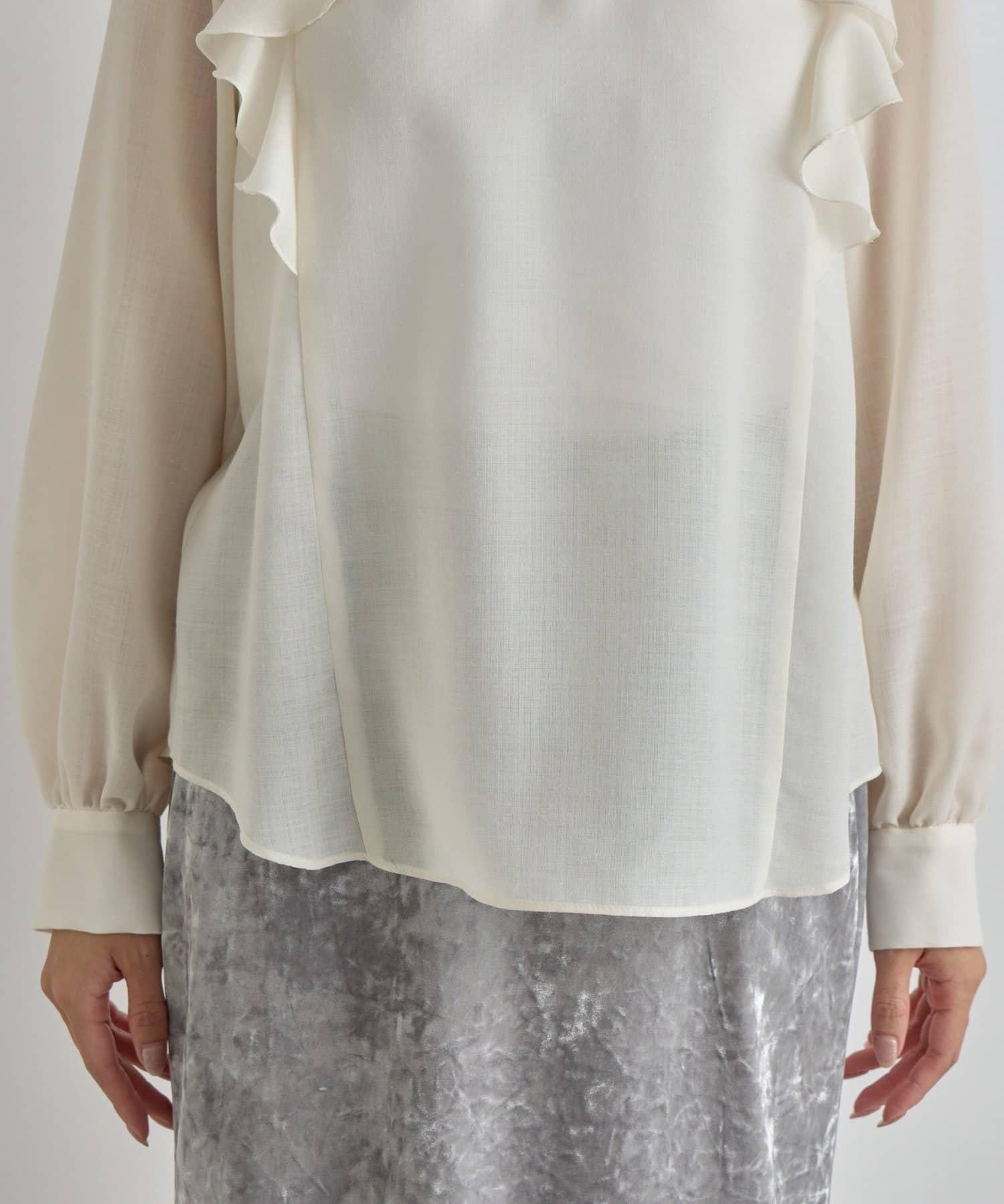 透視材質荷葉邊細節上衣。