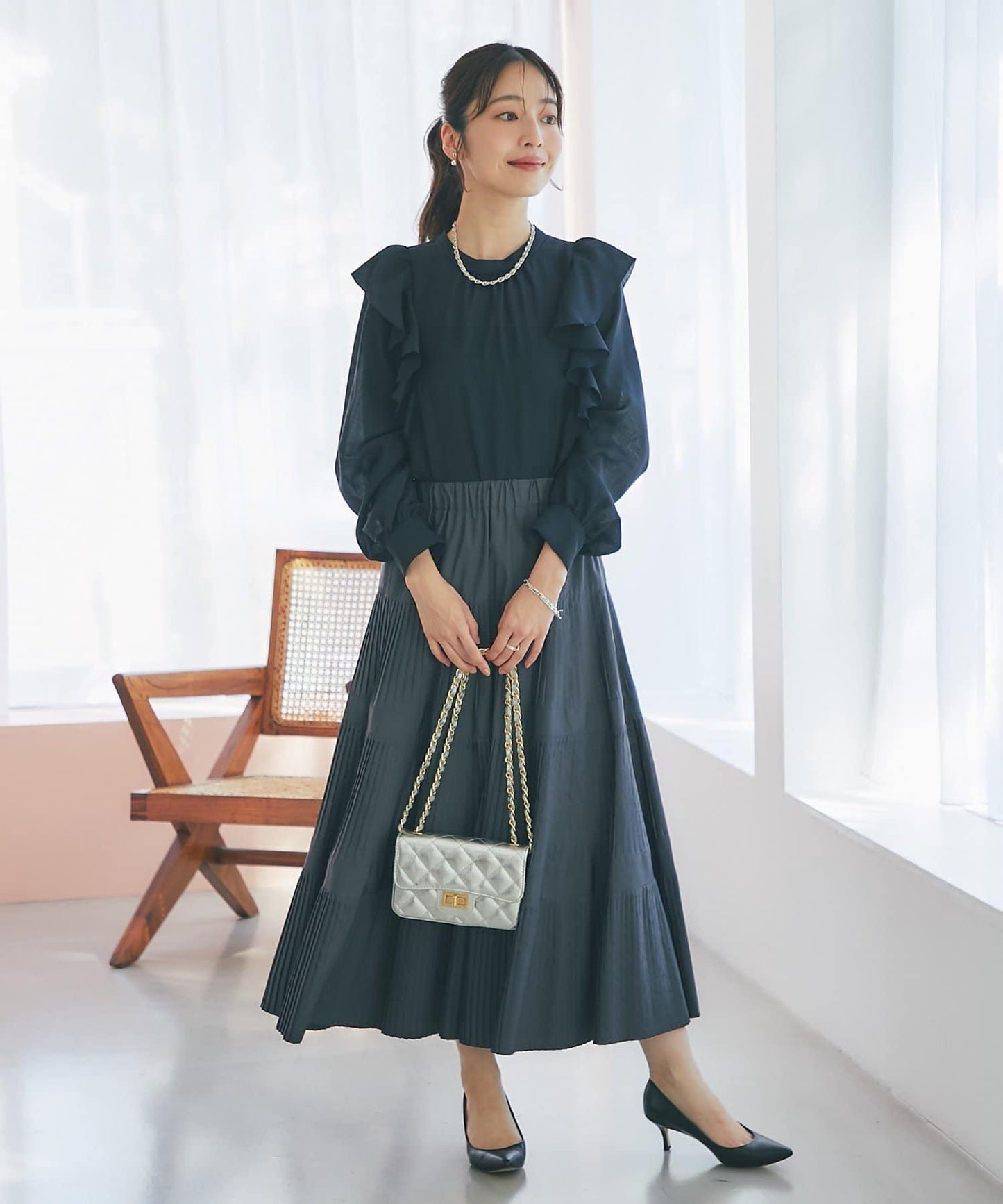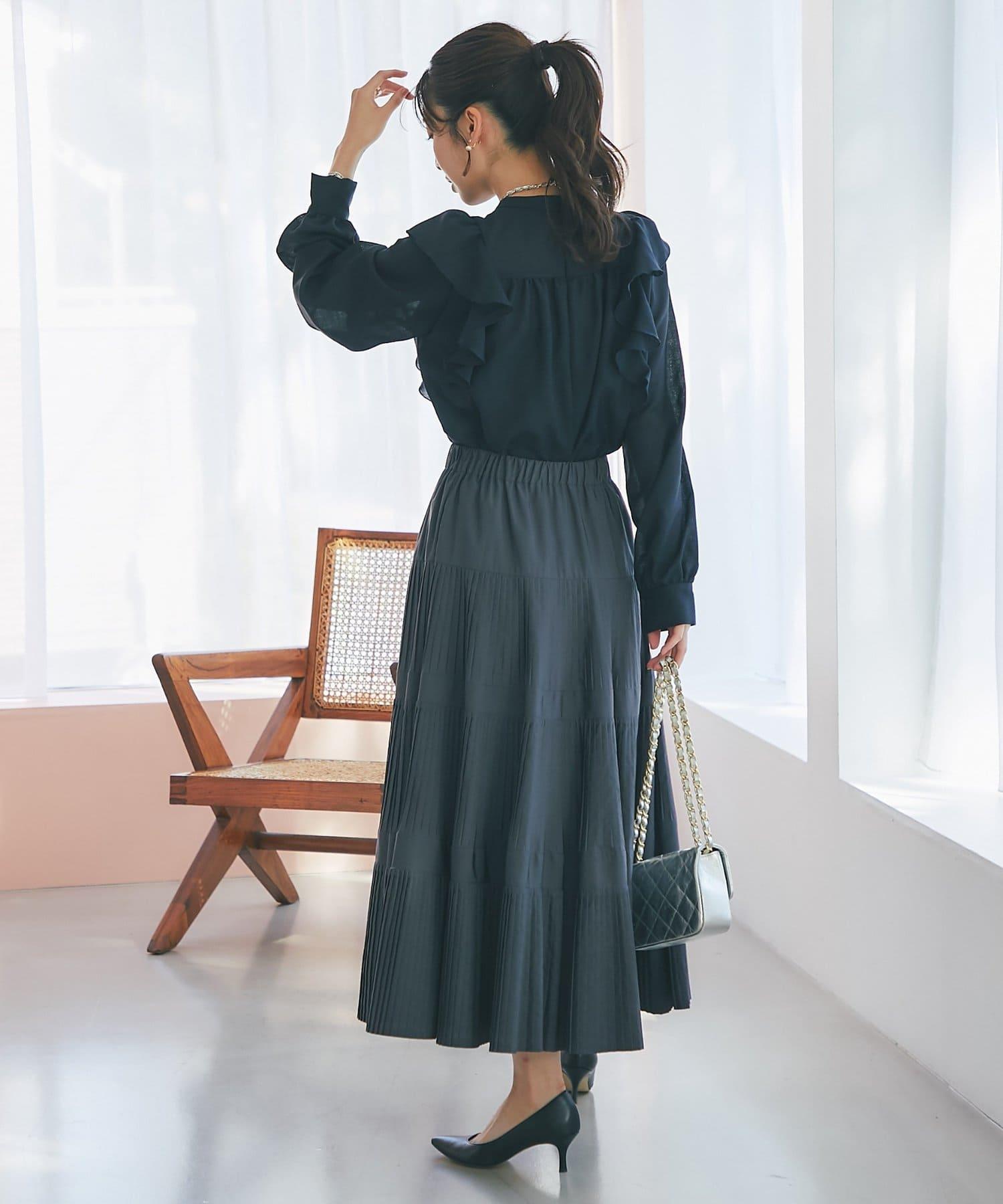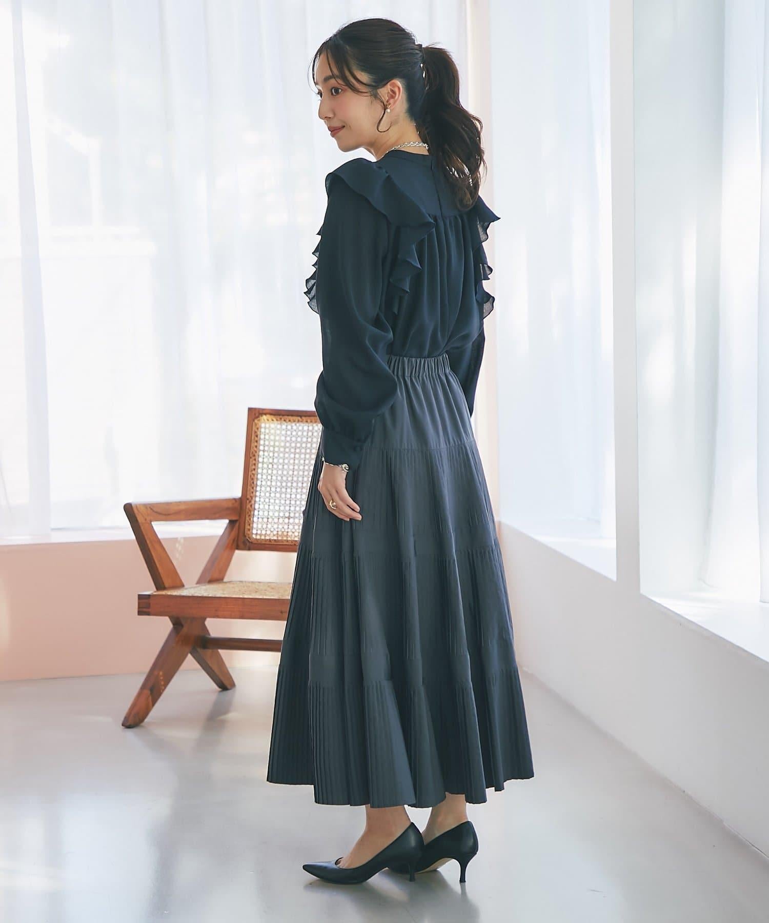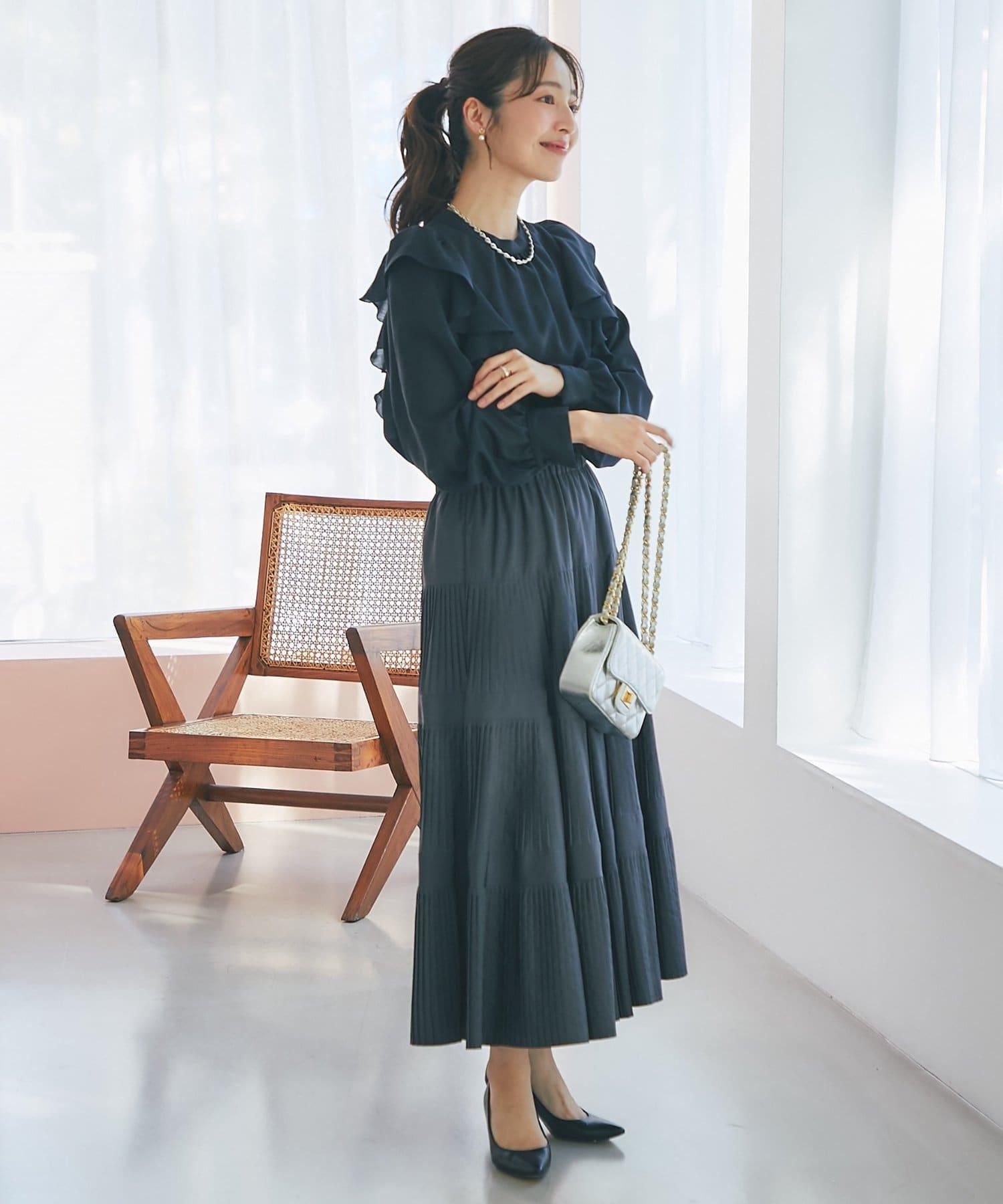 面料還具有彈力感,荷葉邊的飄逸感呈現出美麗的立體感。