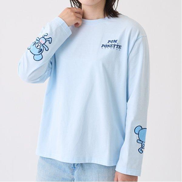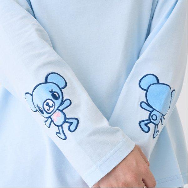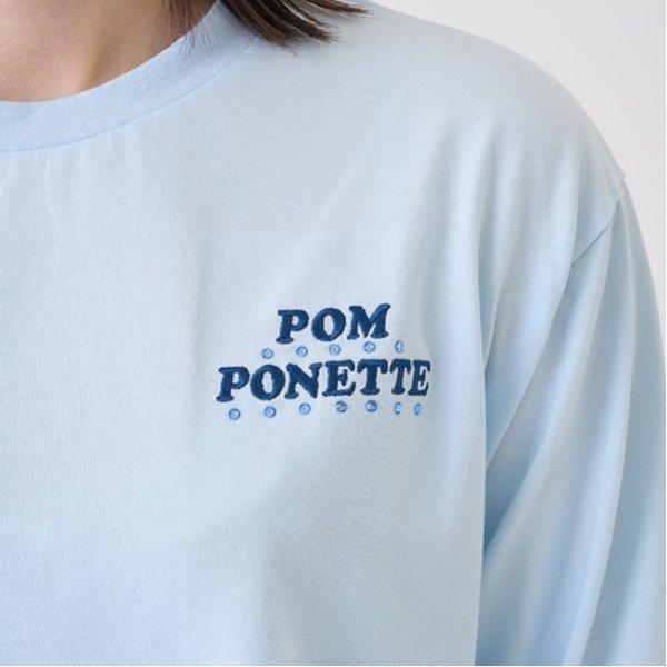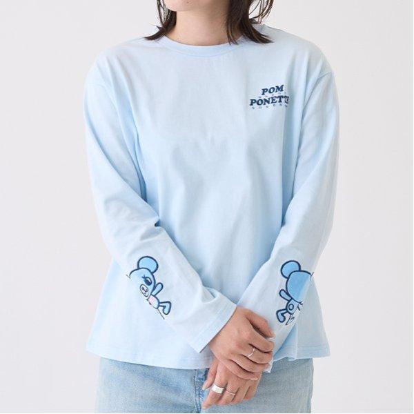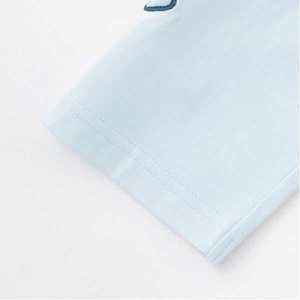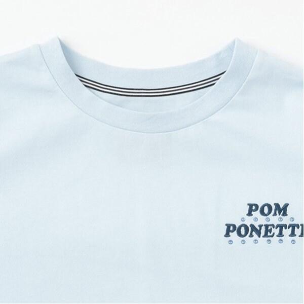 胸前的水鑽閃閃發光,淺藍色 T 恤上的海軍藍刺繡像 Pomponette 一樣優雅清新。