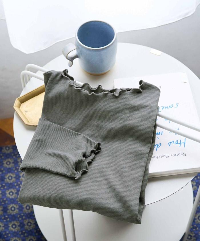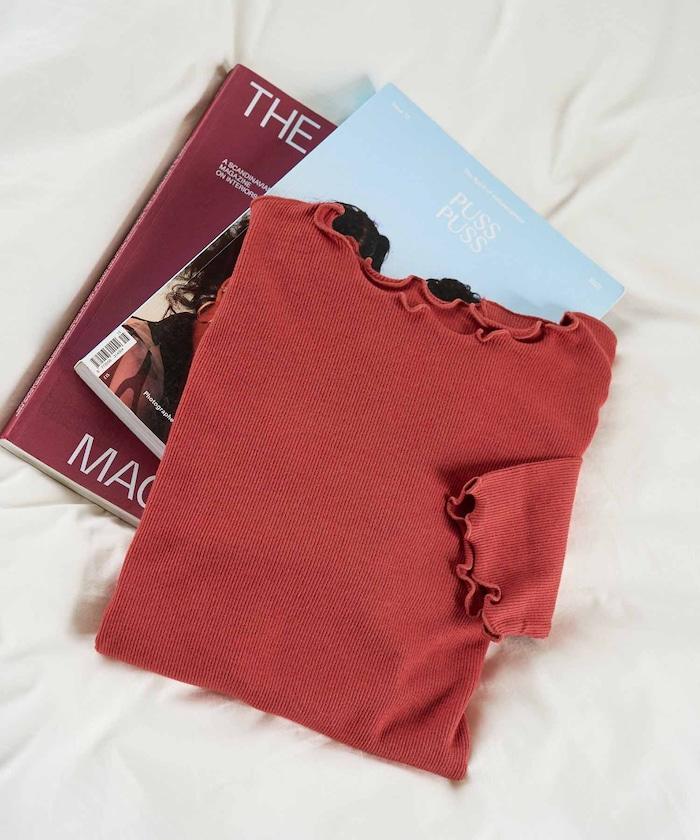 預約商品薑黃色荷葉邊長袖上衣