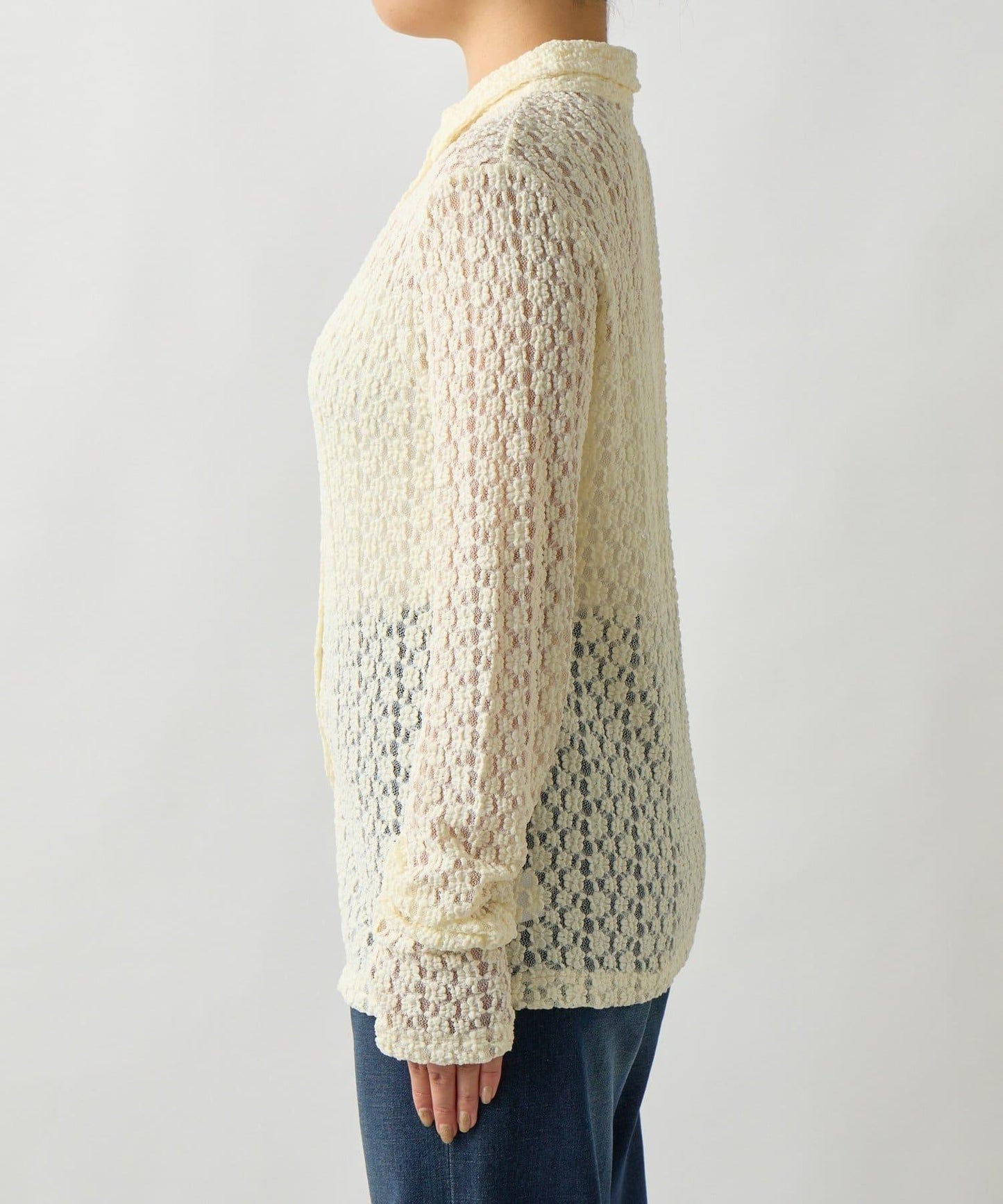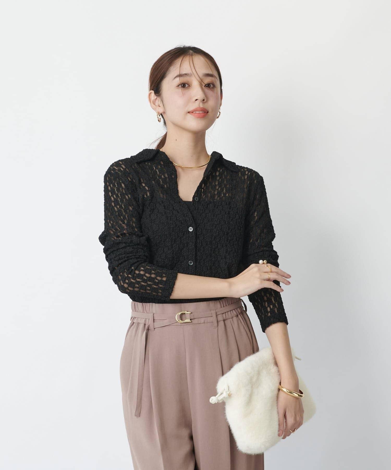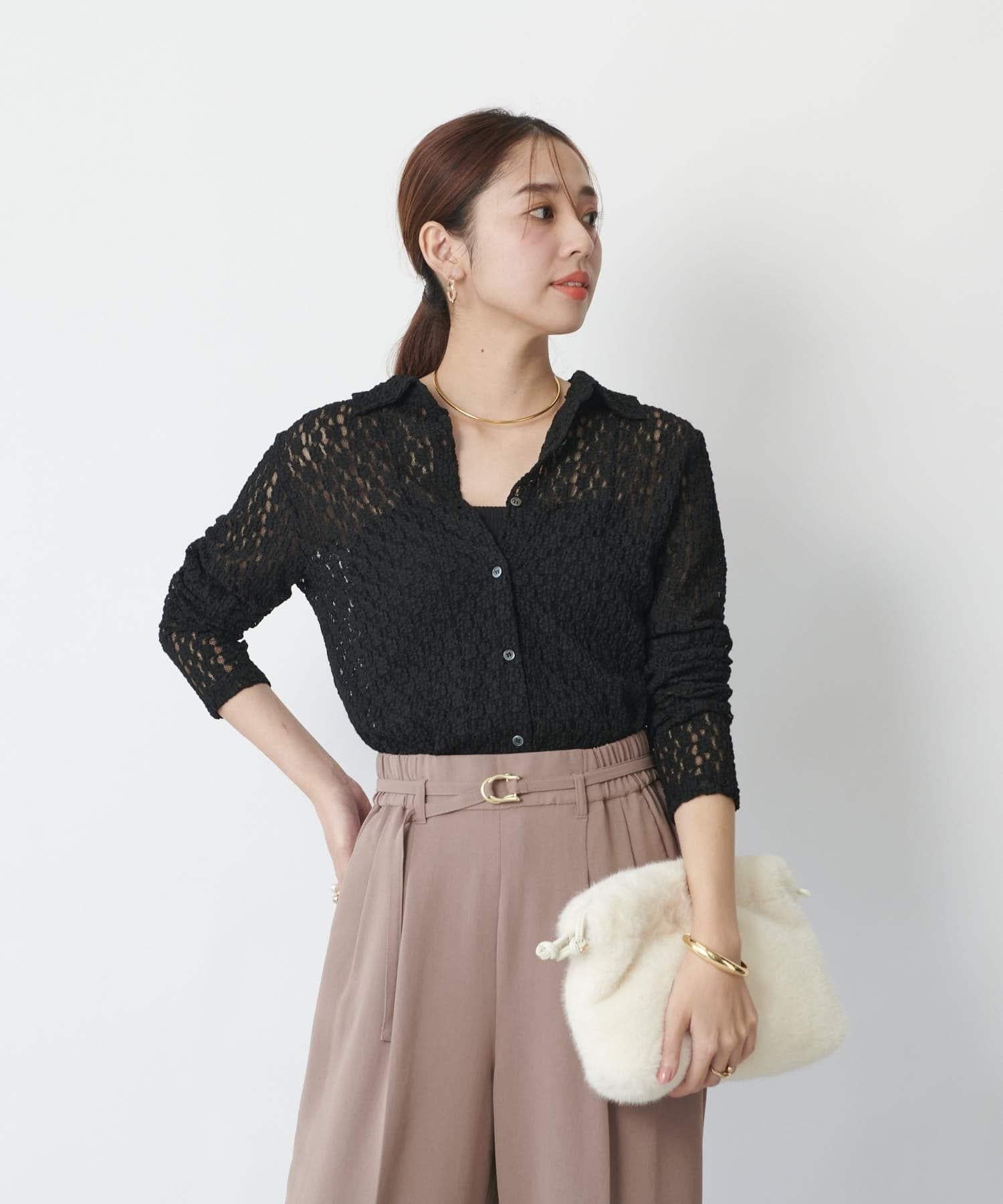 這款蕾絲襯衫精緻的鏤空設計為您的日常搭配增添了精緻的色彩。