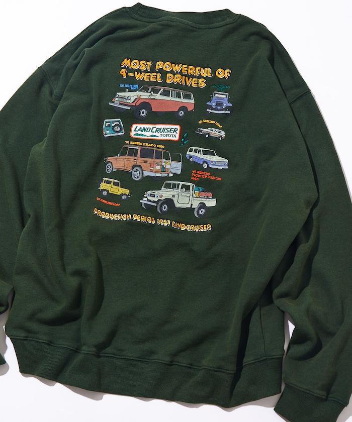這款 FREAK'S STORE 👍圓領運動衫以陸地巡洋艦為主題,色彩靈感來自清晨、正午和深夜,是 "任何時候都值得信賴的夥伴"。