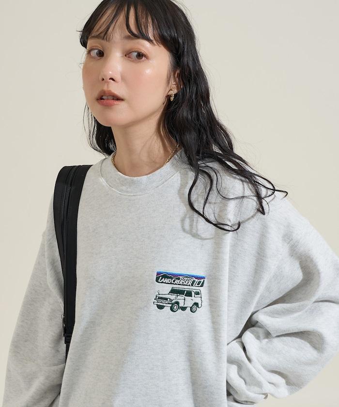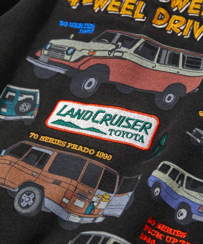 這款圓領運動衫的貼布設計以豐田歷史悠久的👍陸地巡洋艦為主題。