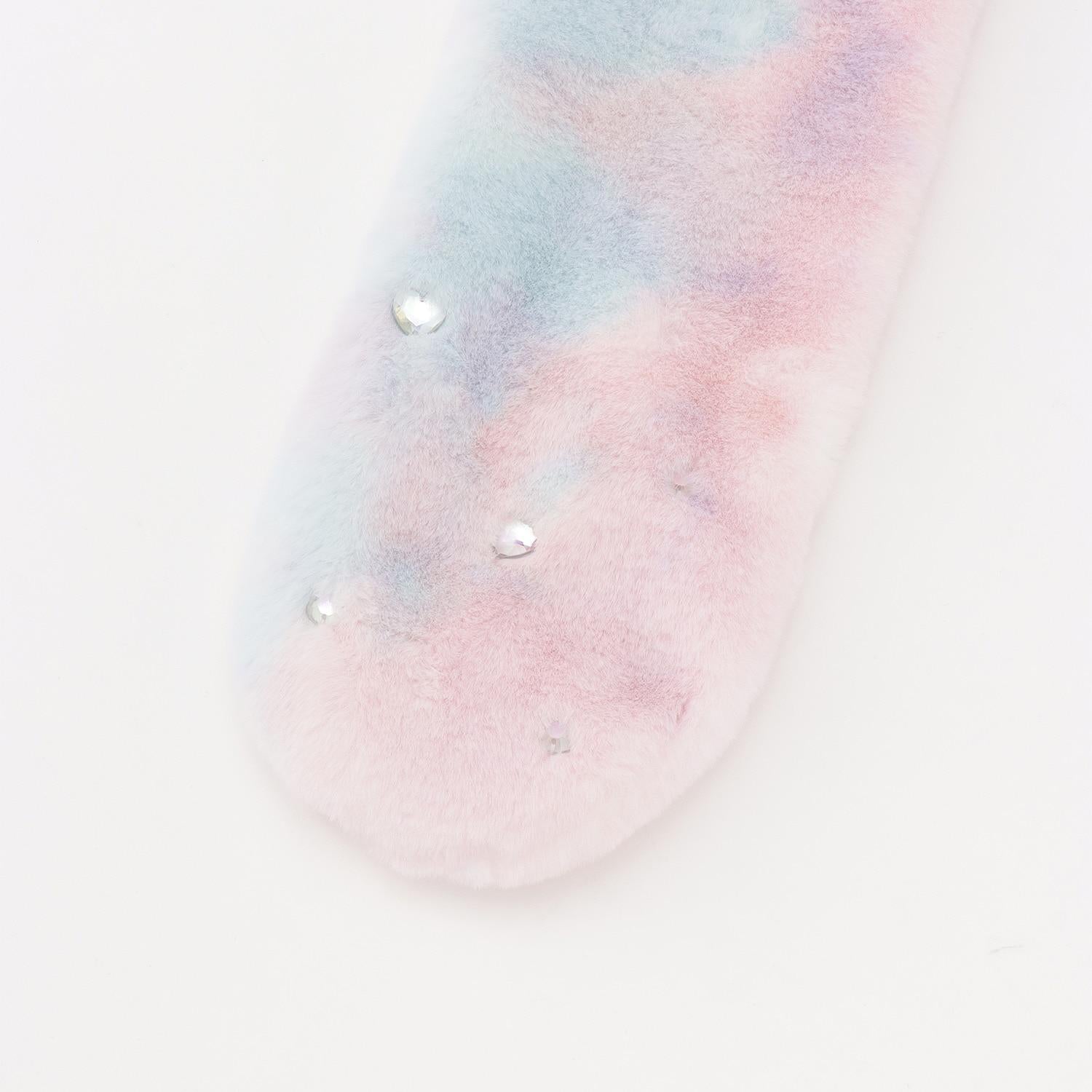 圍巾有三種顏色可供選擇--米色、淺粉色和粉色漸變色,上面鑲嵌著長長的緞帶和大塊的極光色飾片,非常符合季節主題。