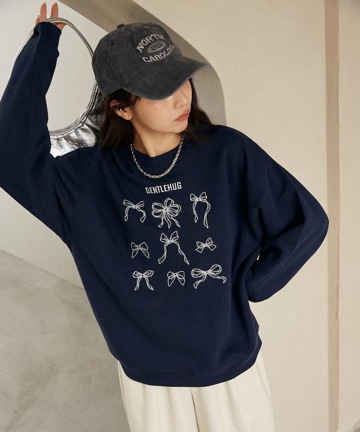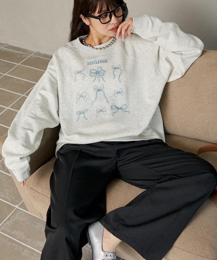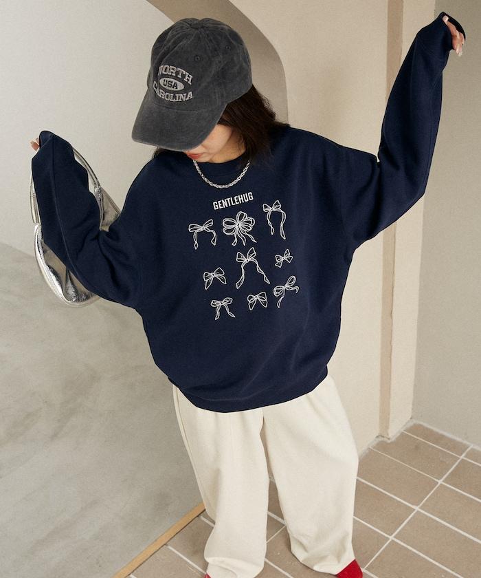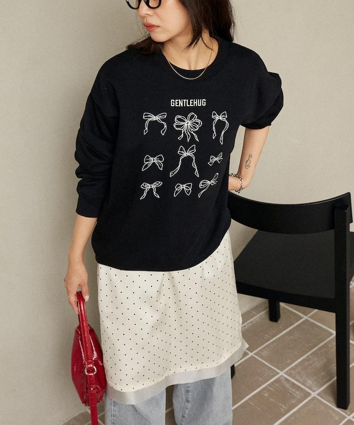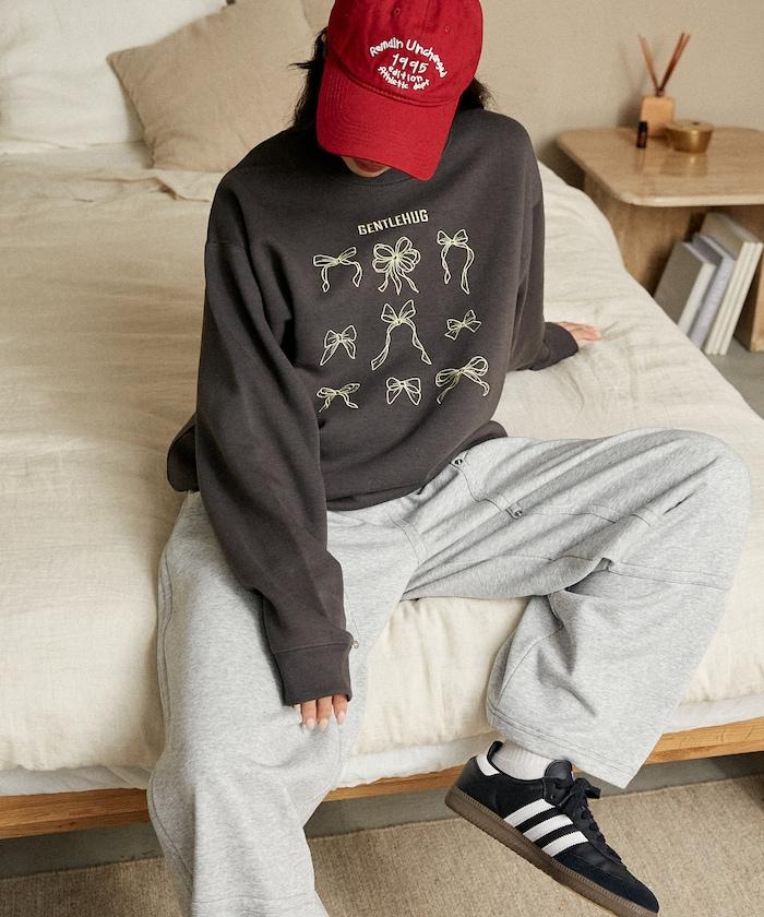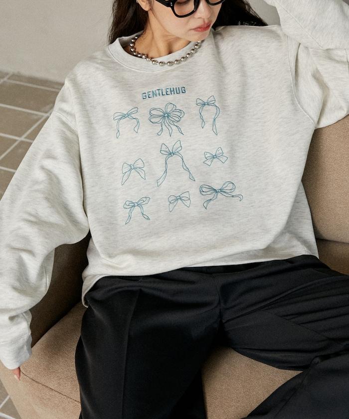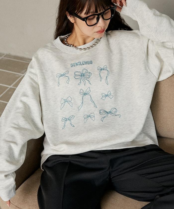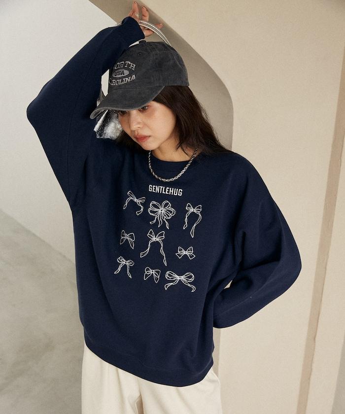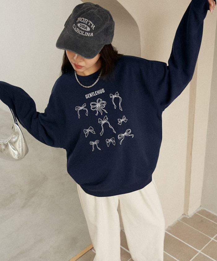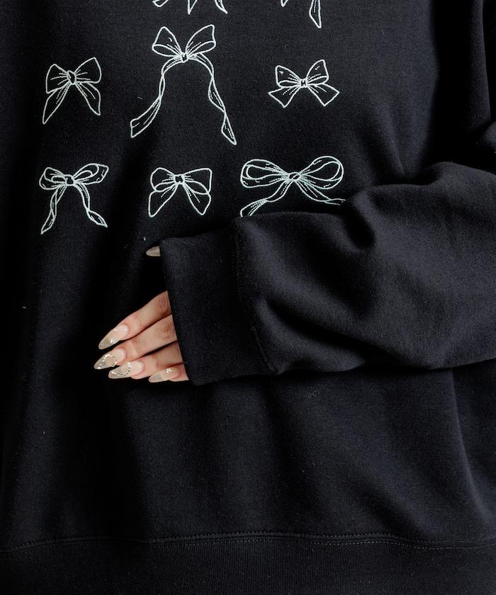 蝴蝶結刺繡圓領衛衣