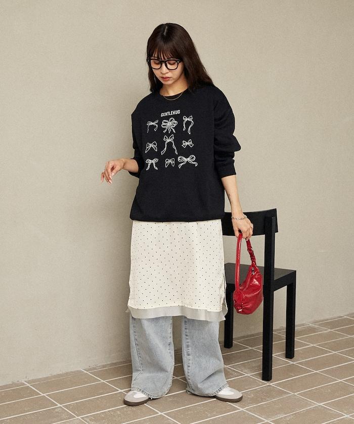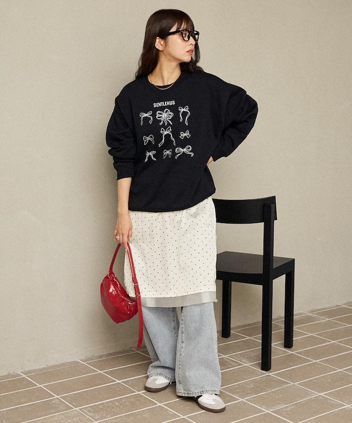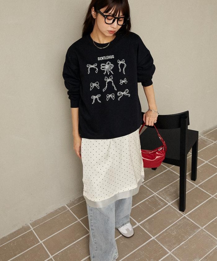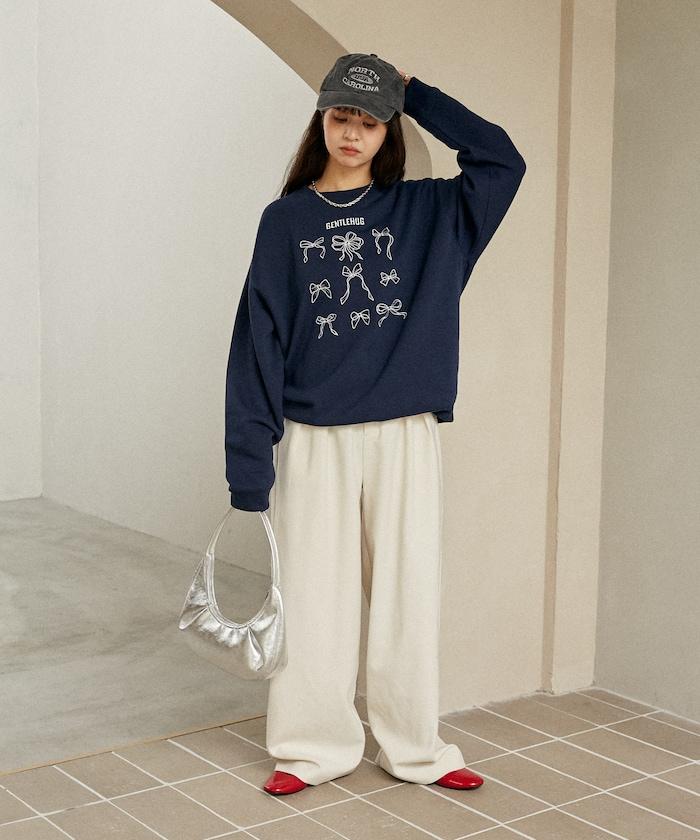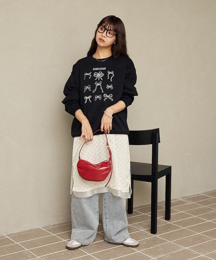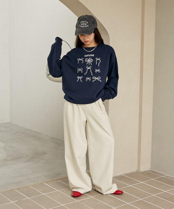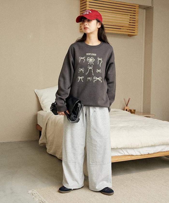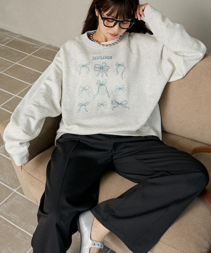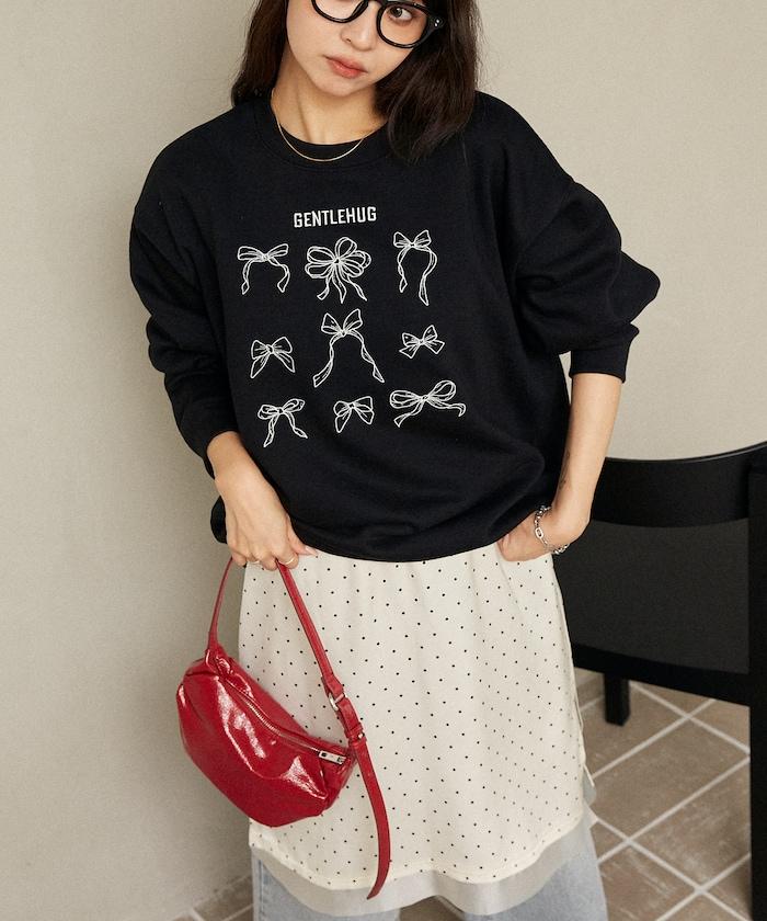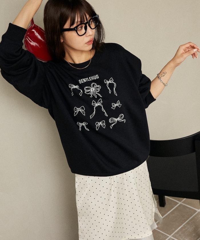 蝴蝶結刺繡圓領衛衣