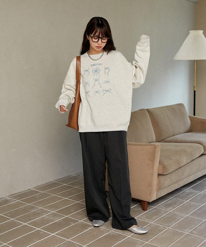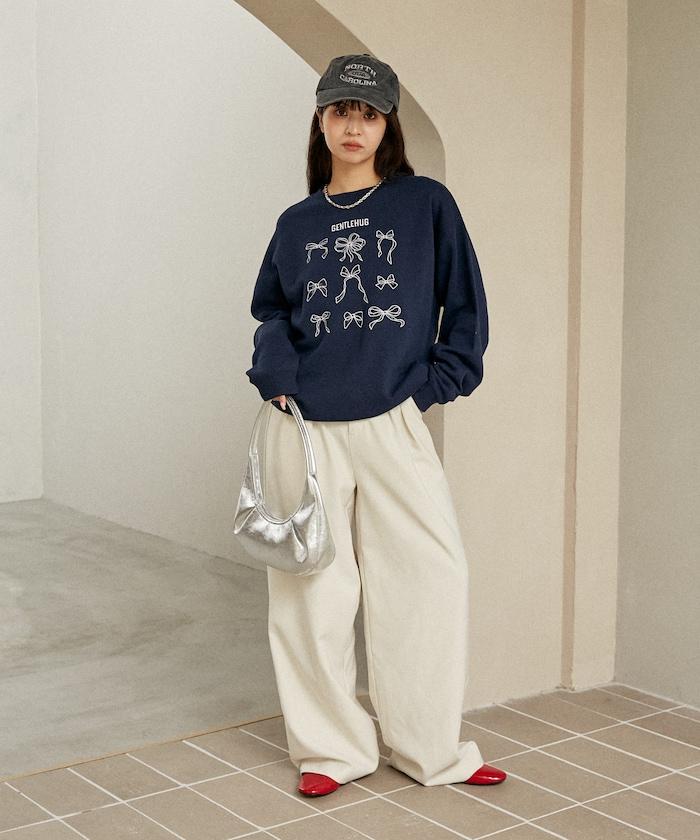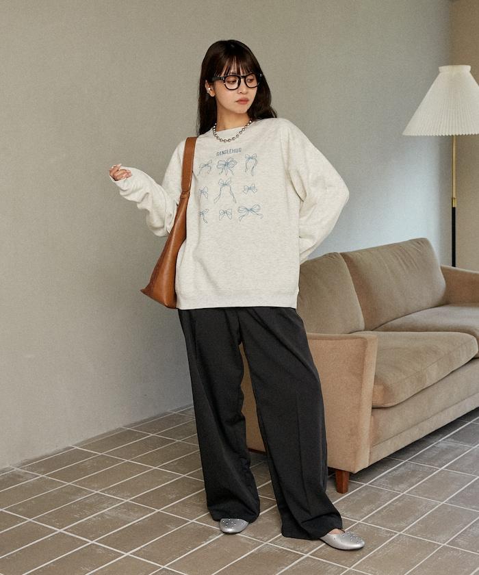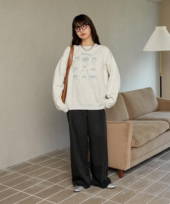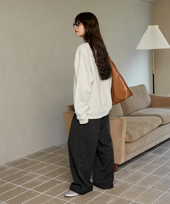 PUBLUX 敢於用寬大的褲裝來搭配衛衣,可以淡化衛衣的甜美設計。