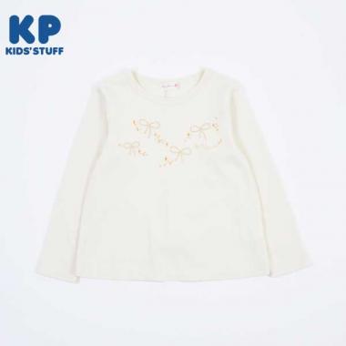 蝴蝶結刺繡長袖T恤(110~130)