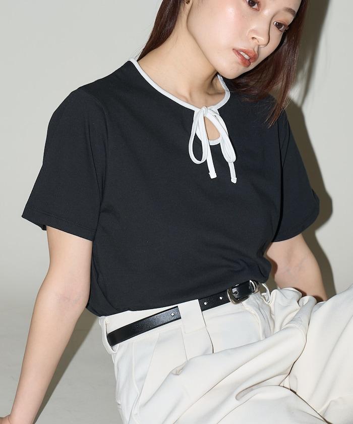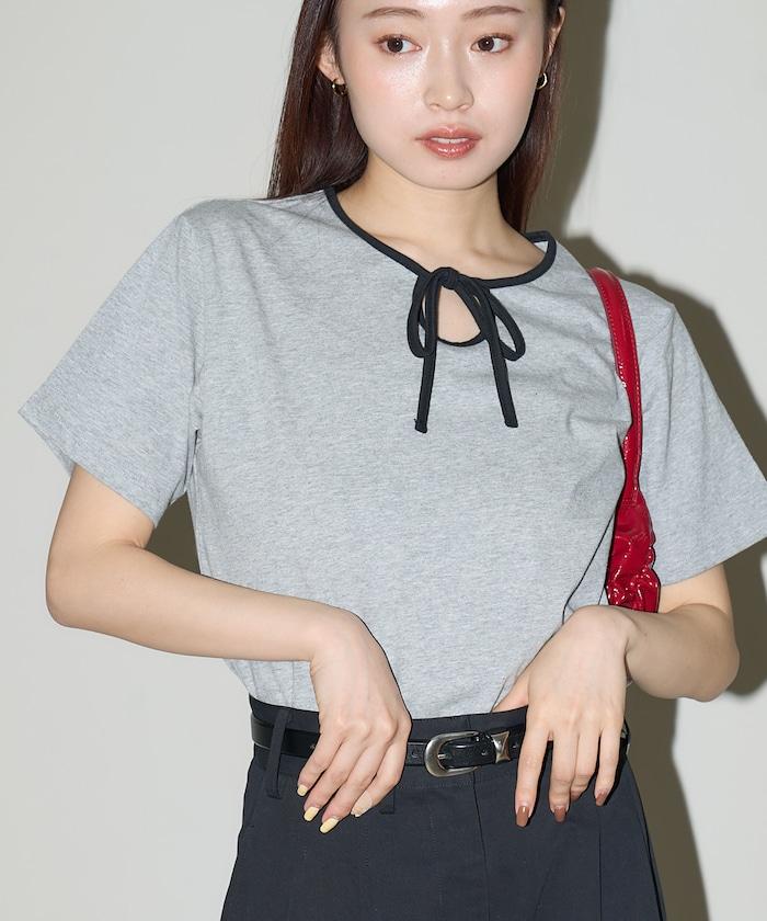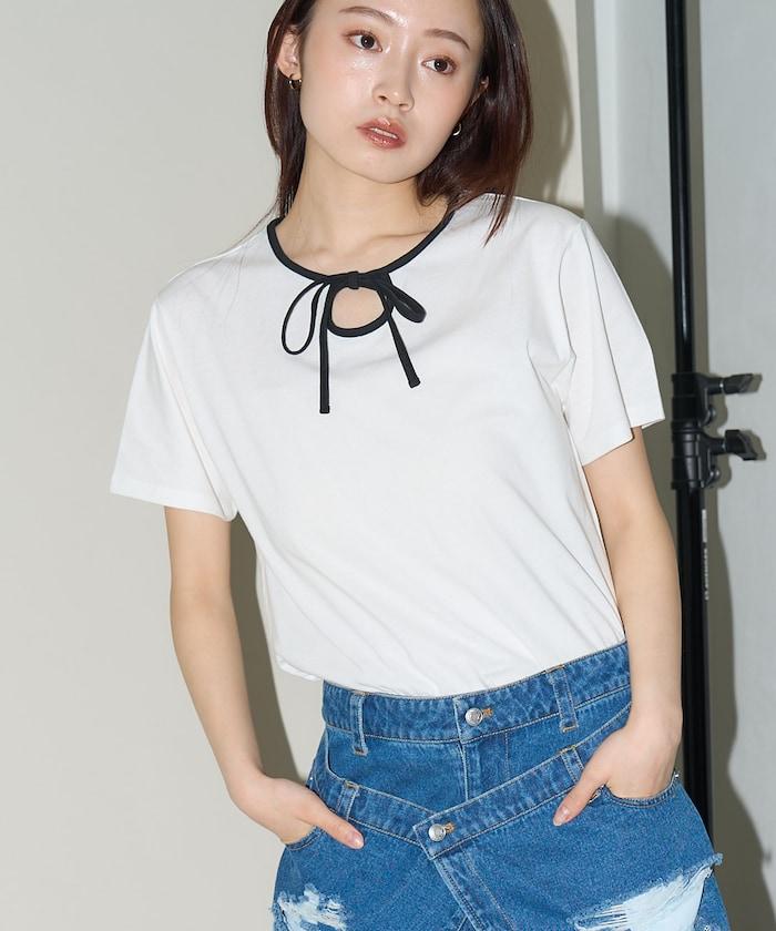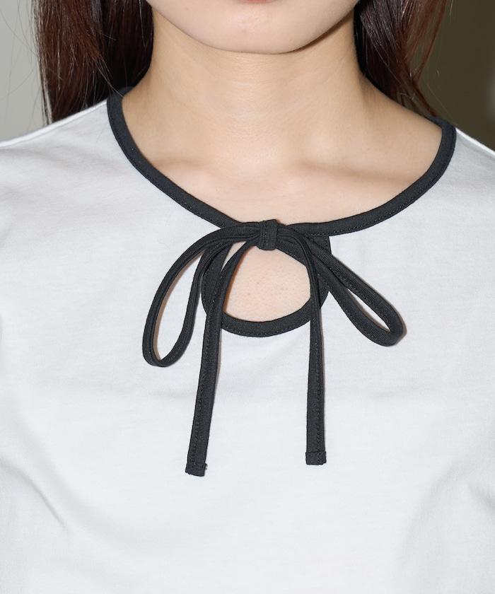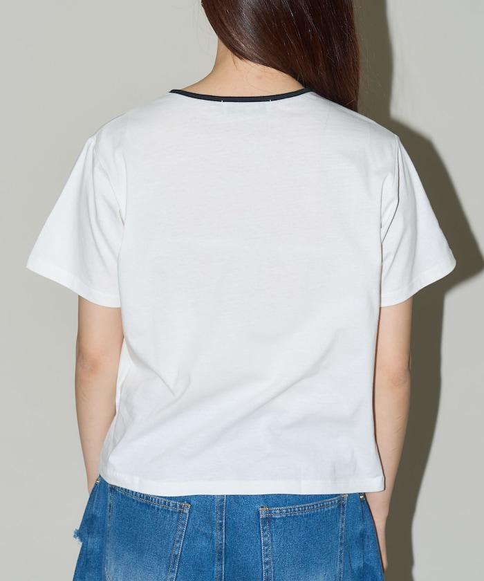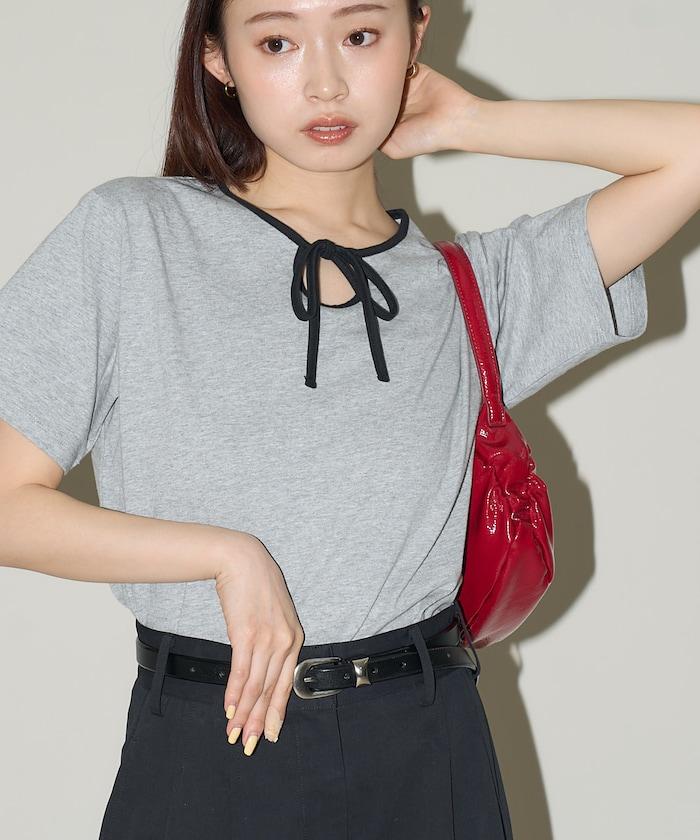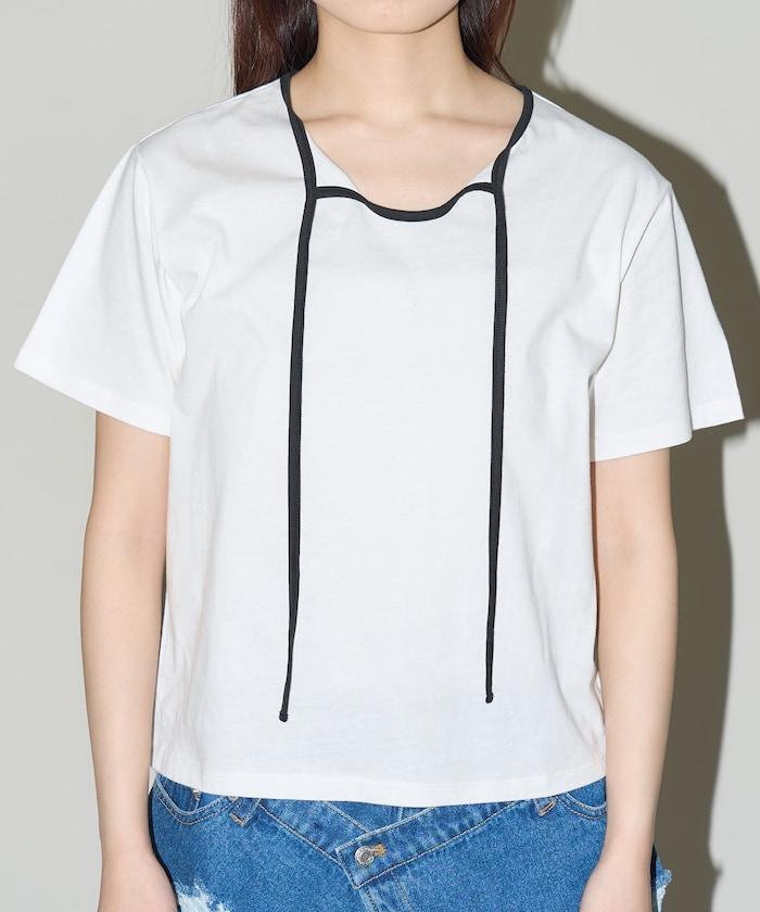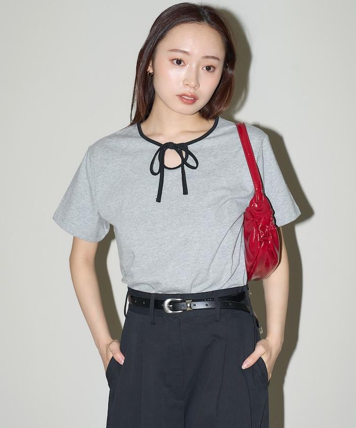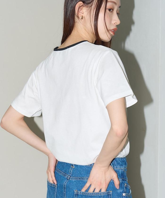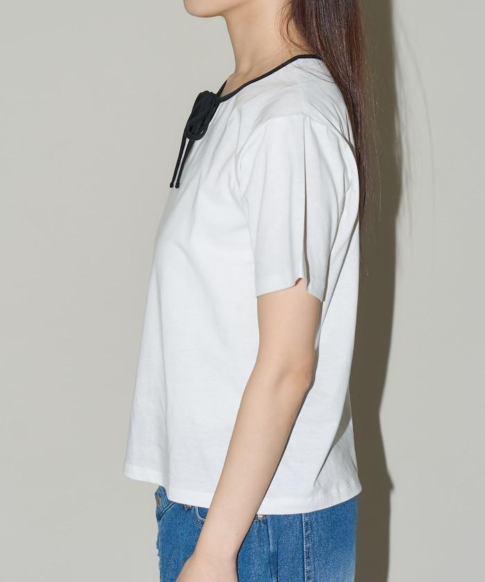 這款 T 恤的領子周圍有獨特的配色,這也是 Ringer T 的特色之一。該設計像蝴蝶結領帶一樣垂下穿著或用絲帶繫住時都非常可愛,為休閒造型增添了一絲甜美。