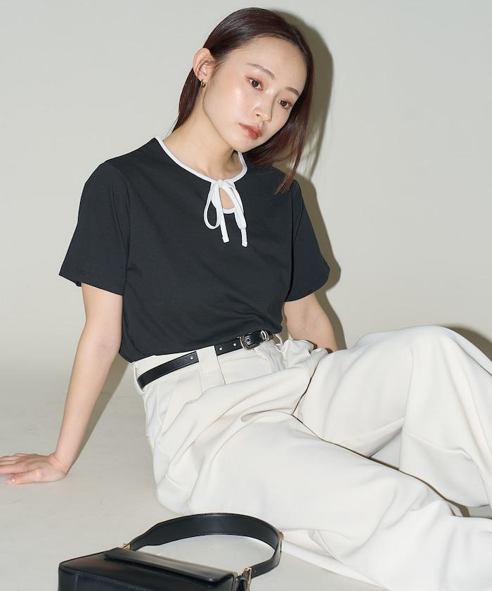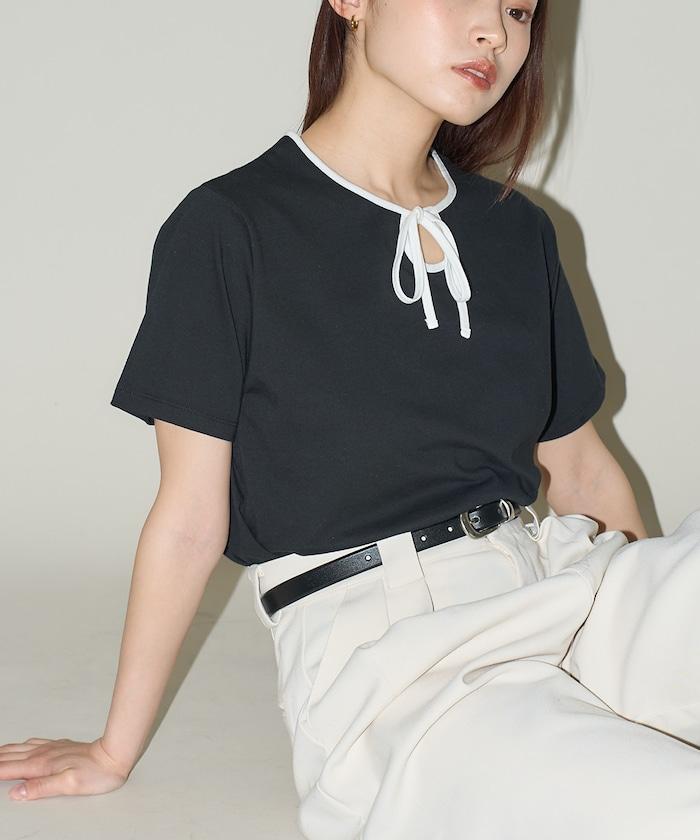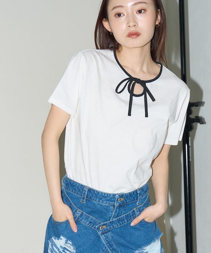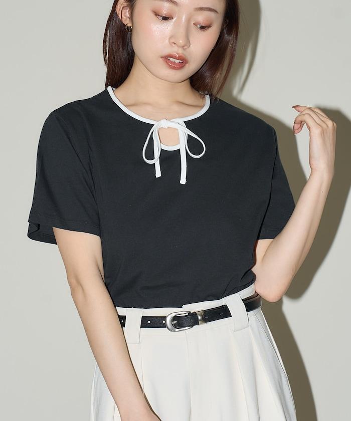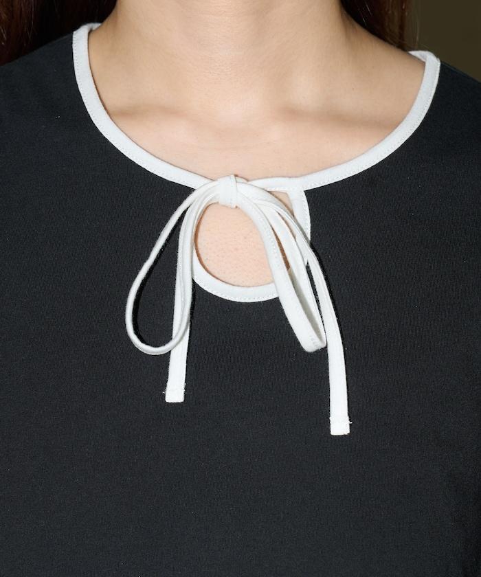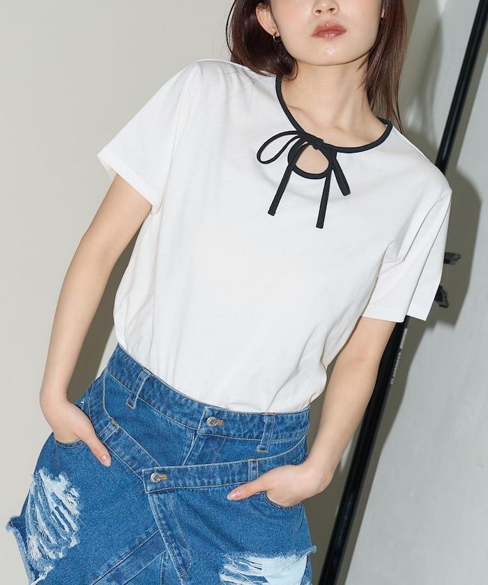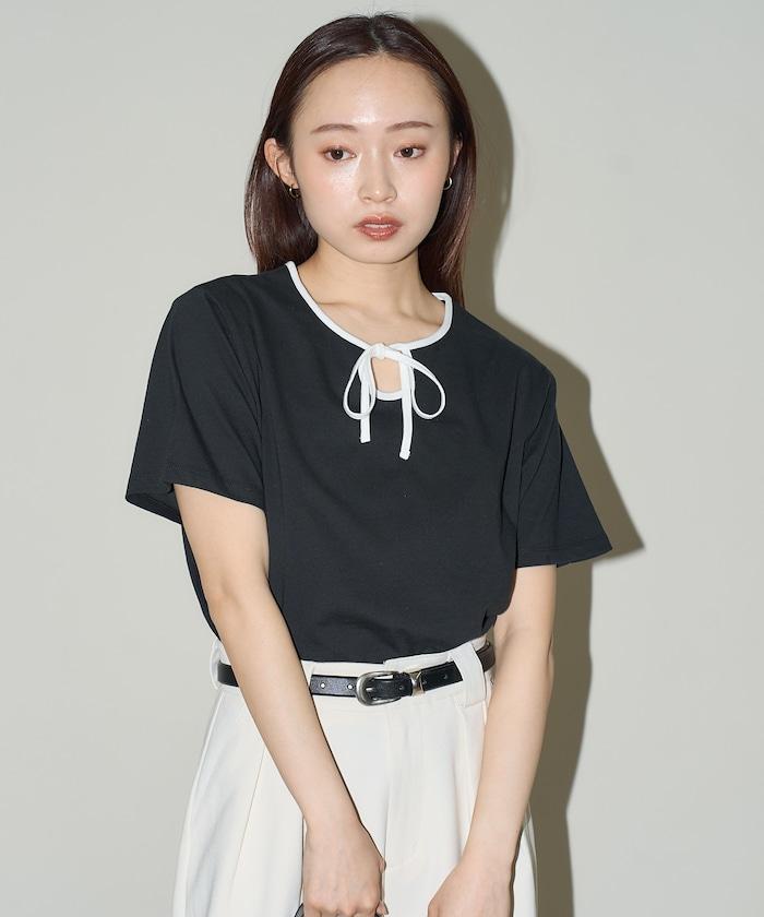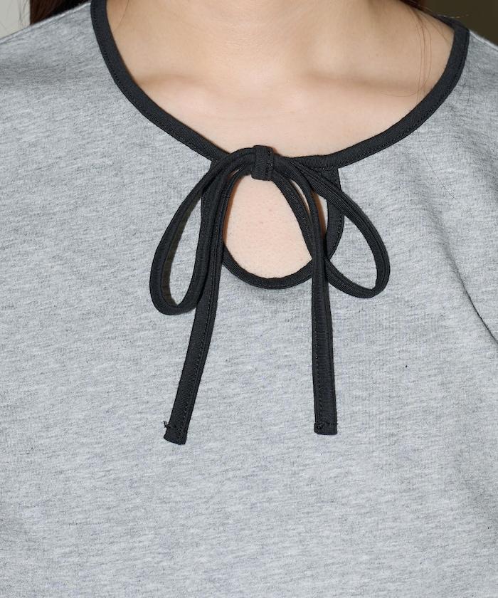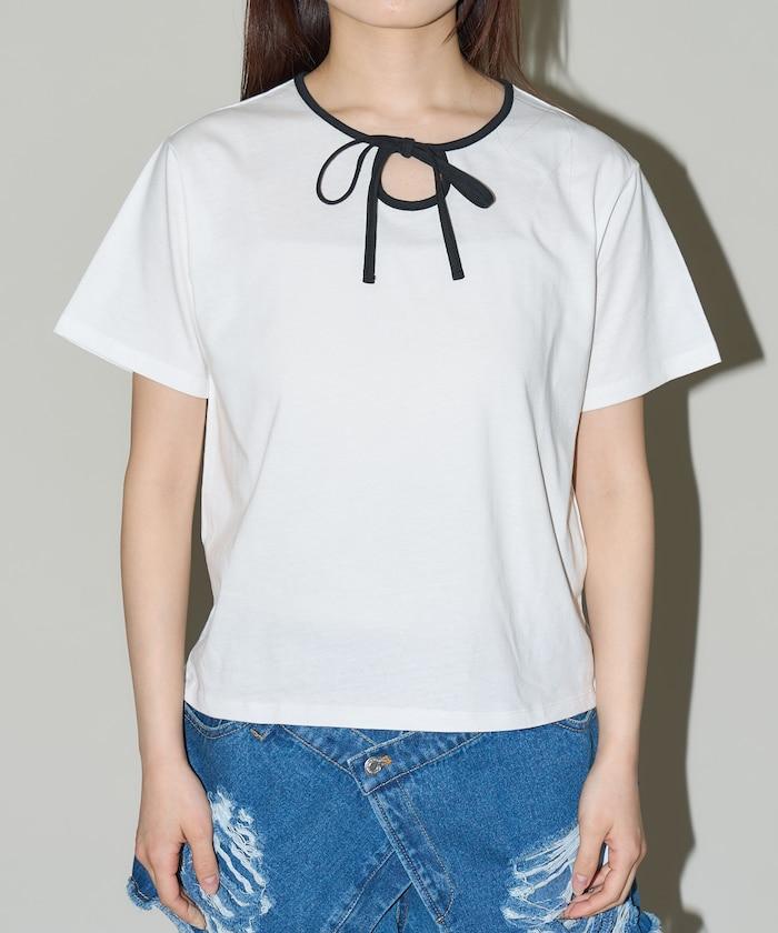 這款 T 恤的領子周圍有獨特的配色,這也是 Ringer T 的特色之一。該設計像蝴蝶結領帶一樣垂下穿著或用絲帶繫住時都非常可愛,為休閒造型增添了一絲甜美。