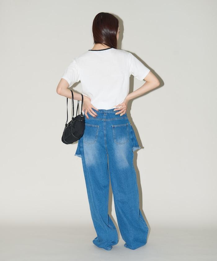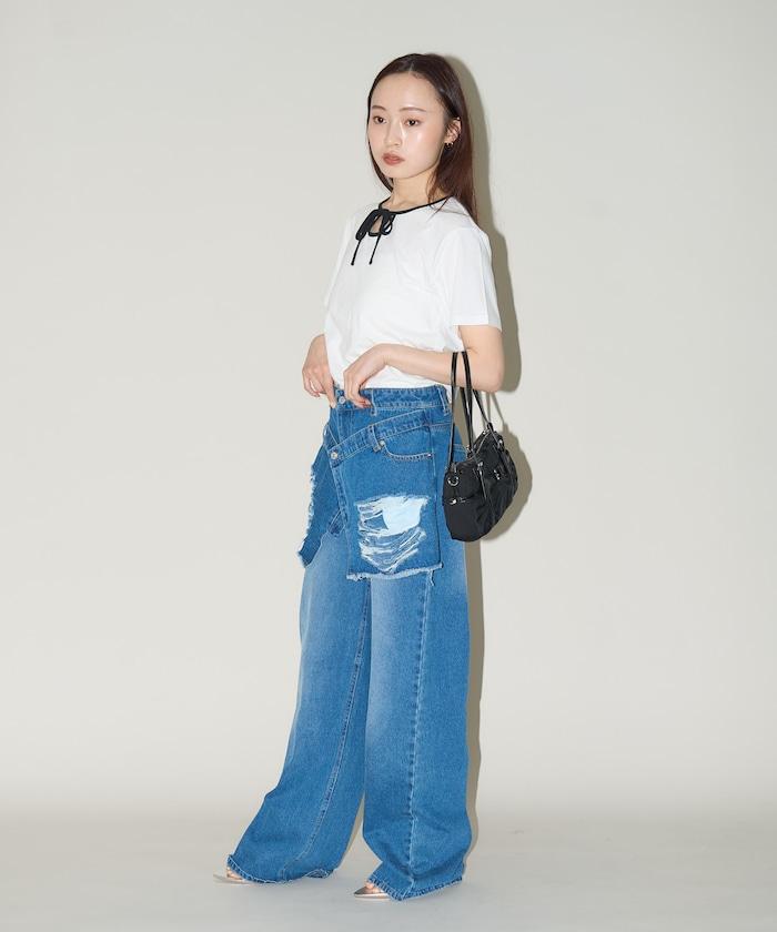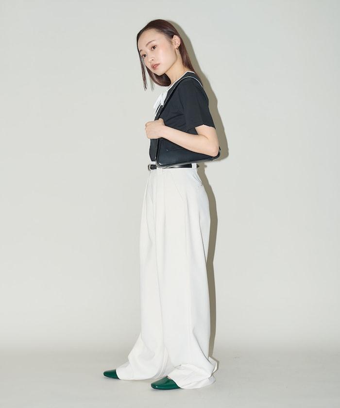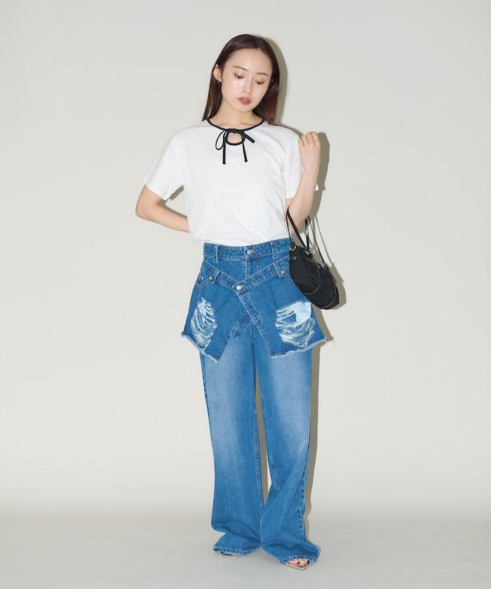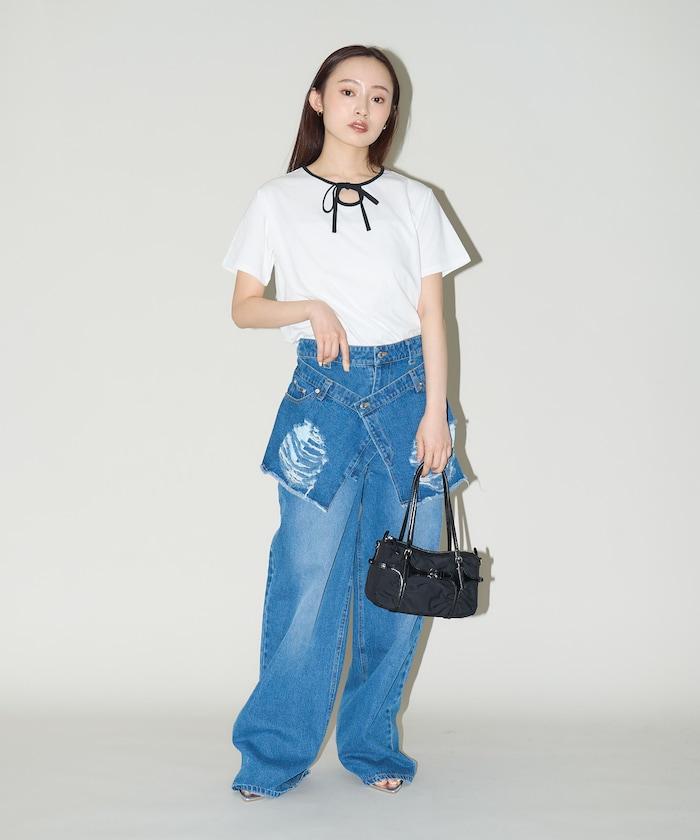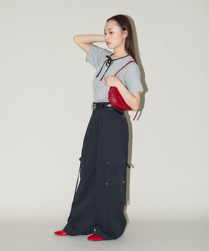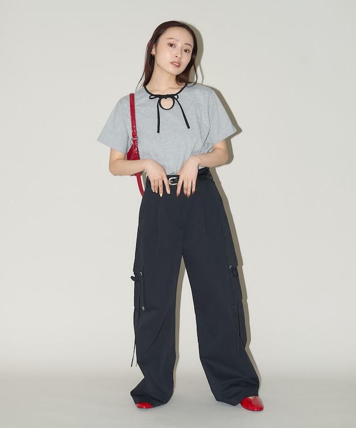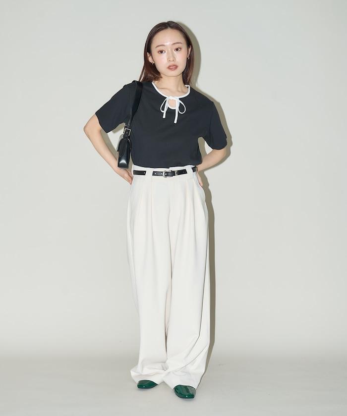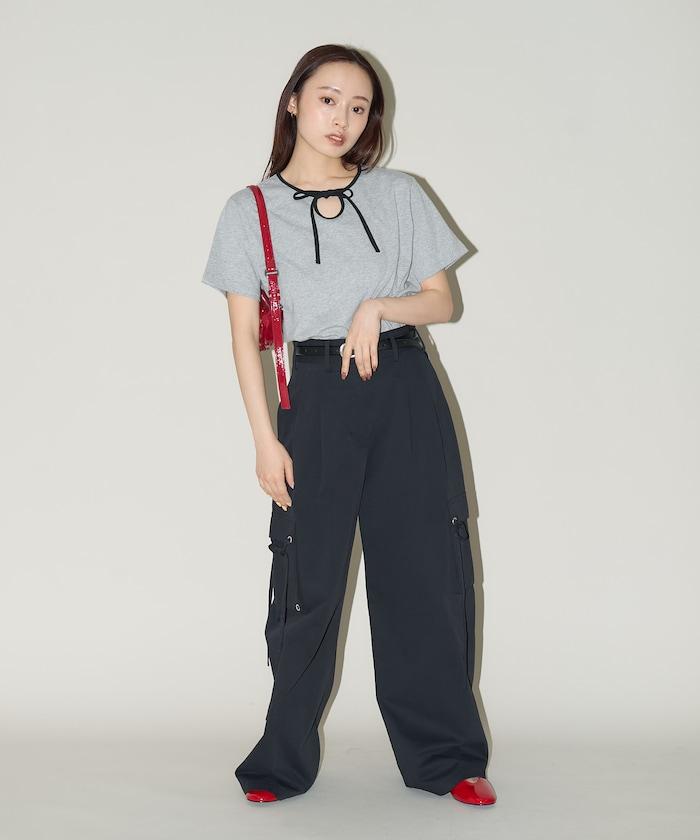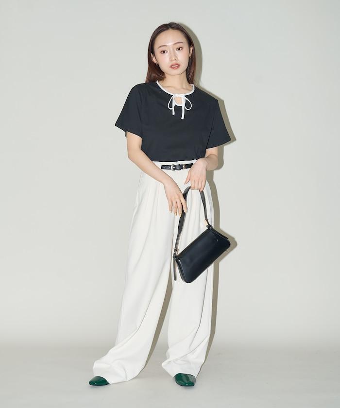 這款 T 恤的領子周圍有獨特的配色,這也是 Ringer T 的特色之一。該設計像蝴蝶結領帶一樣垂下穿著或用絲帶繫住時都非常可愛,為休閒造型增添了一絲甜美。