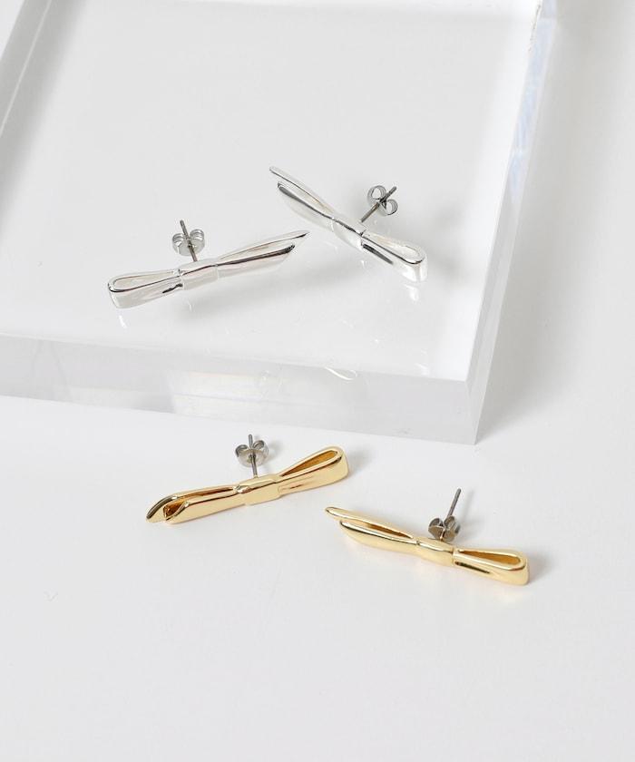 蝴蝶結圖案耳環 / 圓釘耳環 / 雙耳用