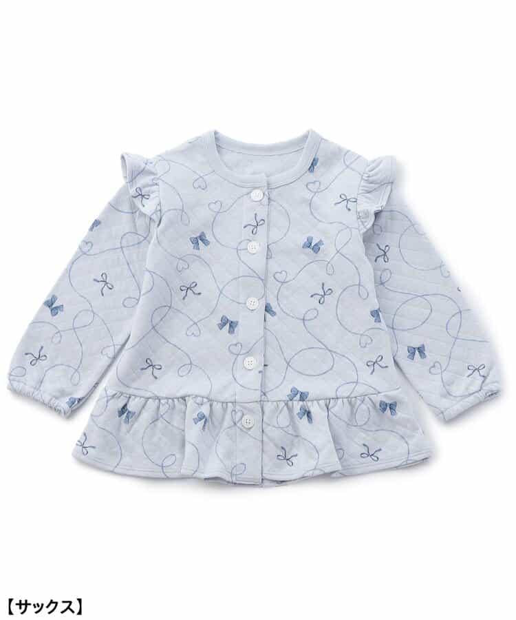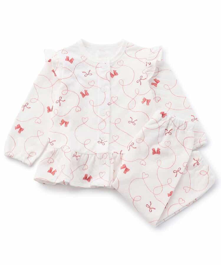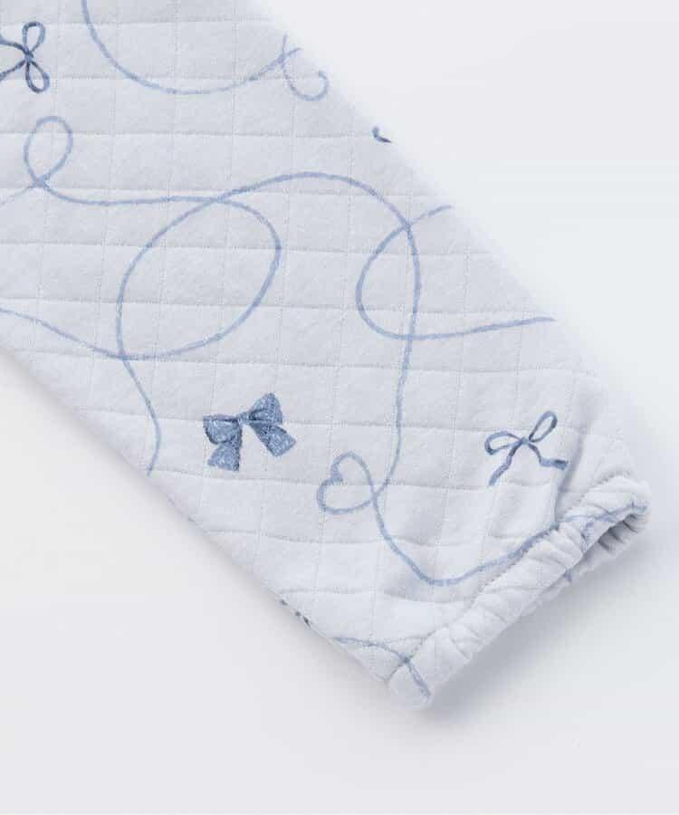 蝴蝶結圖案針織絎縫荷葉邊家居服