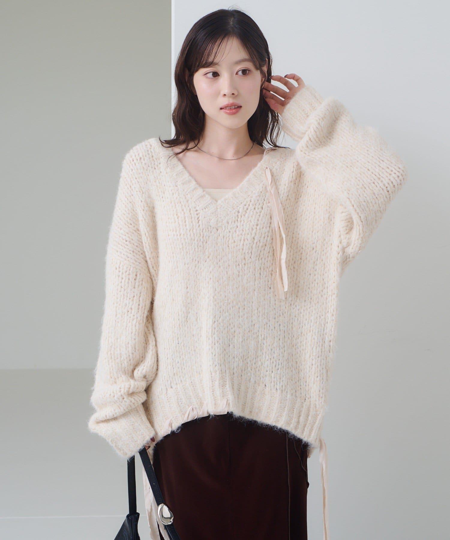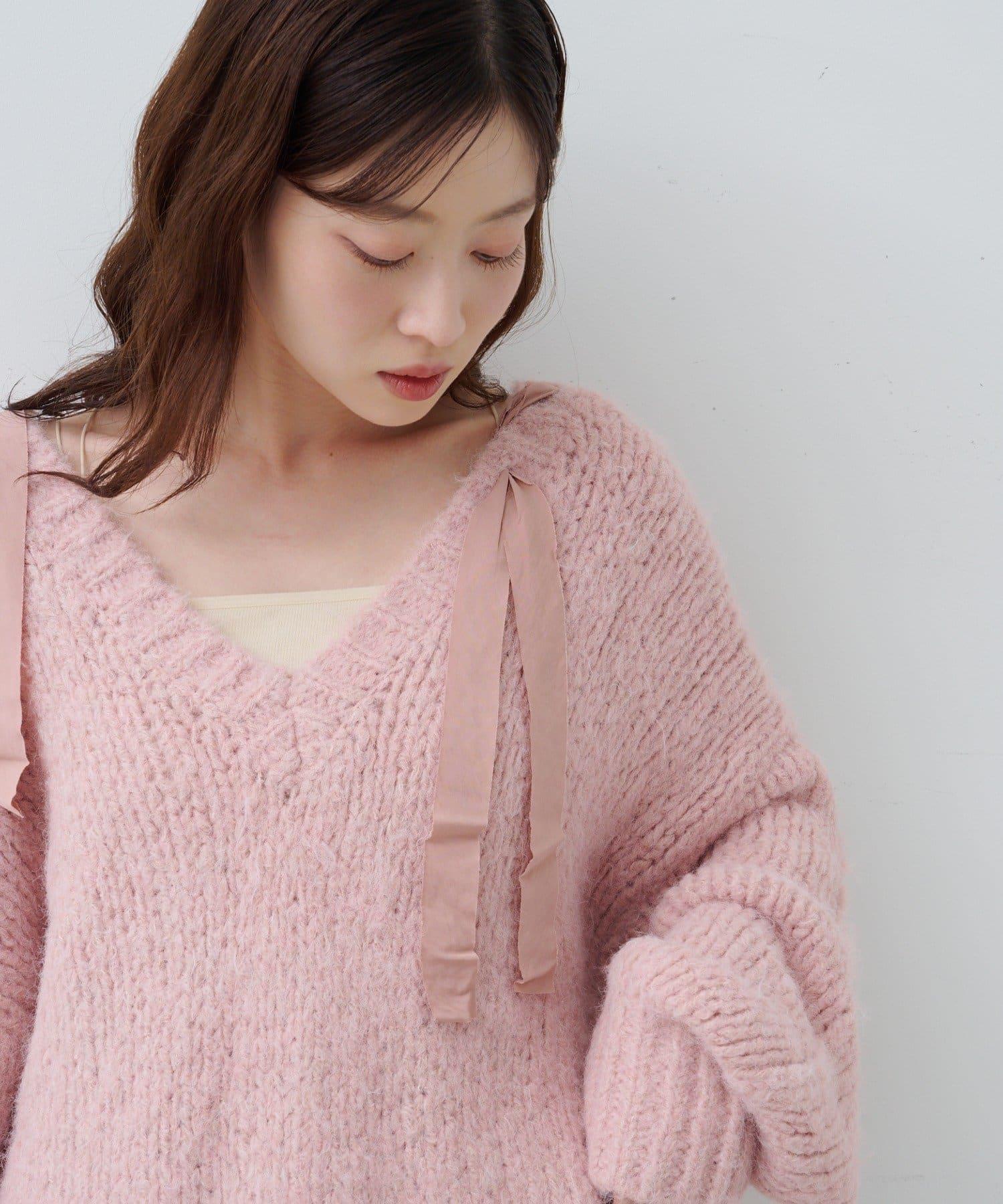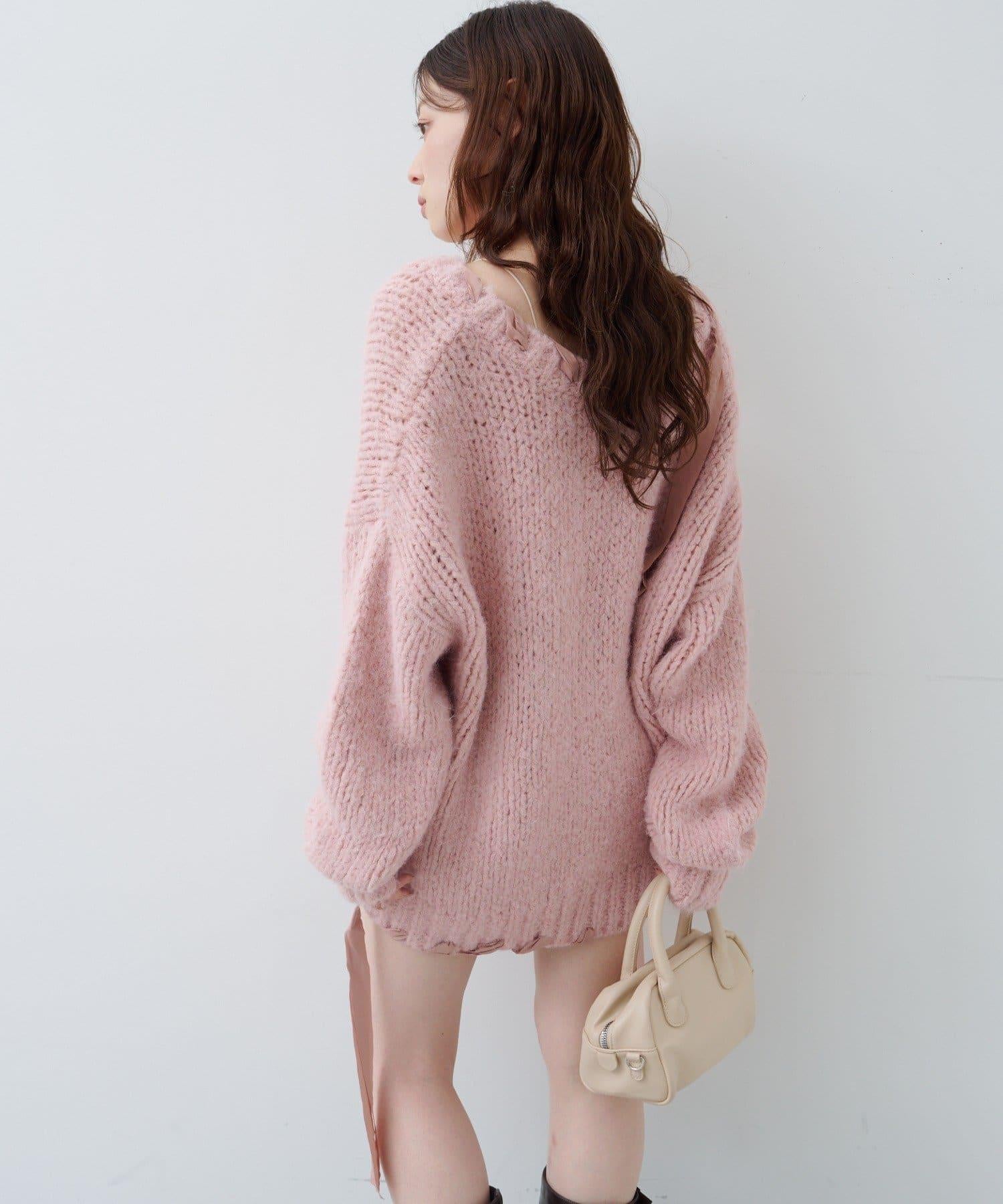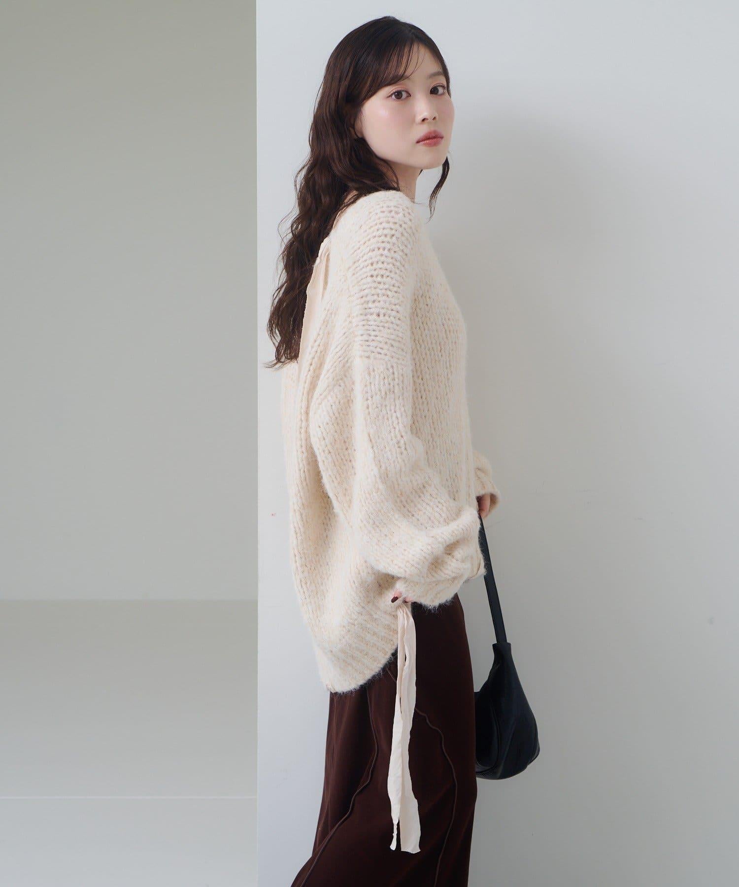 肩部和下襬的絲帶裝飾為寬鬆的針織面料增添了女性氣息。