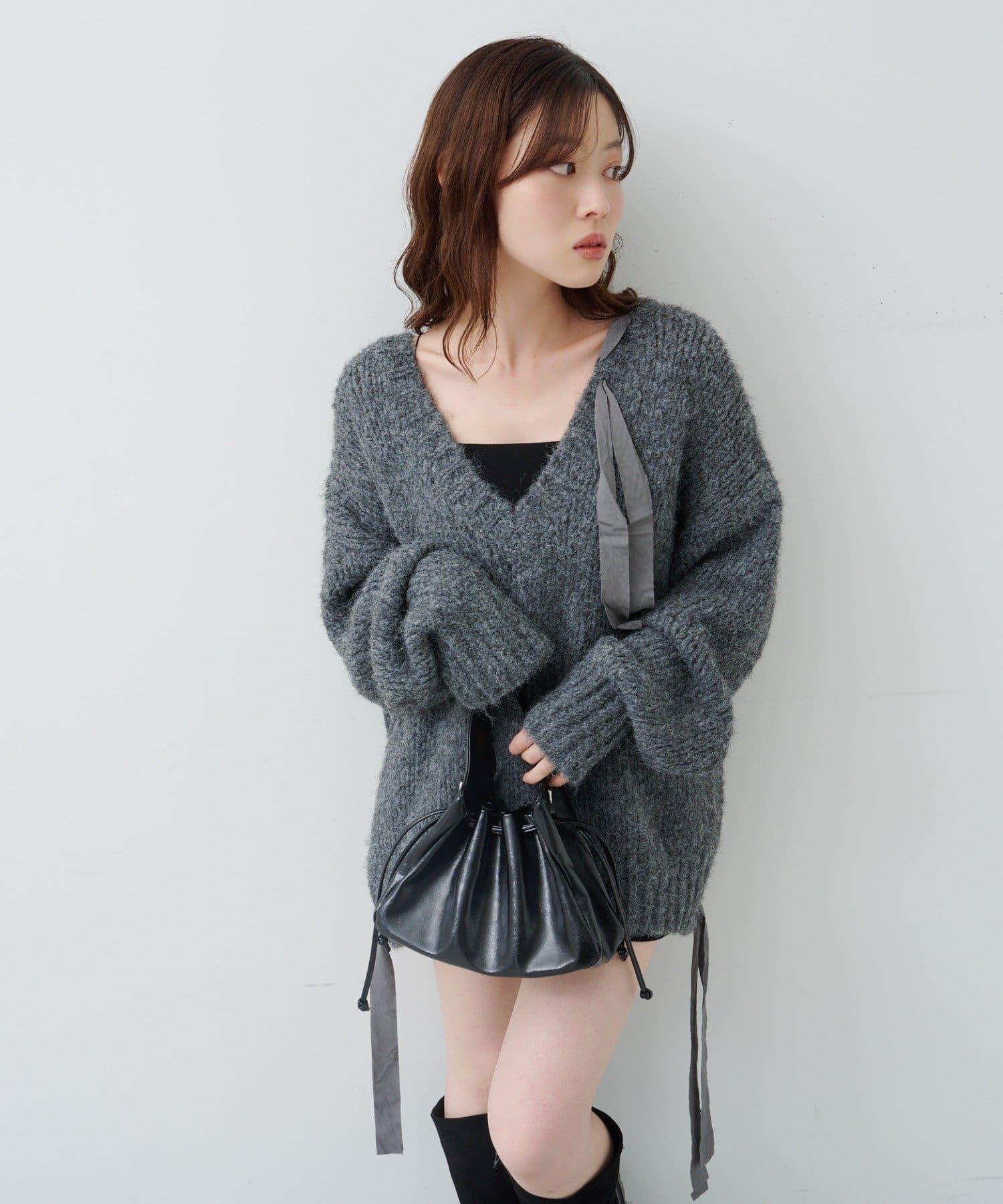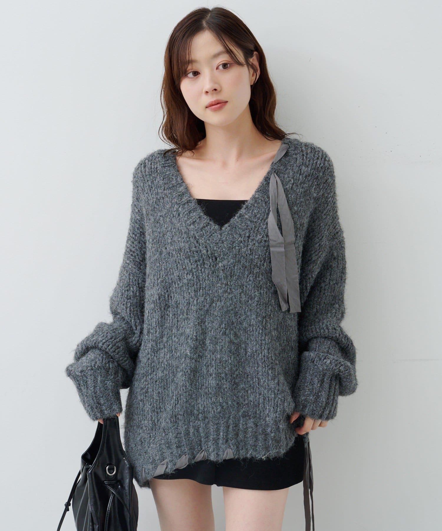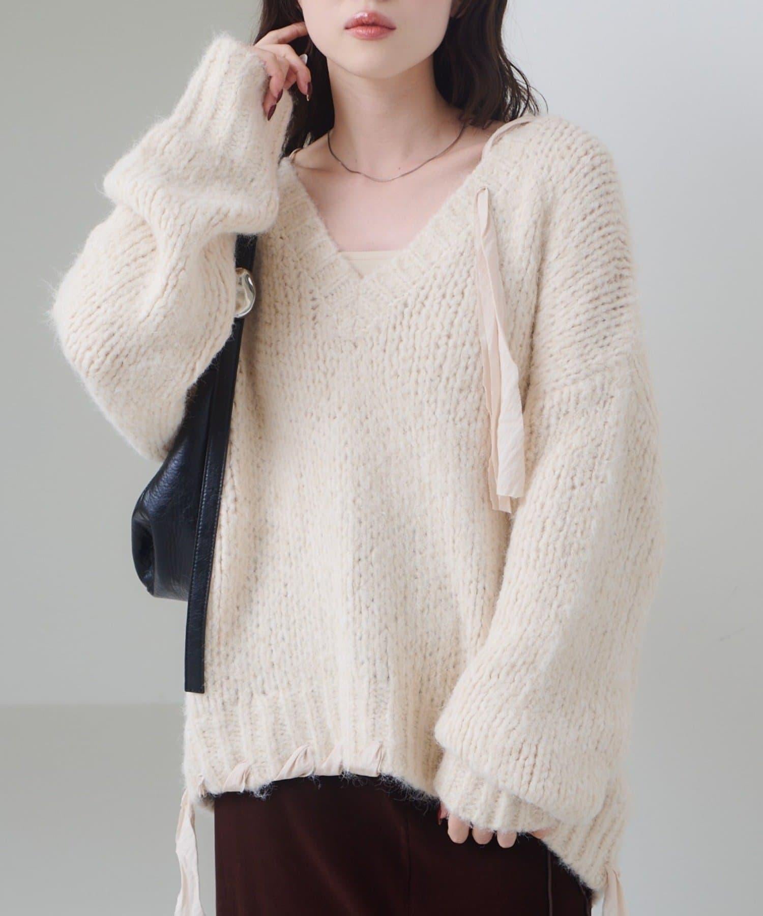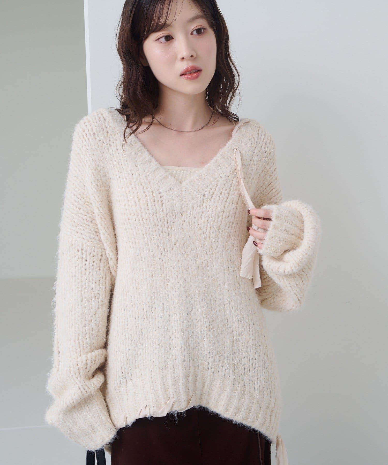 肩部和下襬的絲帶裝飾為寬鬆的針織面料增添了女性氣息。