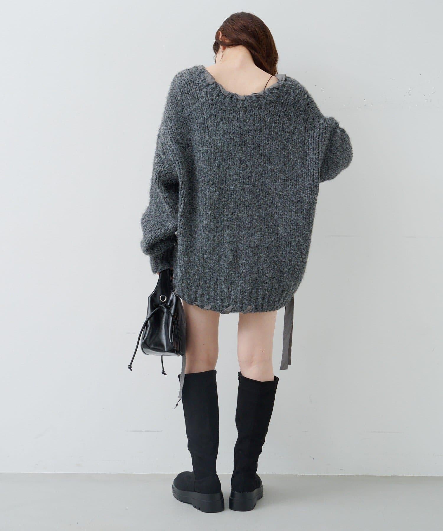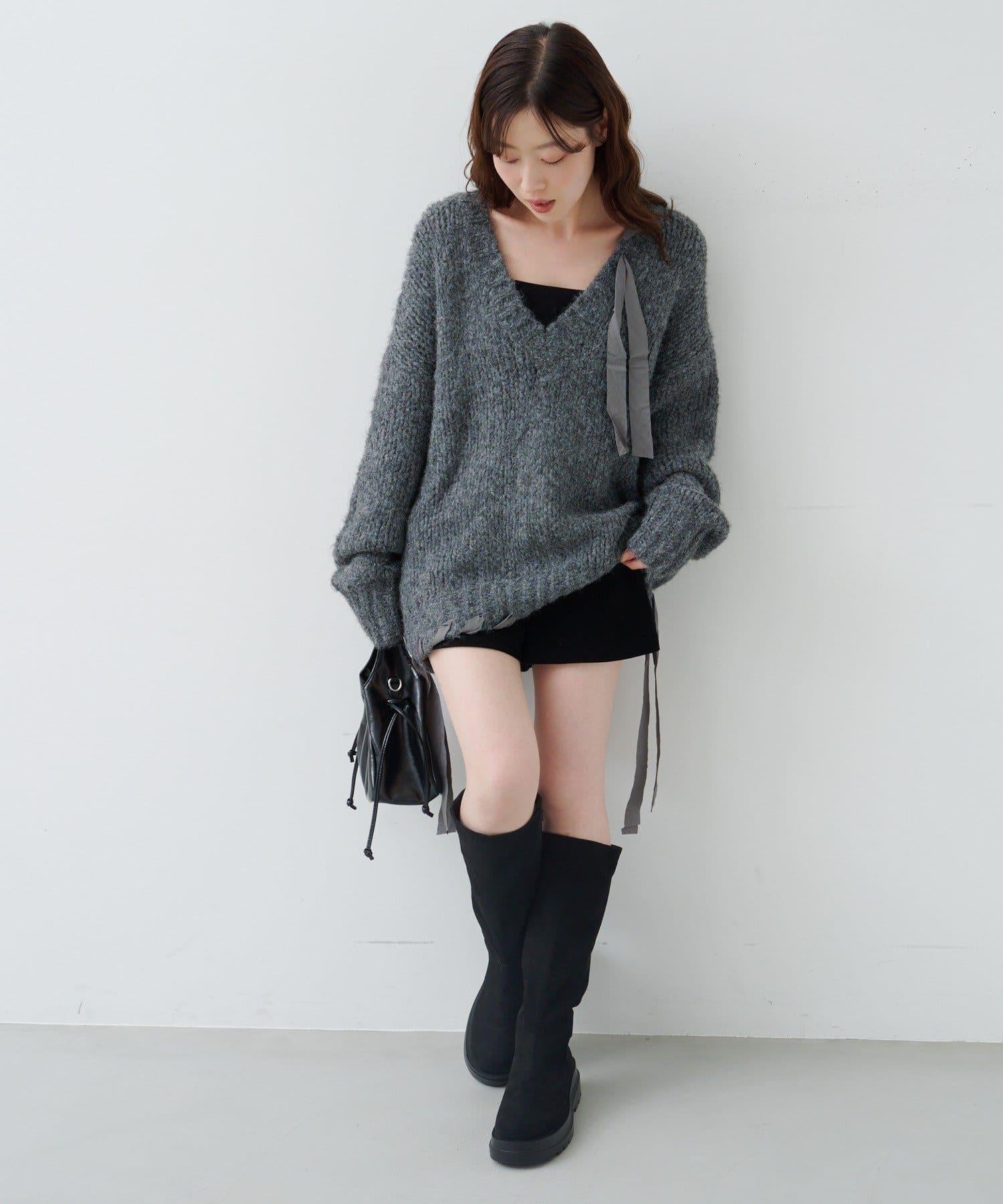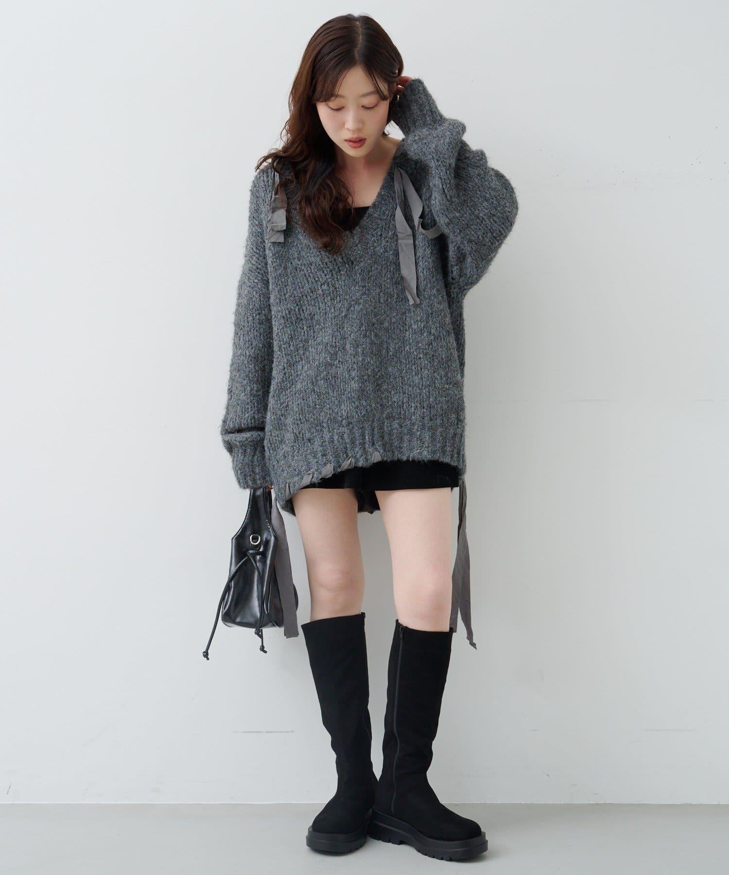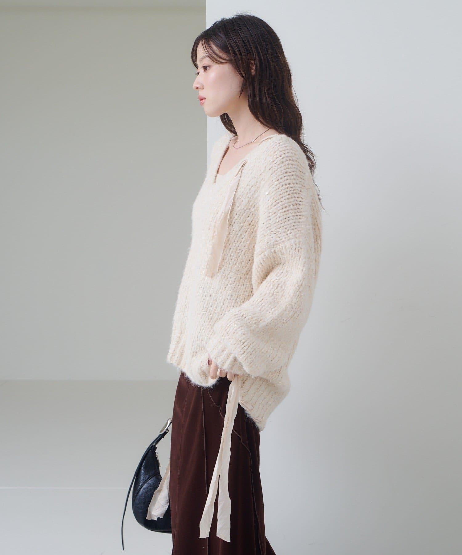 肩部和下襬的絲帶裝飾為寬鬆的針織面料增添了女性氣息。