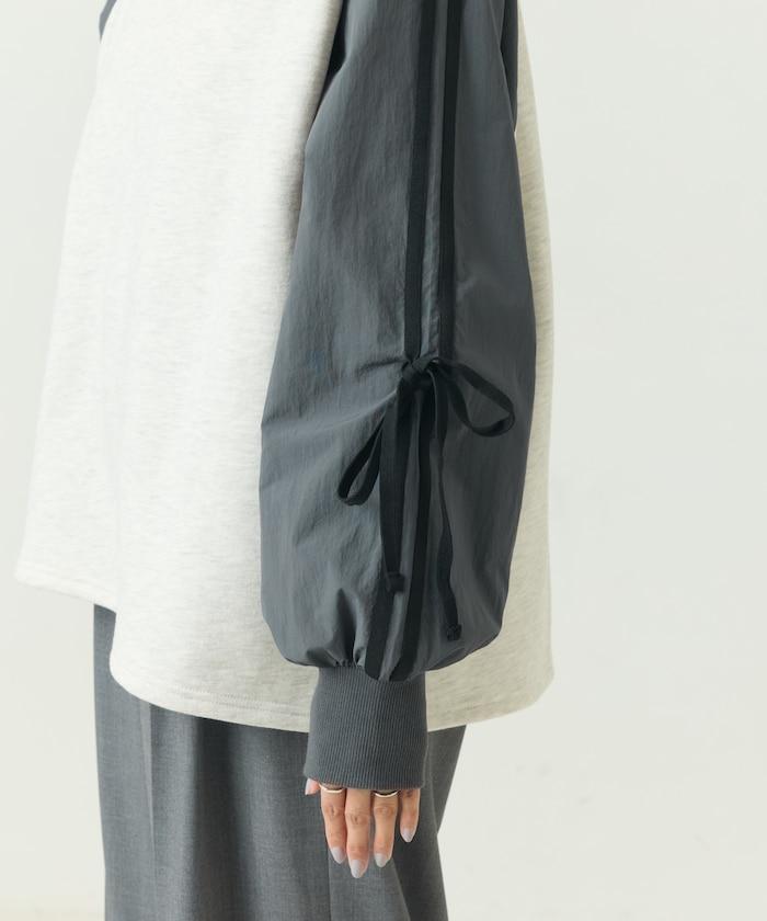 蝴蝶結拼接異材質拉鍊拉桿拉鍊拉鍊套頭衫