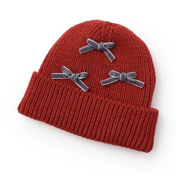 絲帶為這款休閒針織帽增添了甜美的氣息。