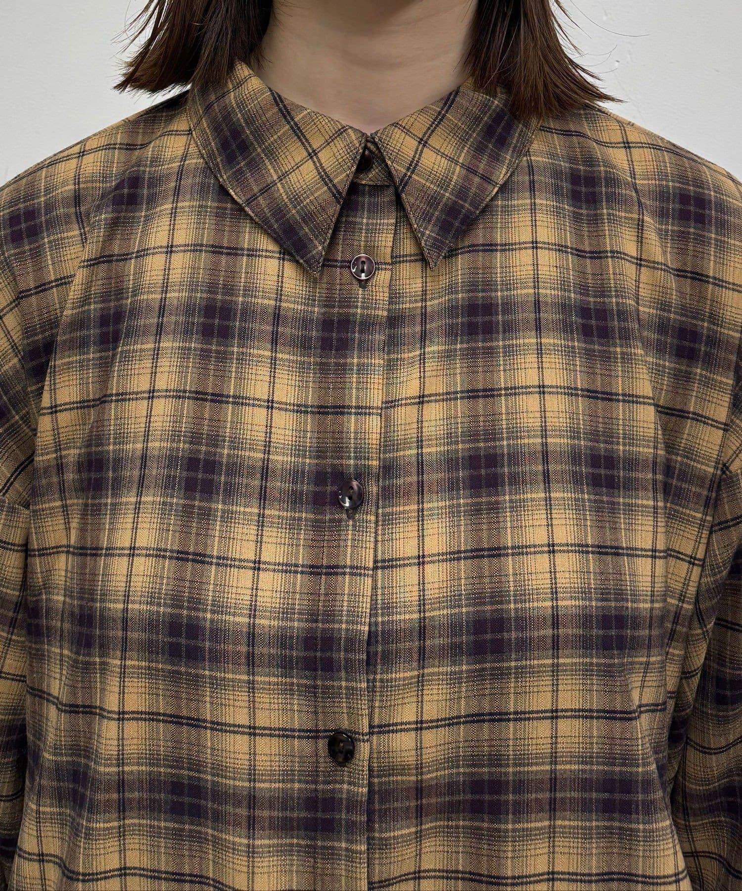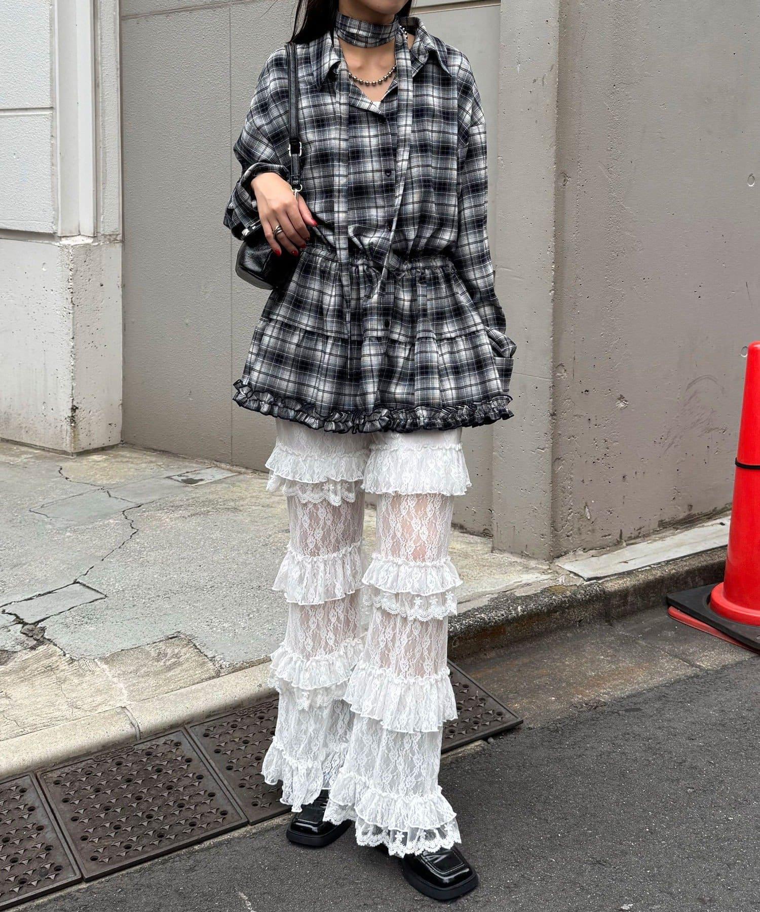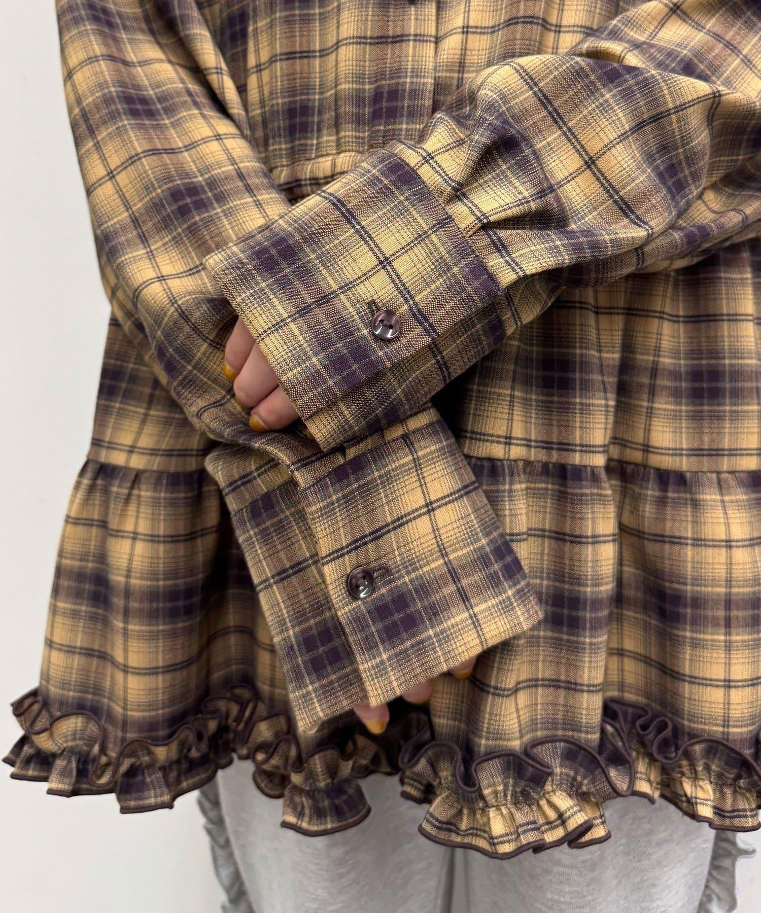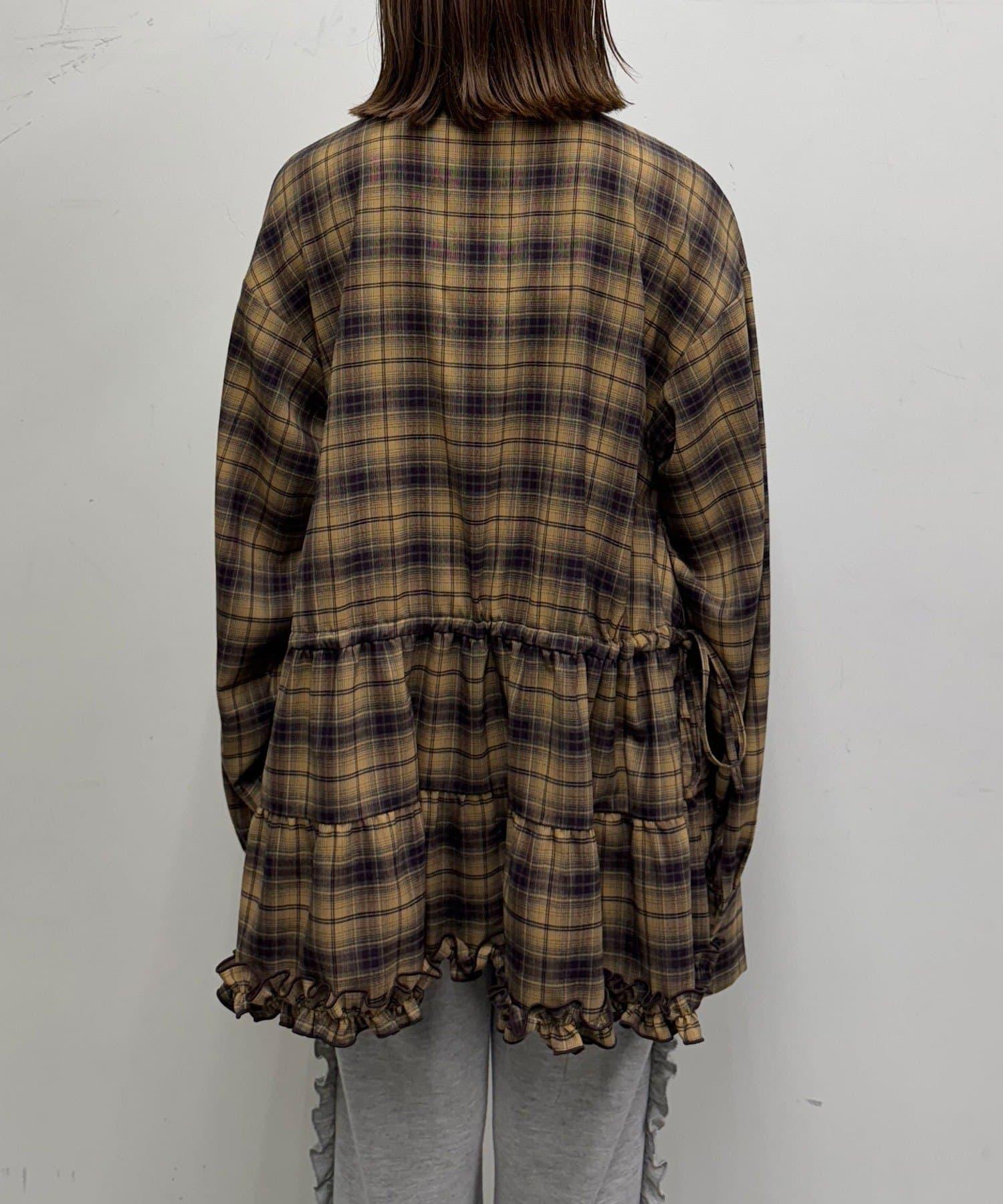 蝴蝶結領下襬層疊格子襯衫連衣裙