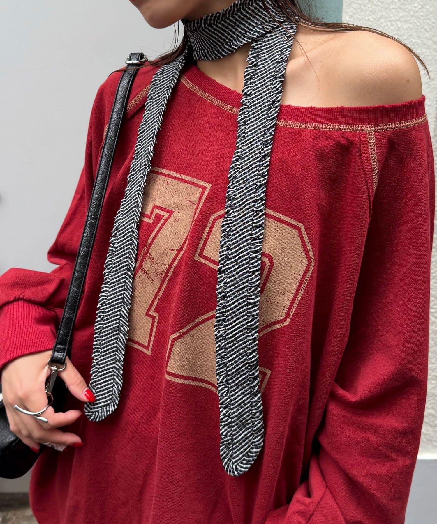 褶皺領帶可以搭配針織衫或羊毛衫,纏繞在領圈上。