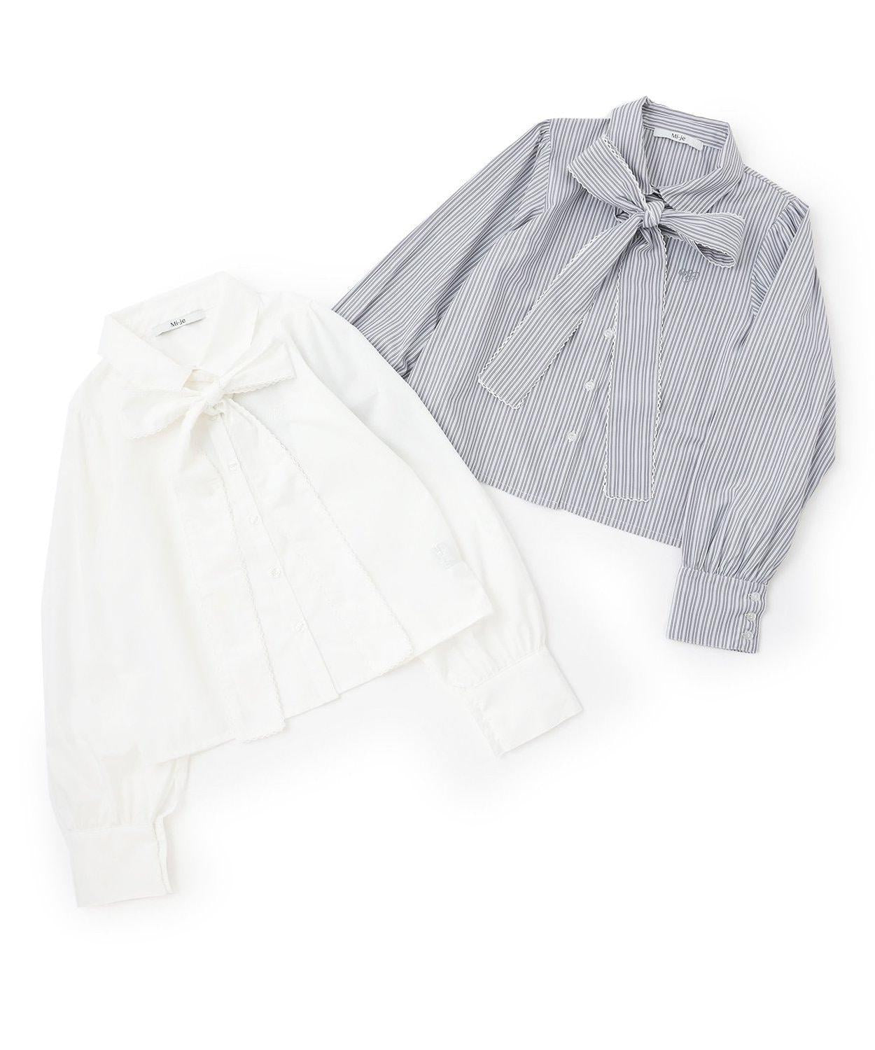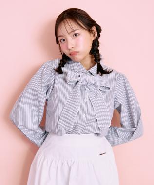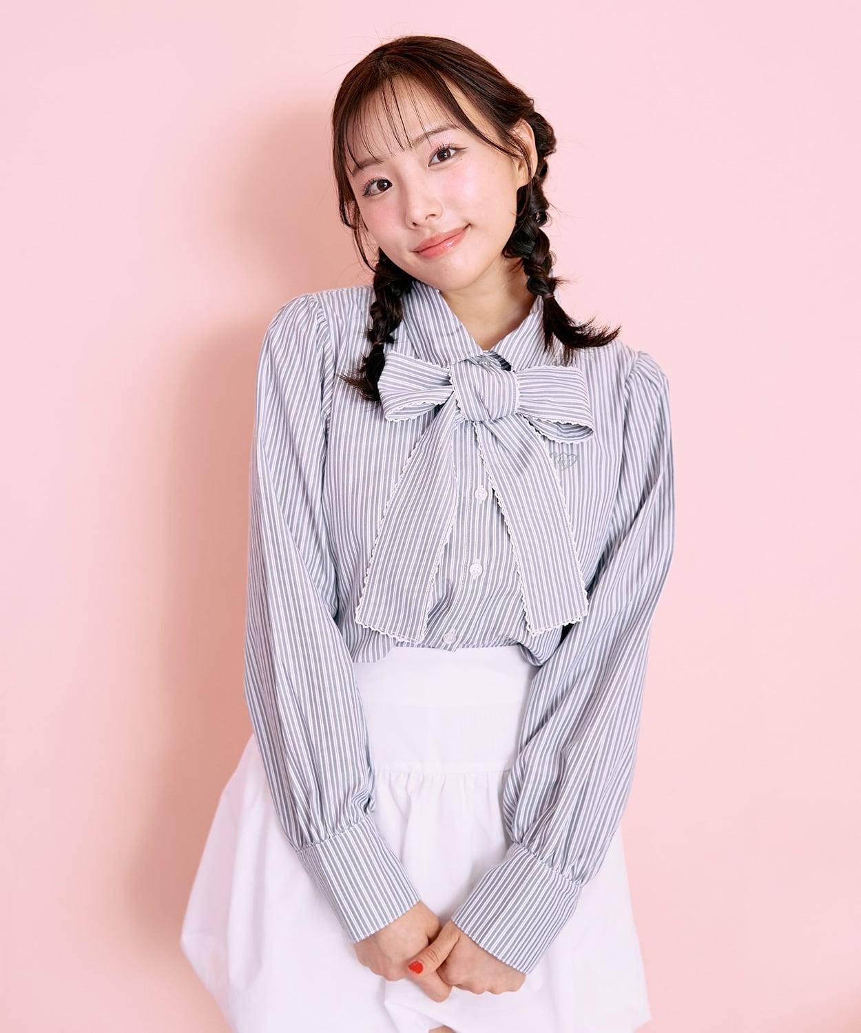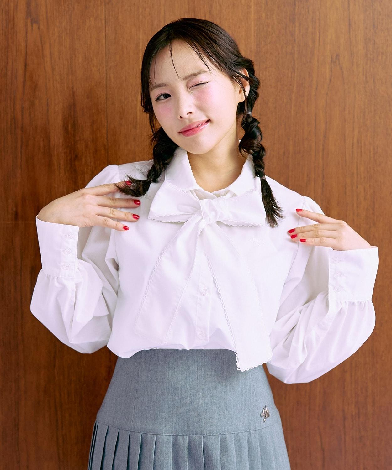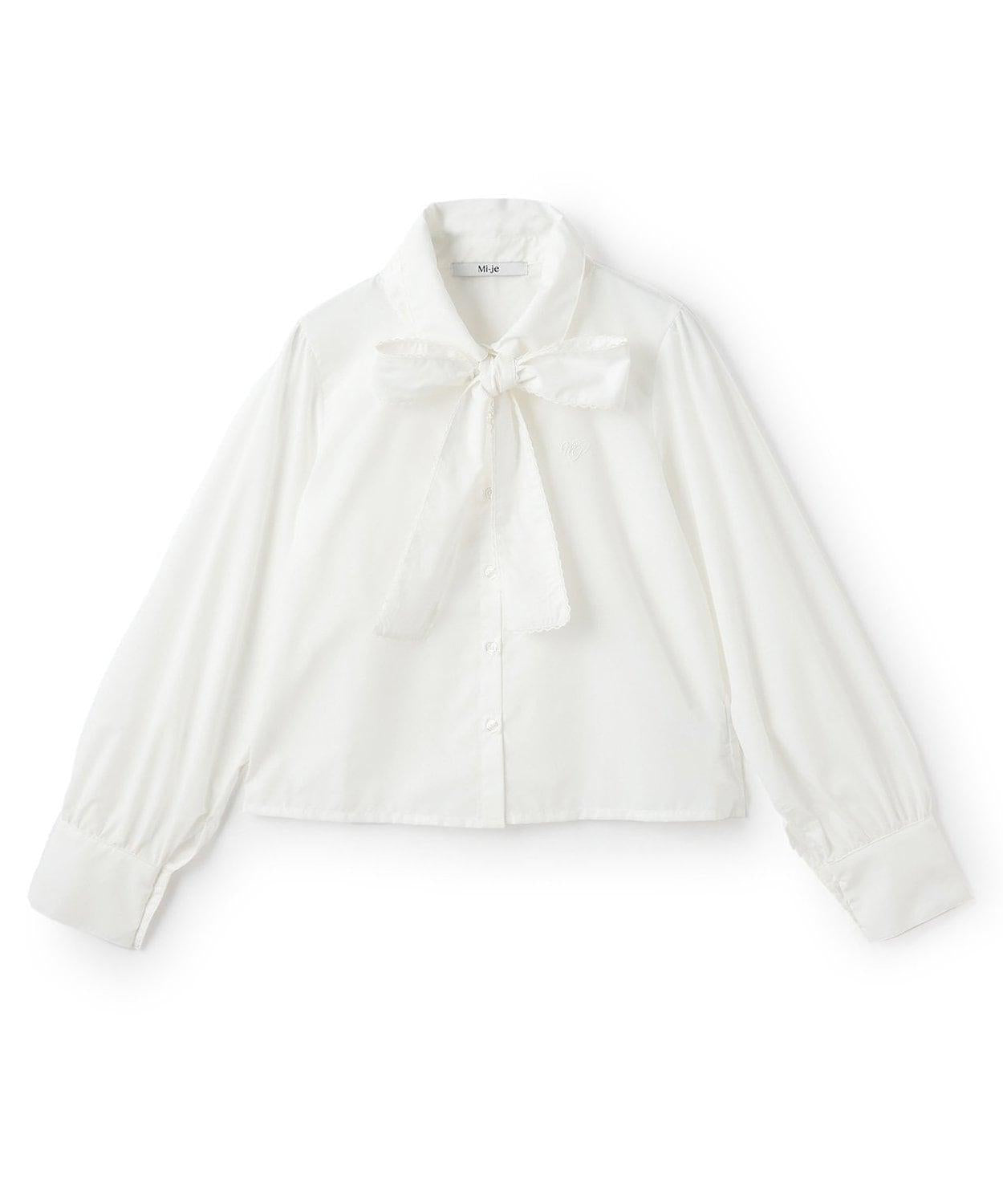 蝴蝶結領標誌刺繡襯衫【韓國時尚】