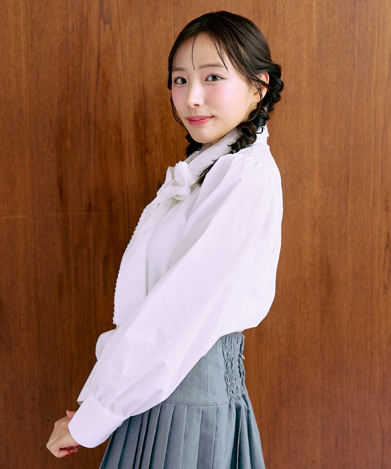 蝴蝶結領結襯衫,配皮孔蕾絲