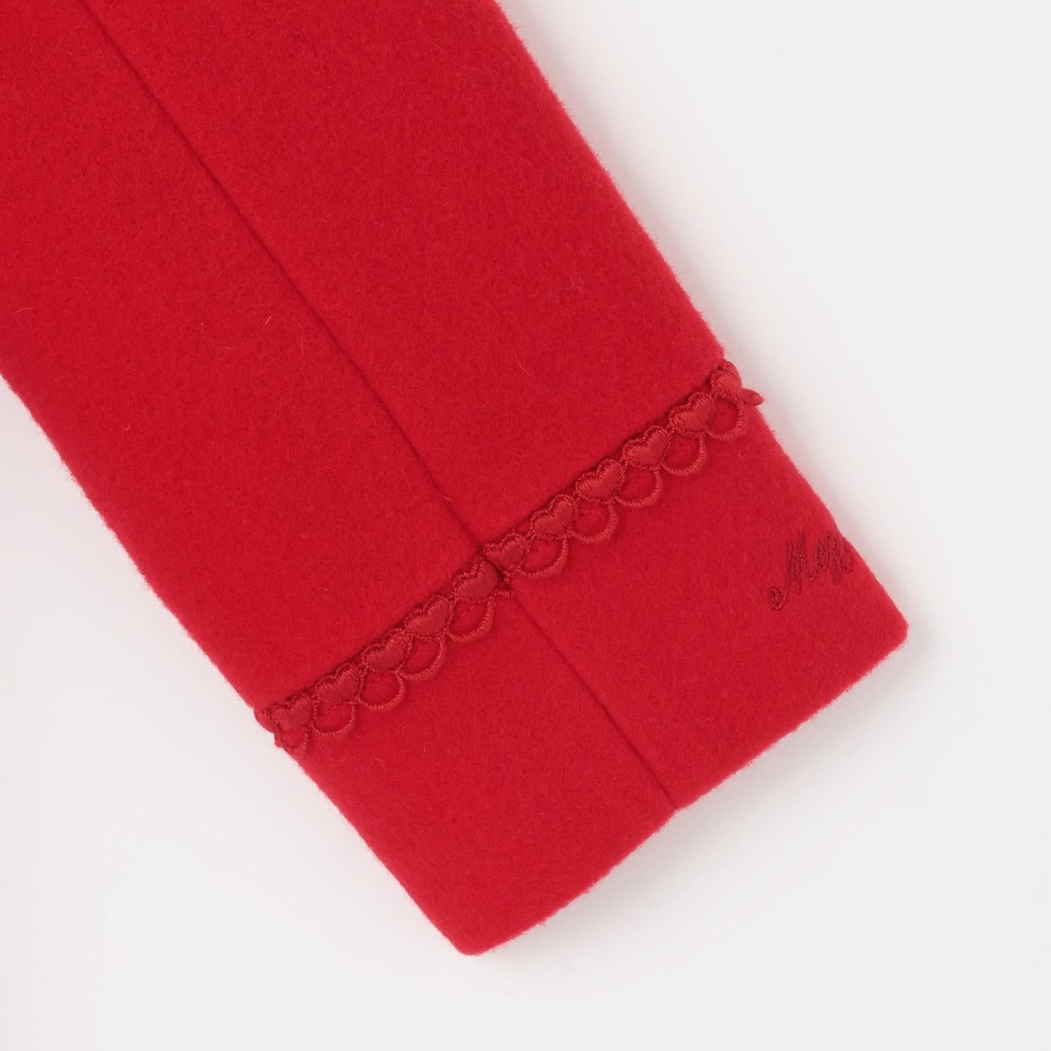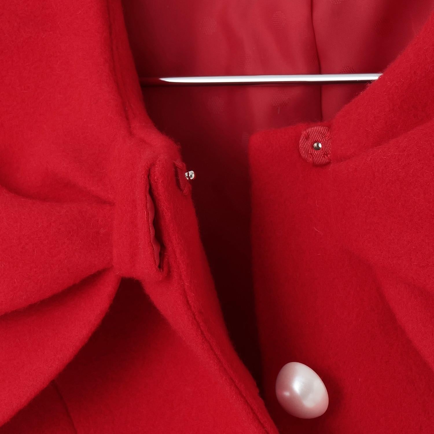 羊毛大衣,衣領採用大膽的緞帶設計。