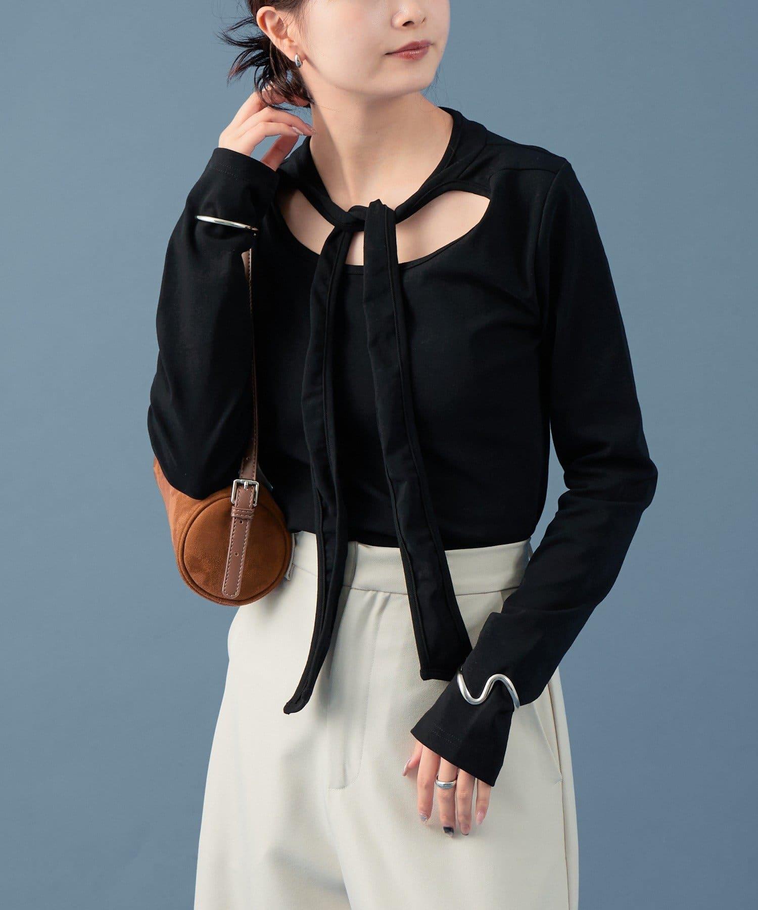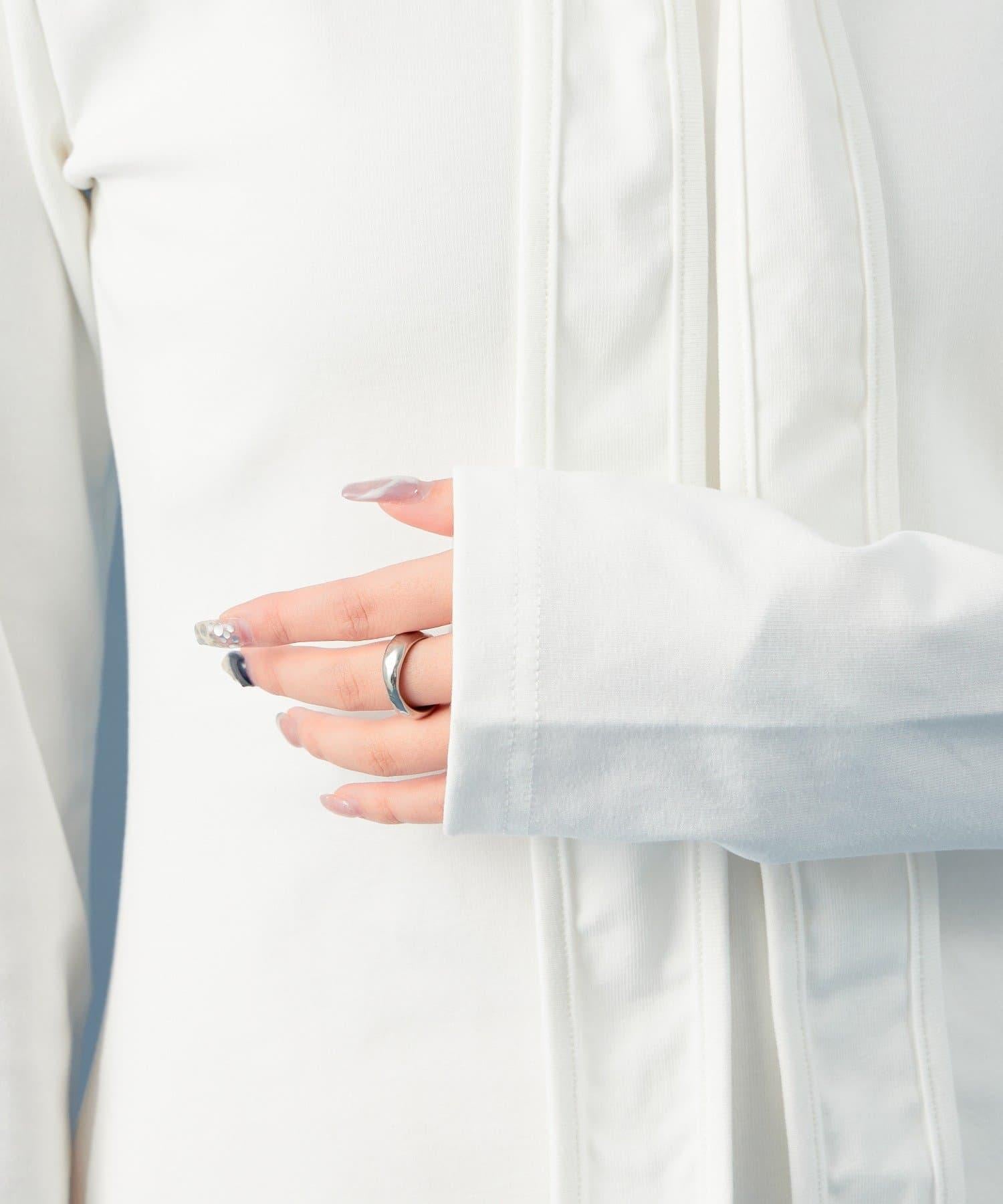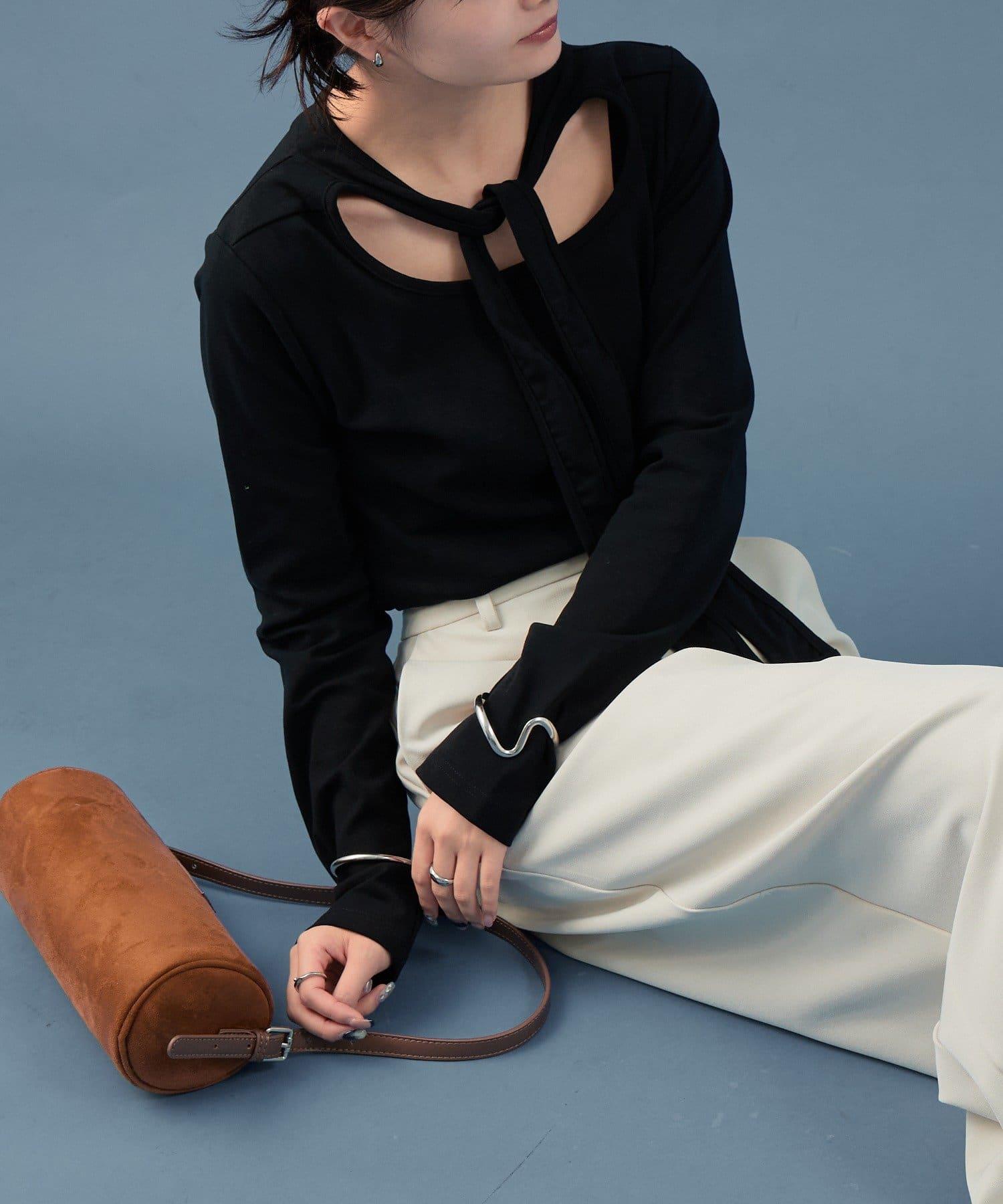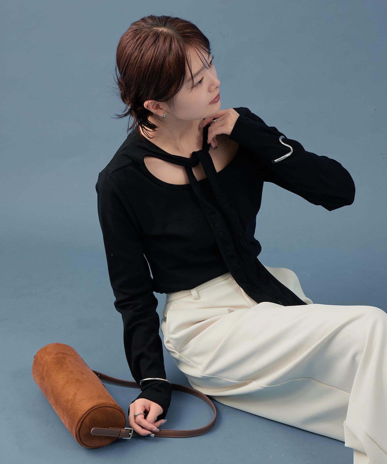 裁剪縫製的面料具有圓潤的開口,也能表現出成熟的女性魅力。這是一款設計感特別的帥氣單品。
