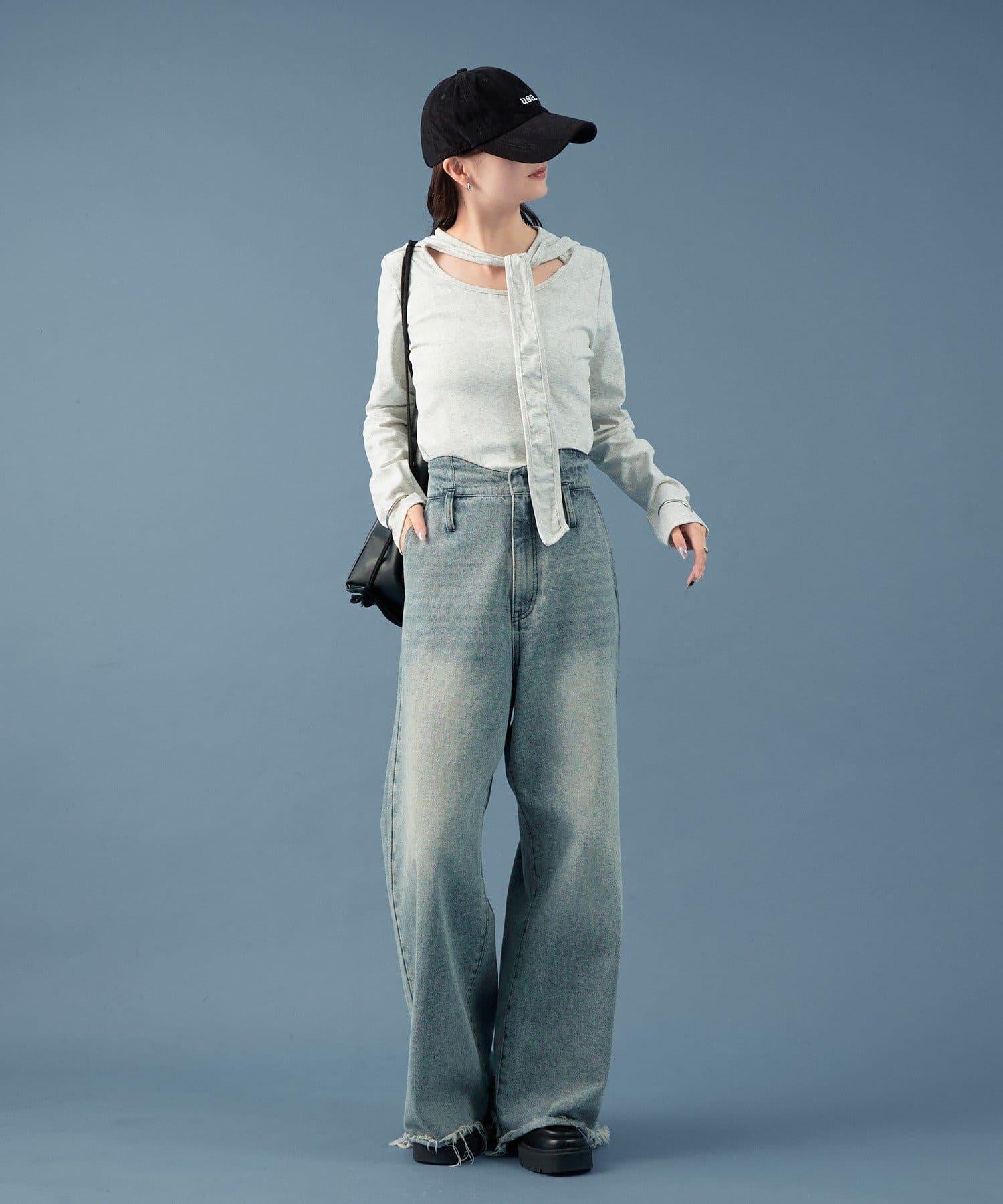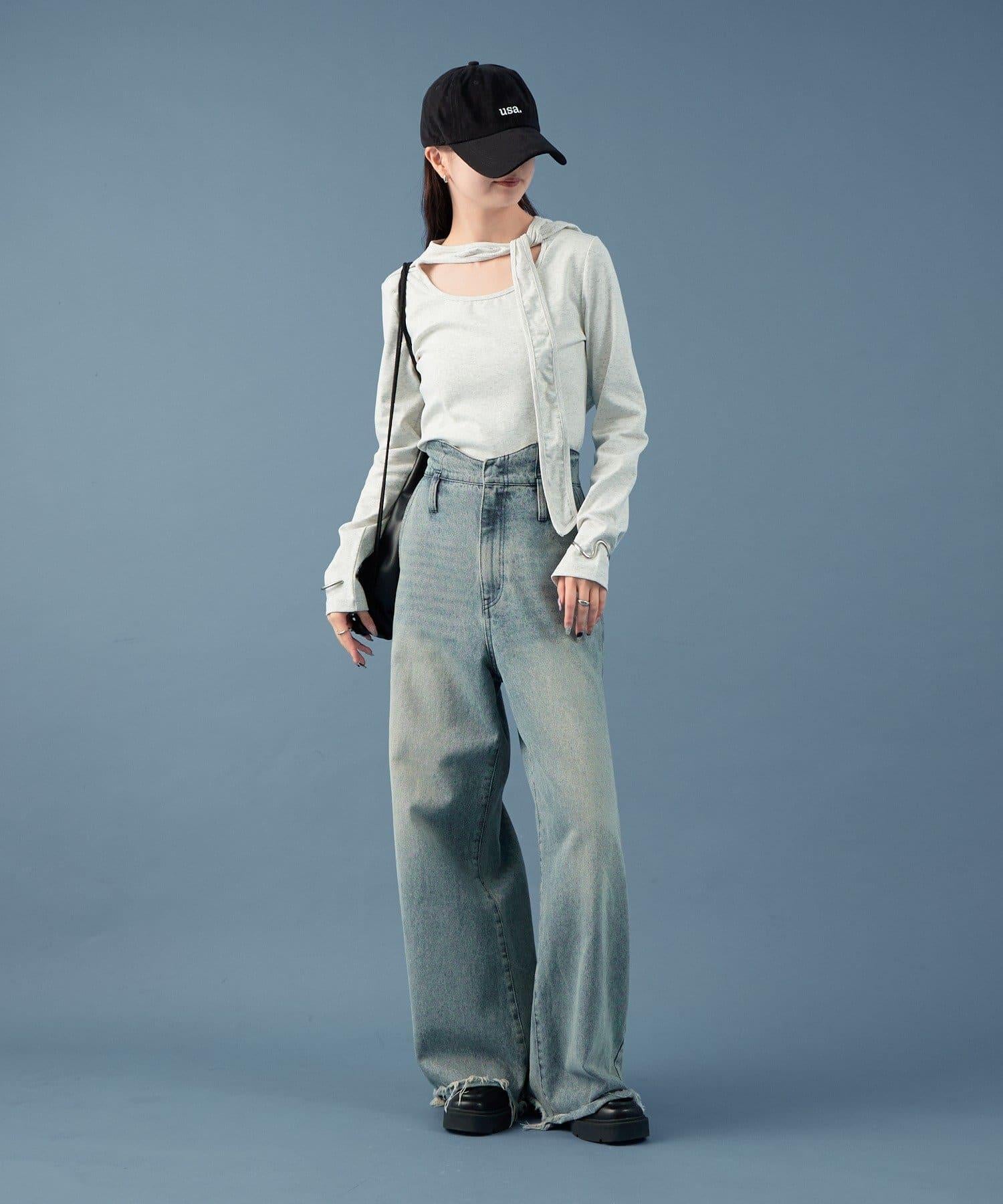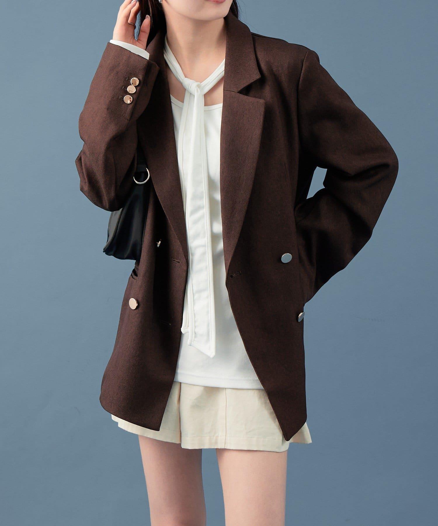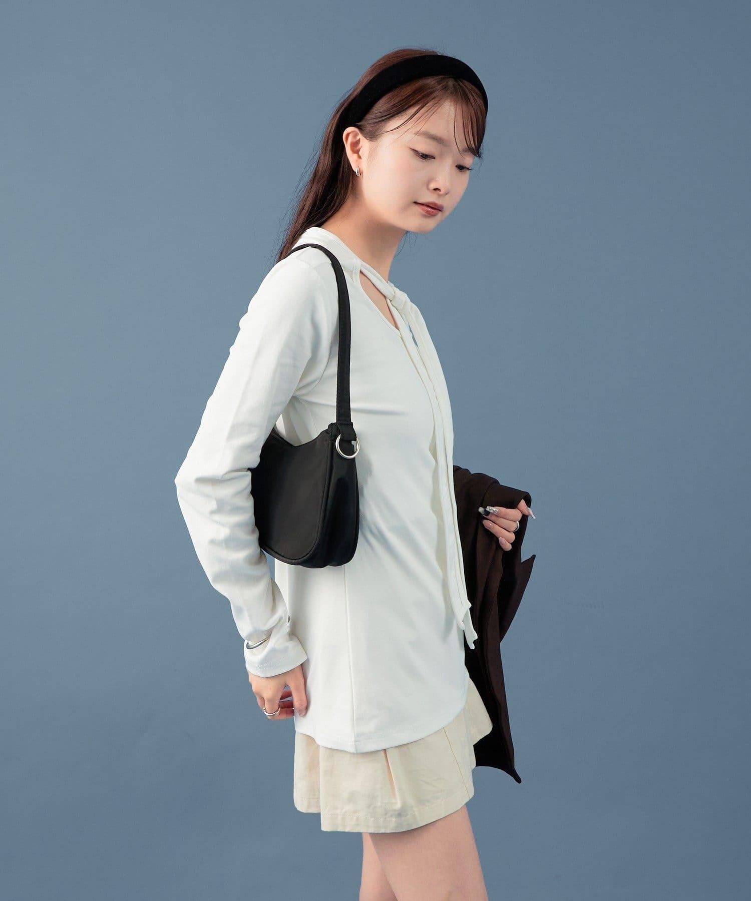 裁剪縫製的面料具有圓潤的開口,也能表現出成熟的女性魅力。這是一款設計感特別的帥氣單品。