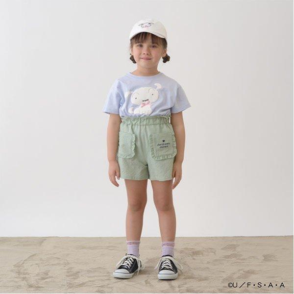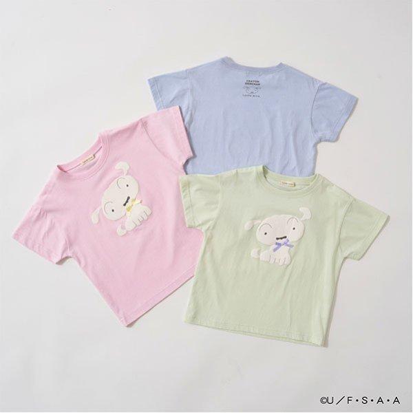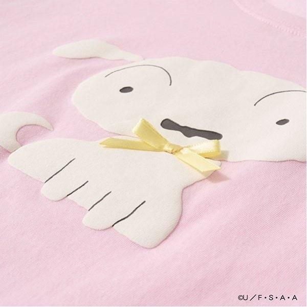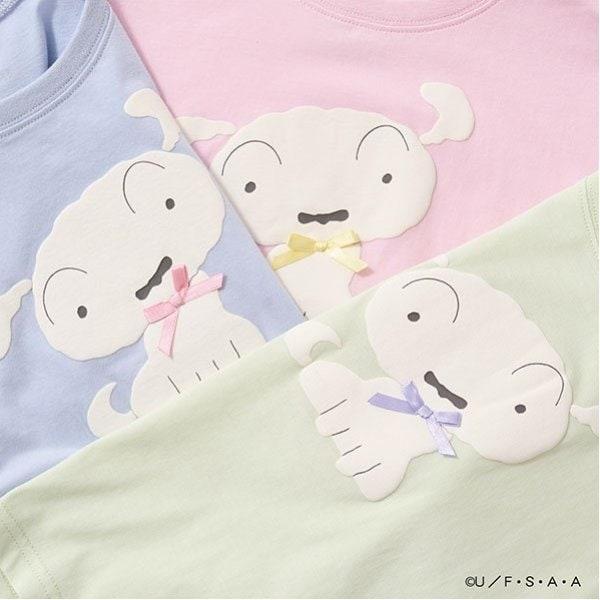這款印花 T 恤出自人氣動畫片《蠟筆小新》,主人公是新之助的愛犬志郎!白犬以質地柔軟的泡沫印花表現出來,脖子上的緞帶增添了少女的氣息。