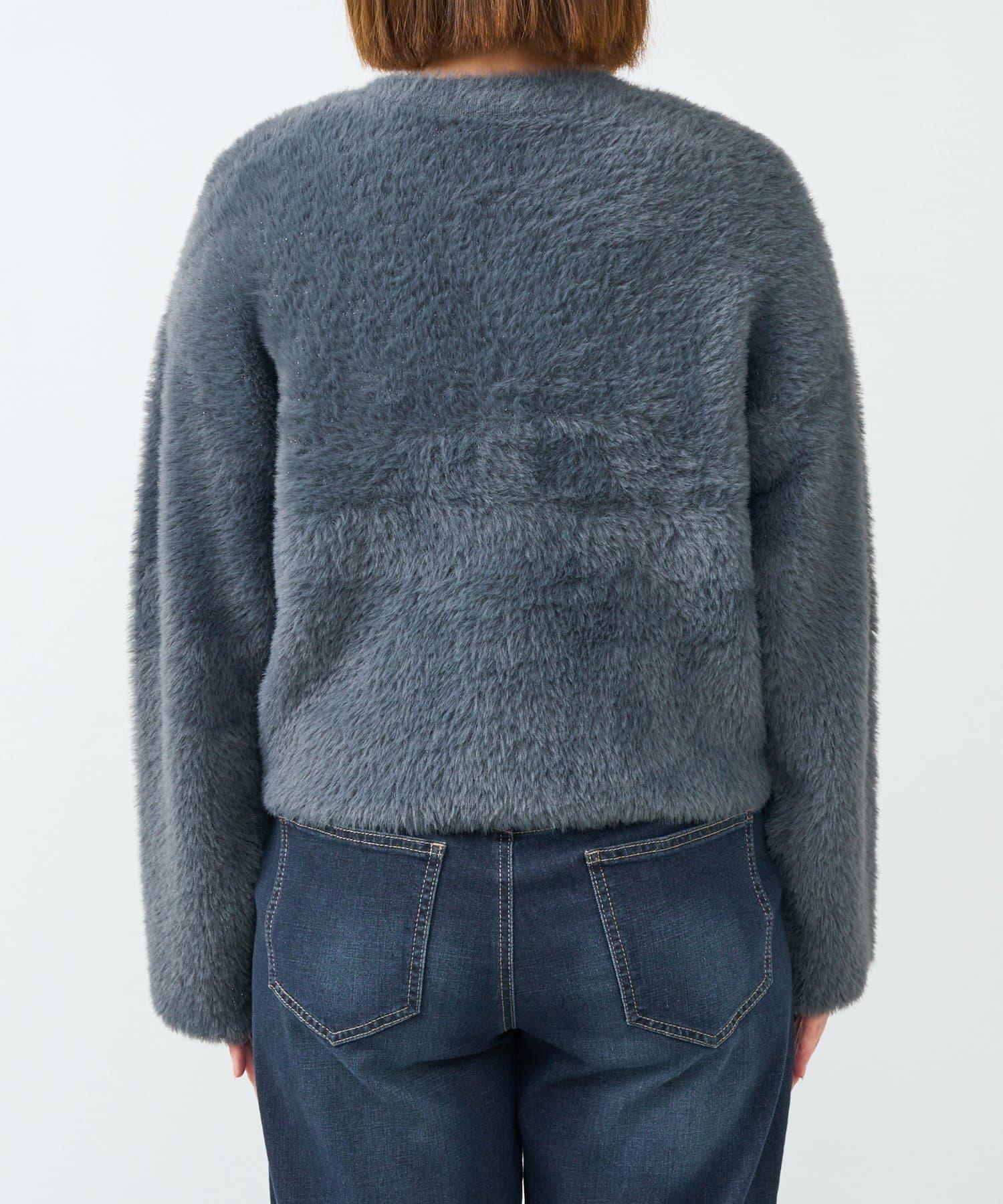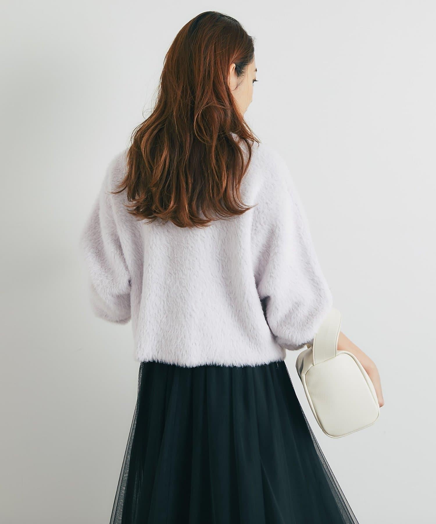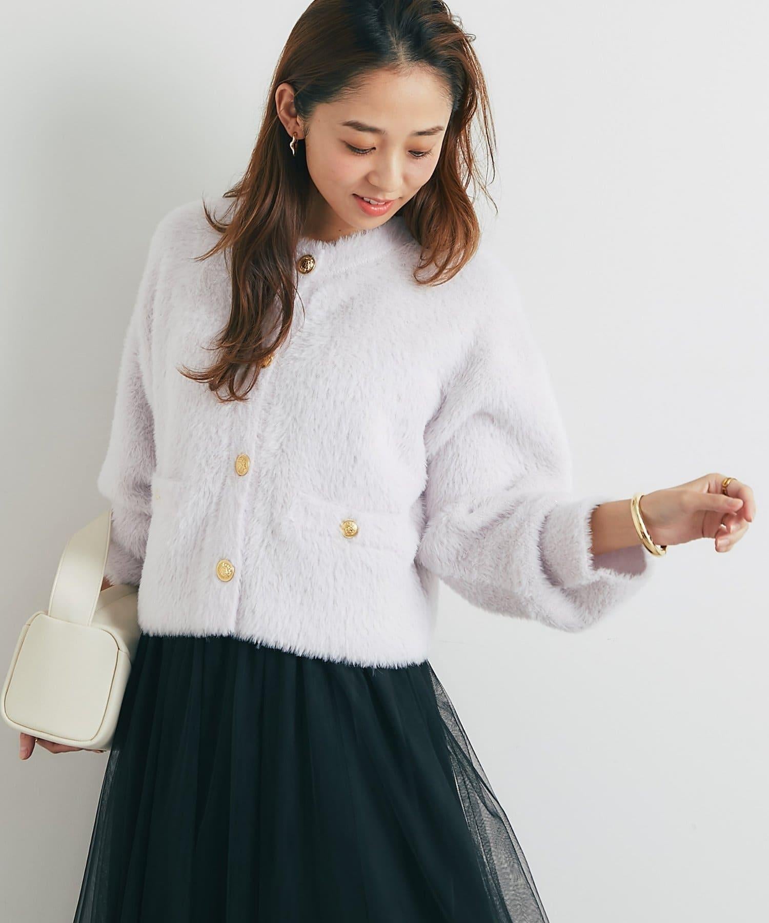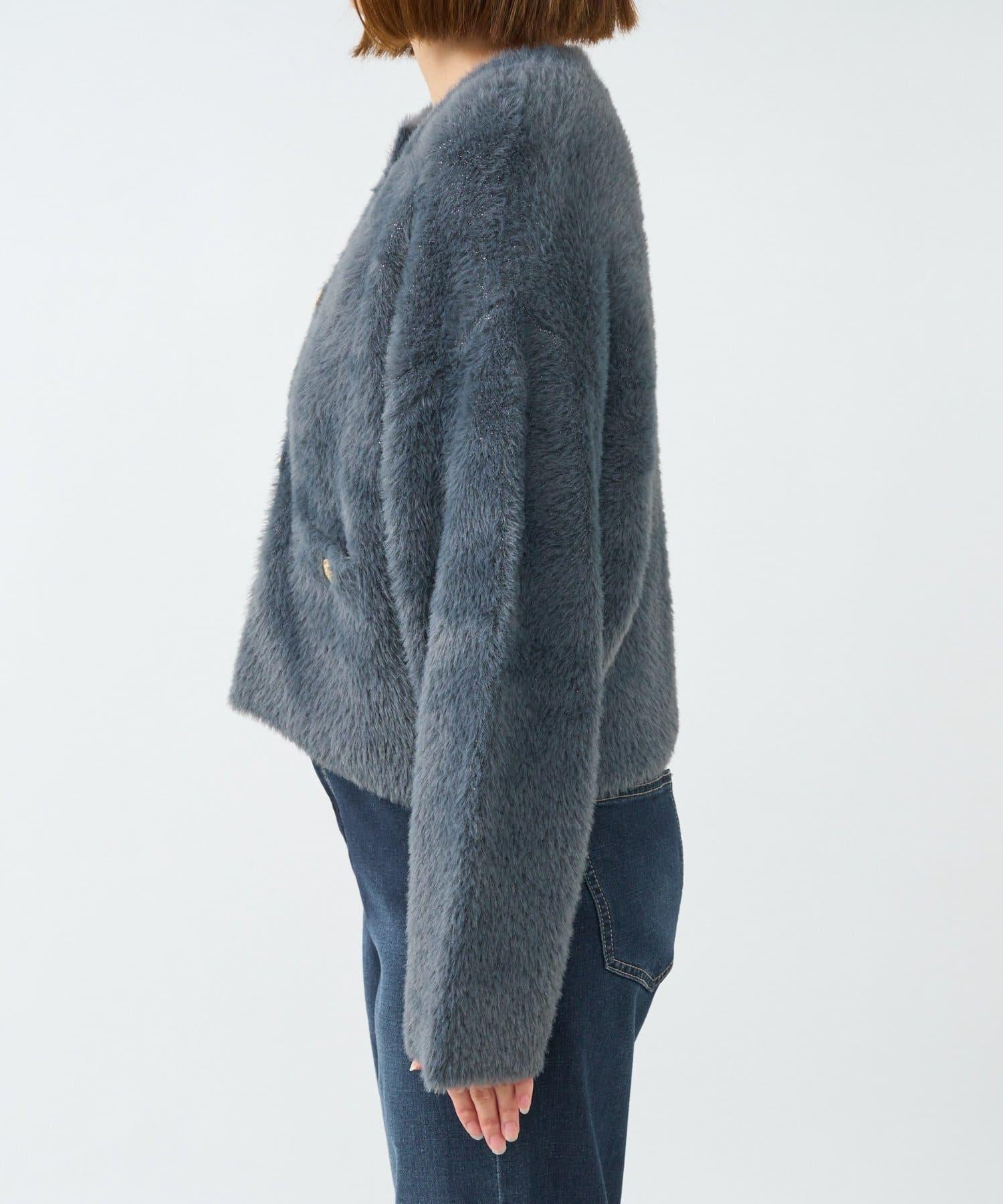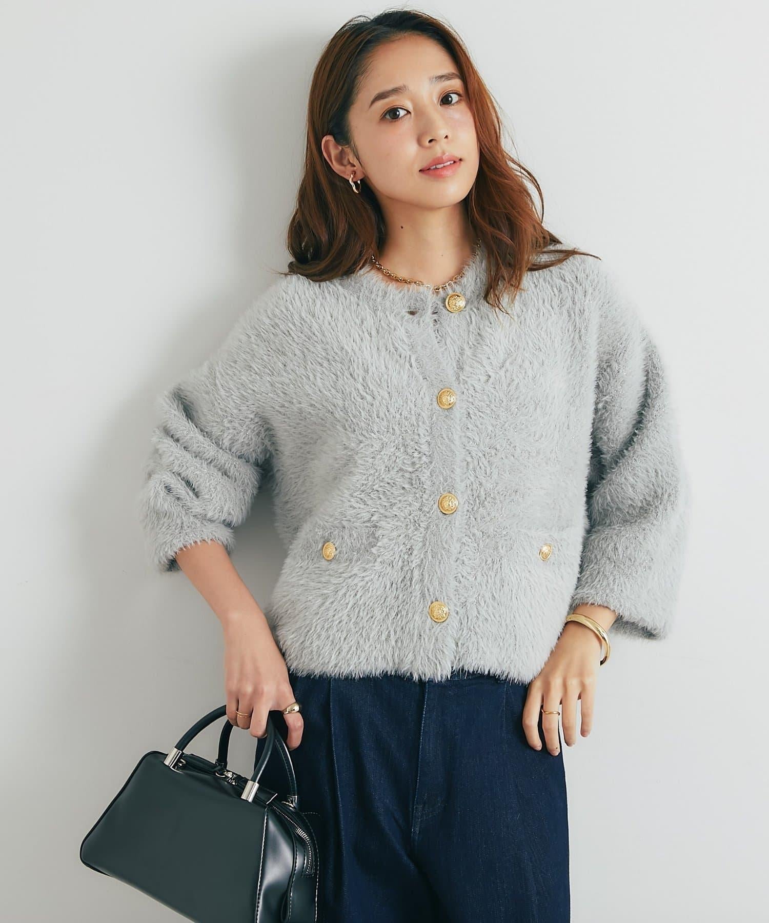 這款開襟羊毛衫採用柔軟蓬鬆的絨毛面料,質感奢華,給人以優雅的印象。