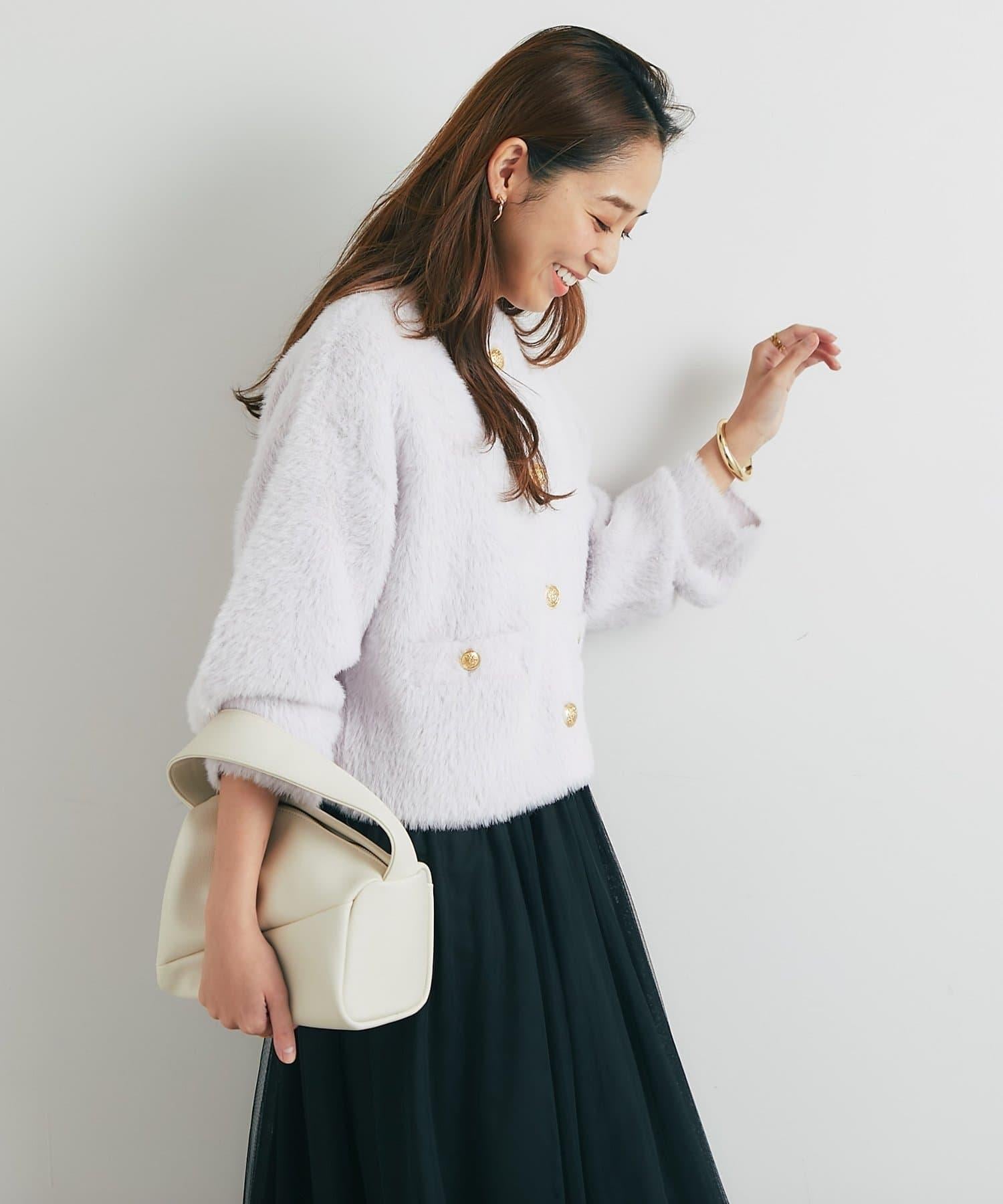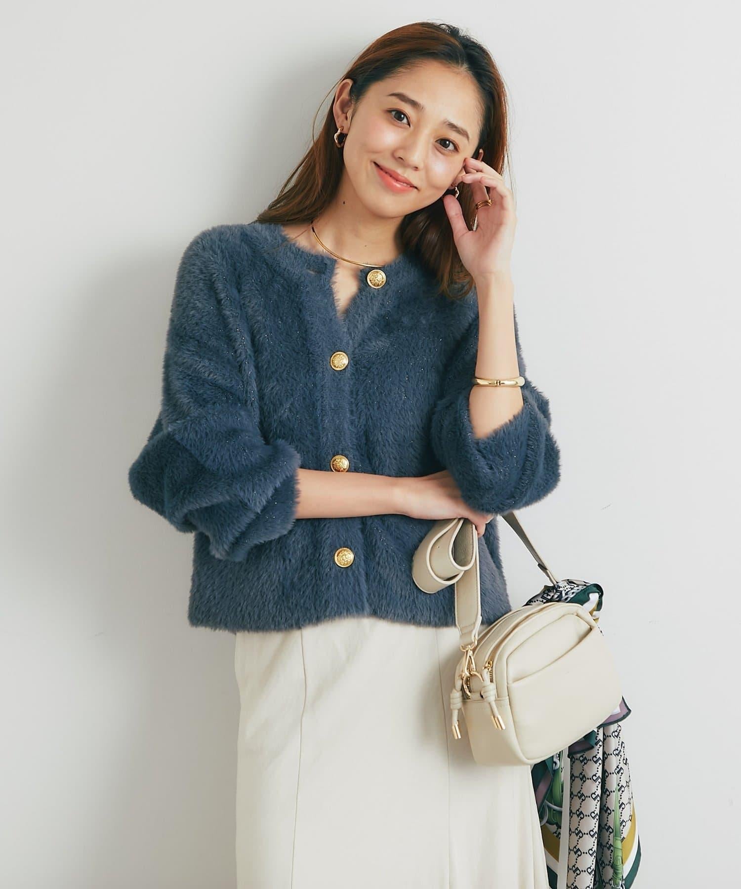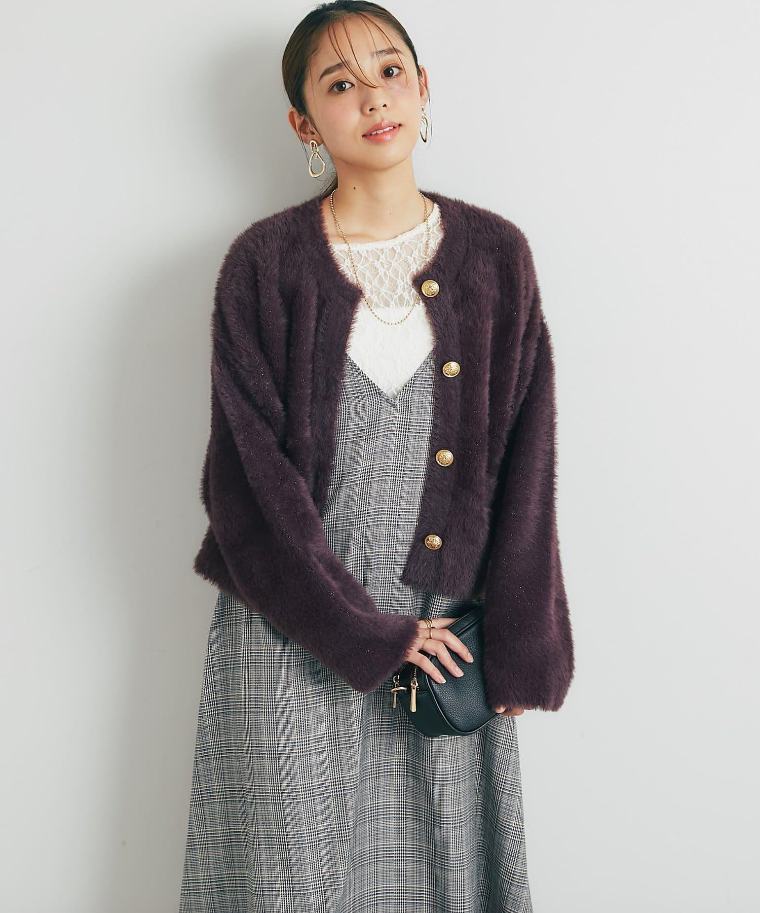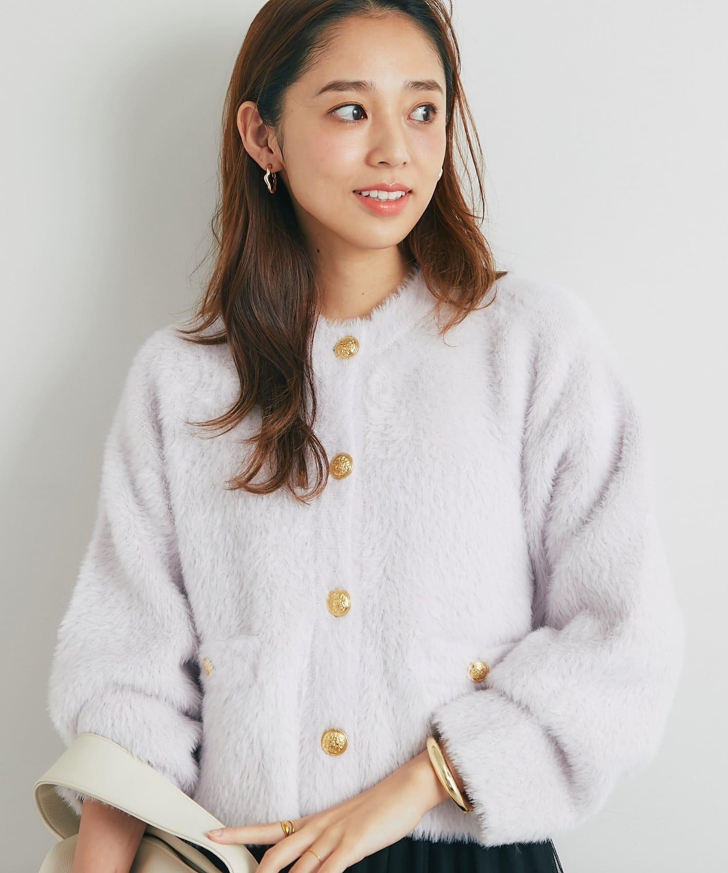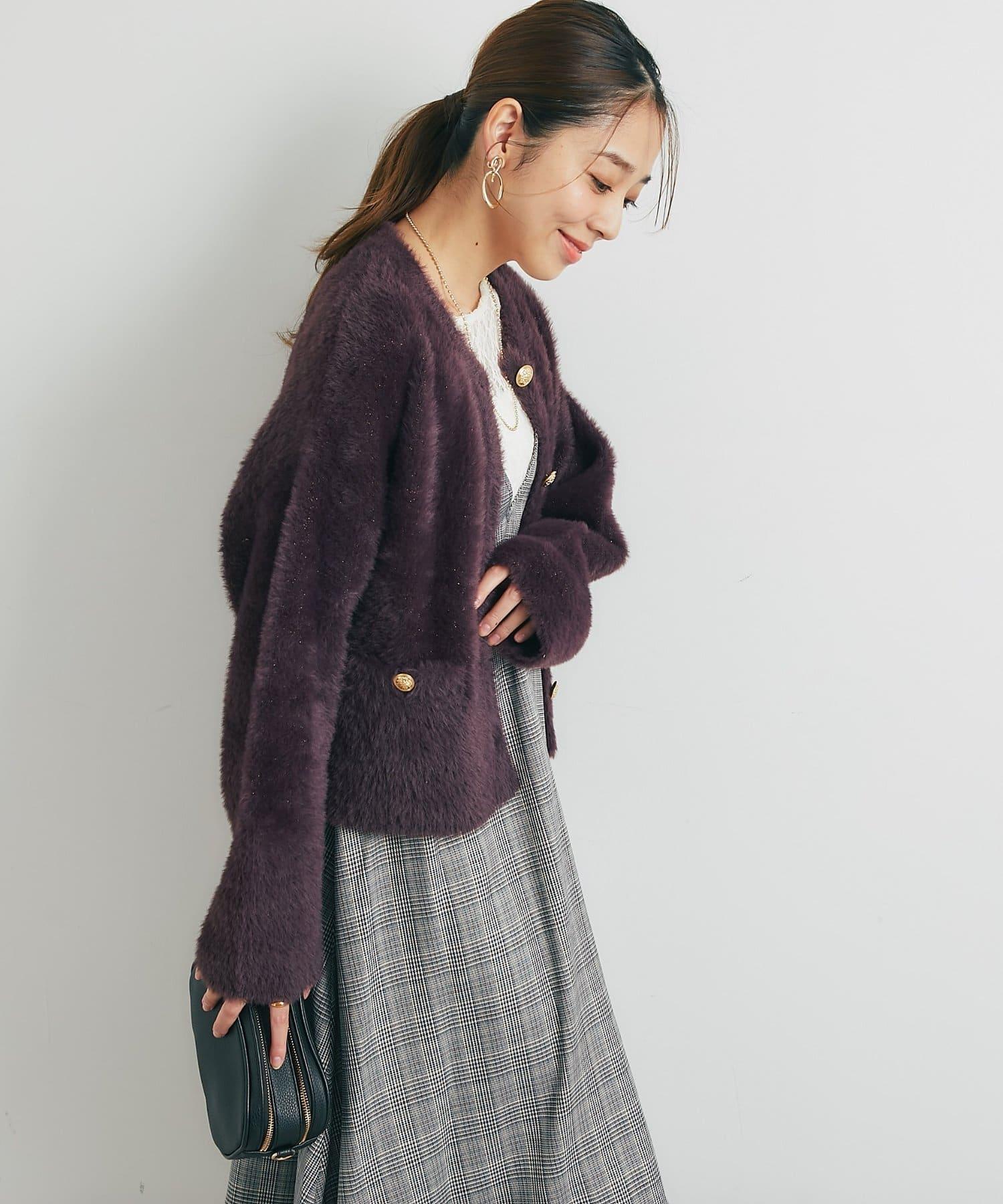 這款開襟羊毛衫採用柔軟蓬鬆的絨毛面料,質感奢華,給人以優雅的印象。
