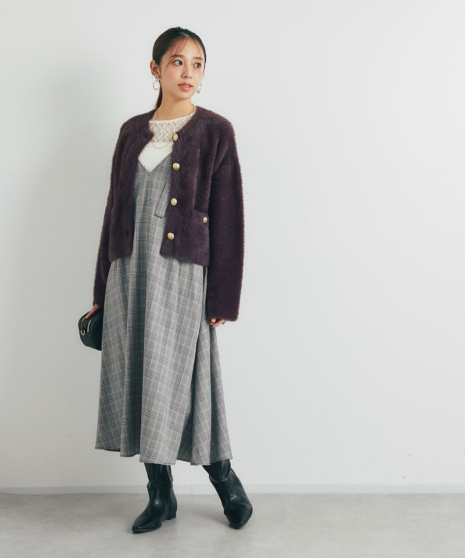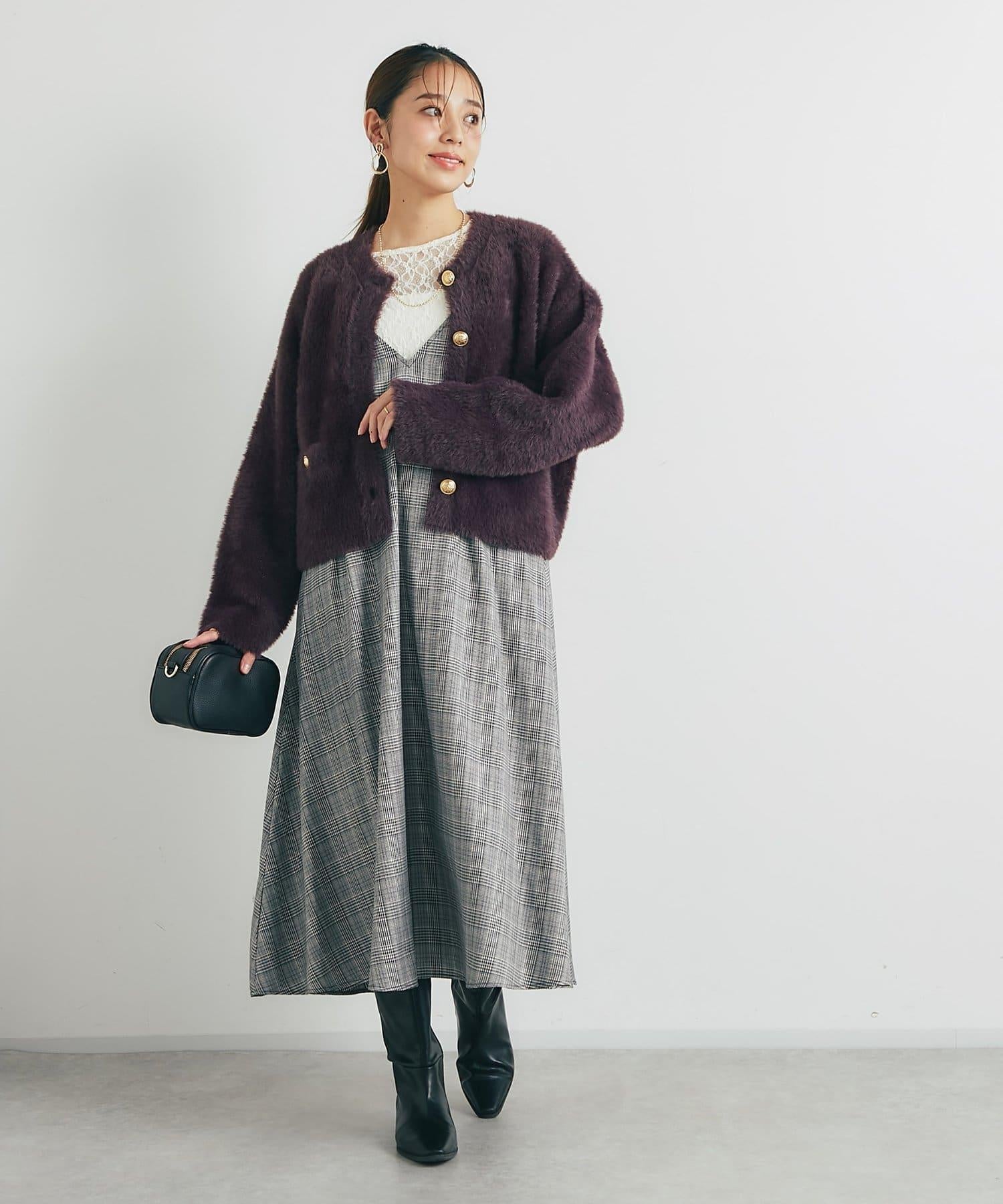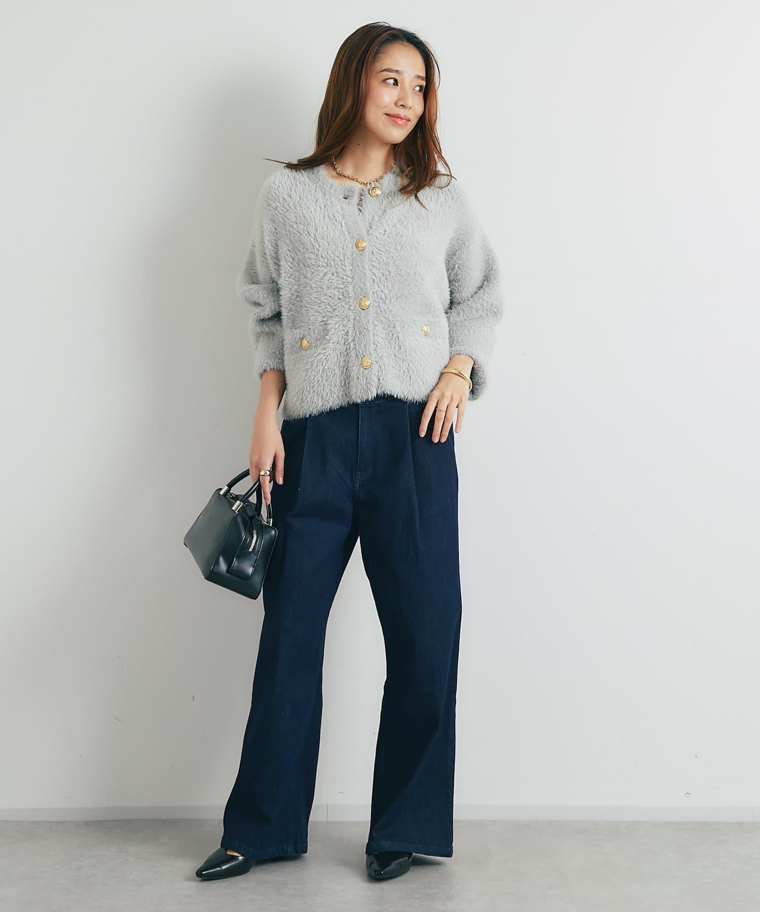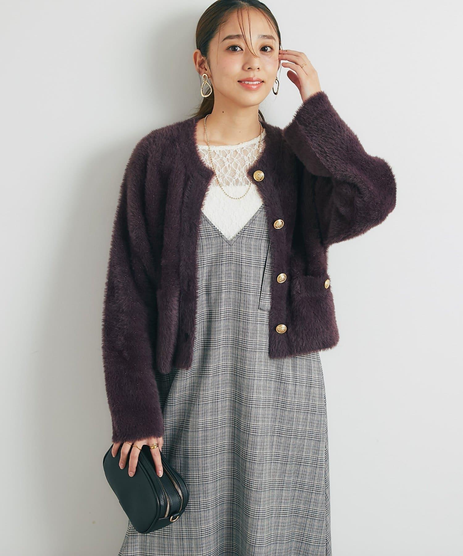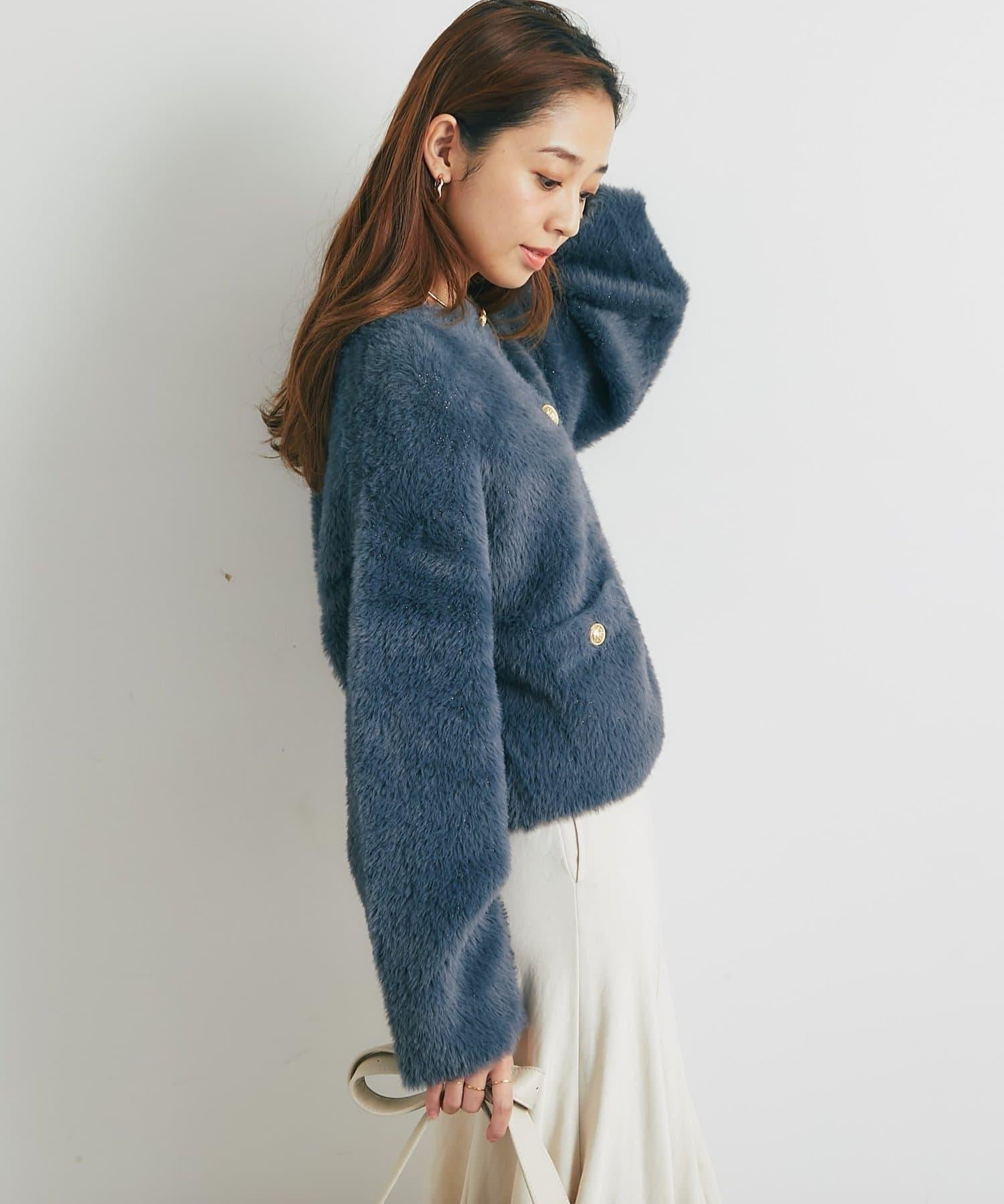 這款開襟羊毛衫採用柔軟蓬鬆的絨毛面料,質感奢華,給人以優雅的印象。